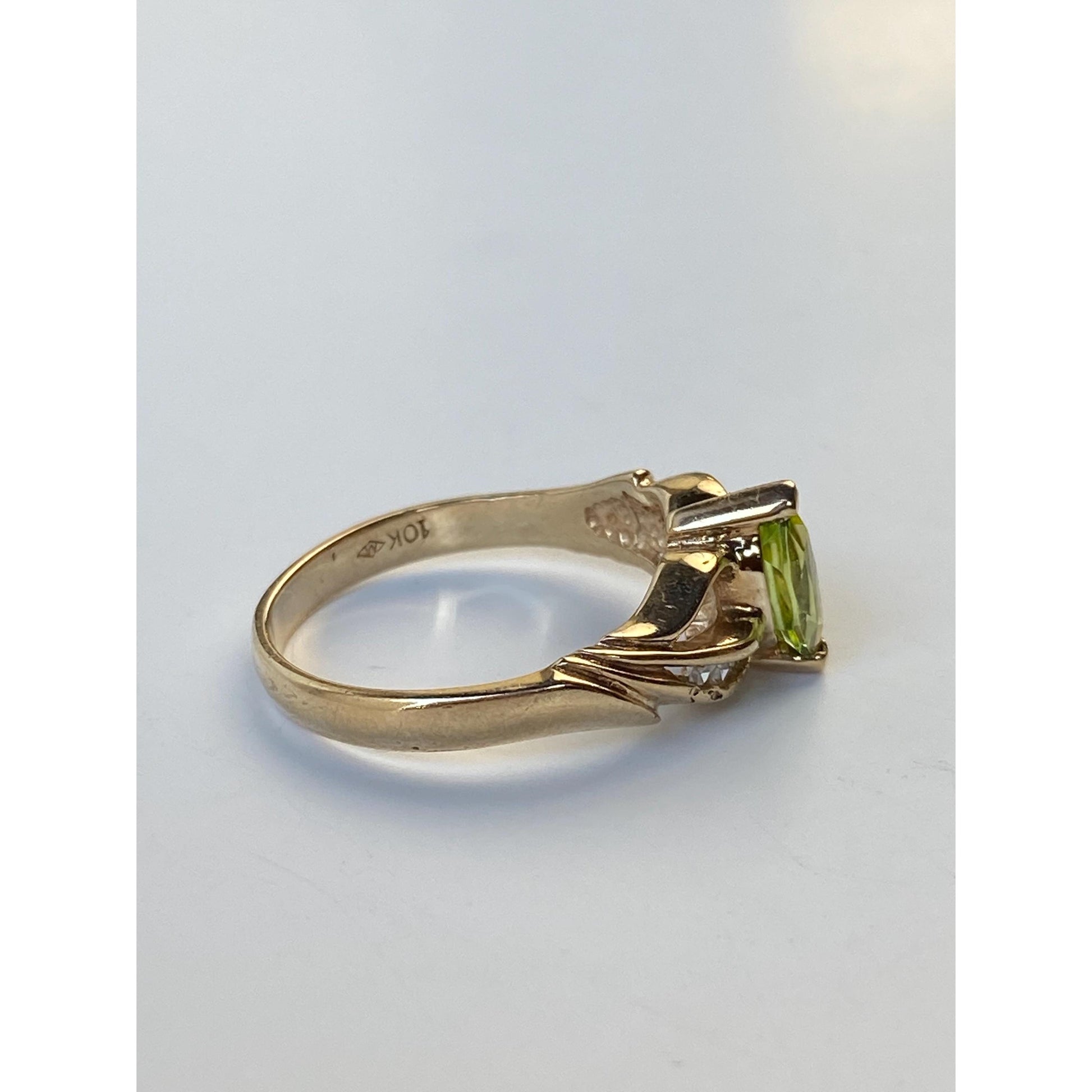 Solid 10k Yellow Gold Peridot Diamond Ring - Size 6.25