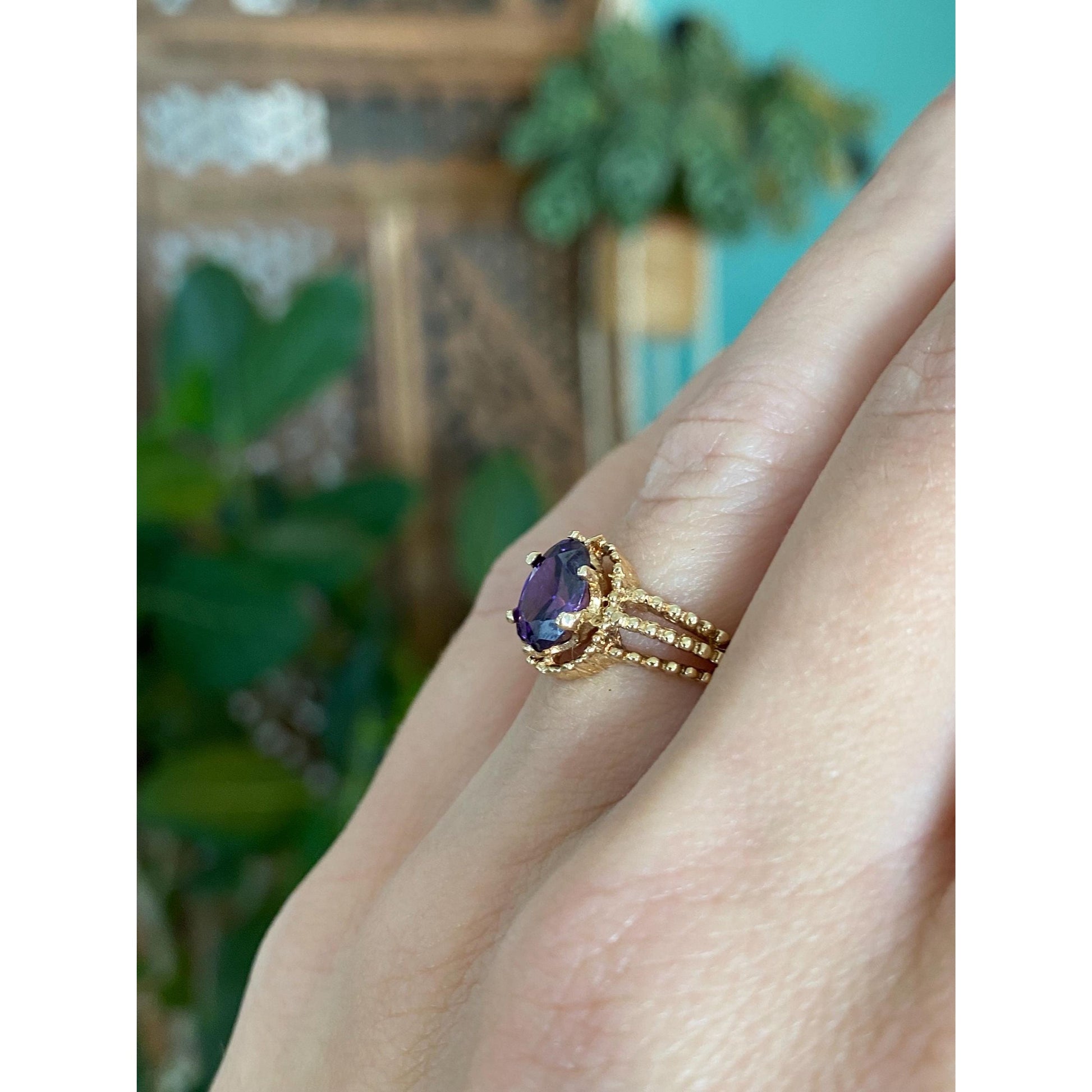 Solid 10k Yellow Gold Purple Cubic Zirconia Ring - Size 5.75