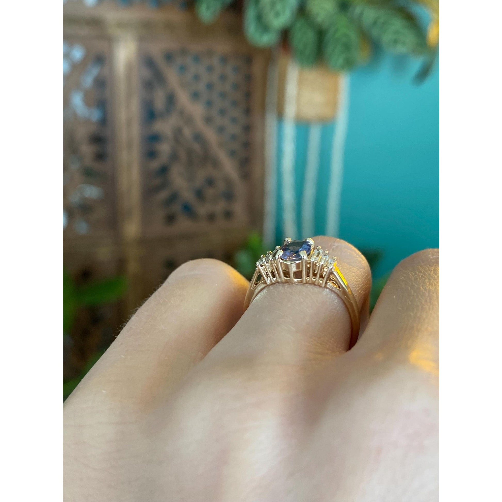 Solid 10k Yellow Gold Tanzanite Cubic Zirconia Ring - Size 5.75