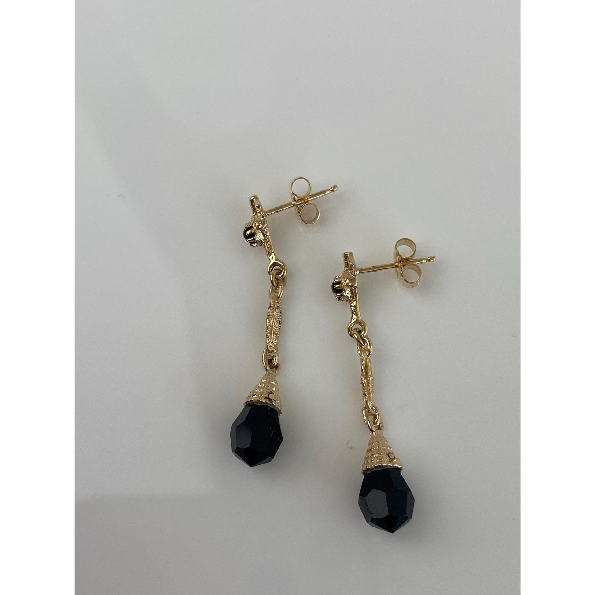 Solid 14k Black Onyx Dangle Stud Earrings