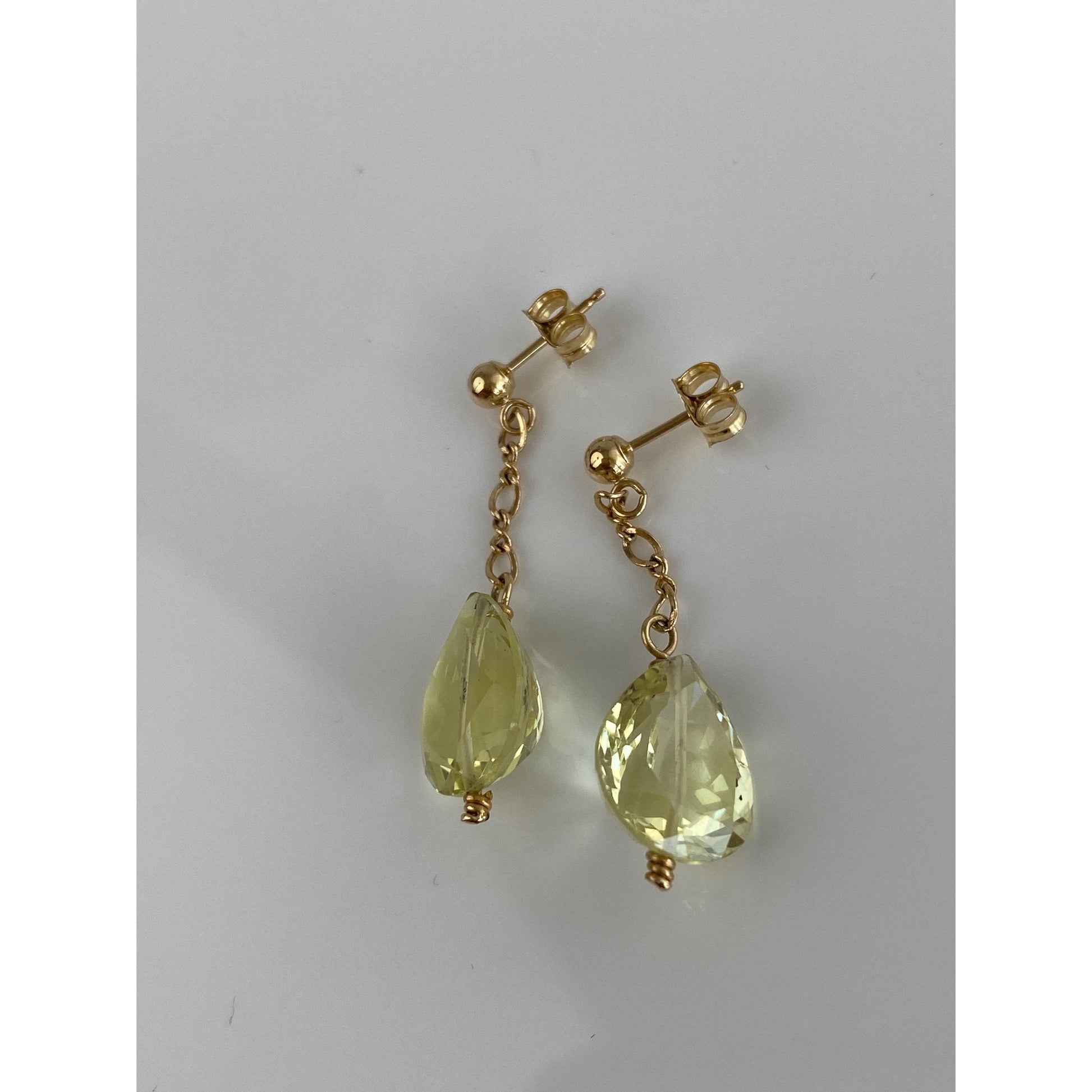 Solid 14k Lemon Quartz Drop Dangle Earrings