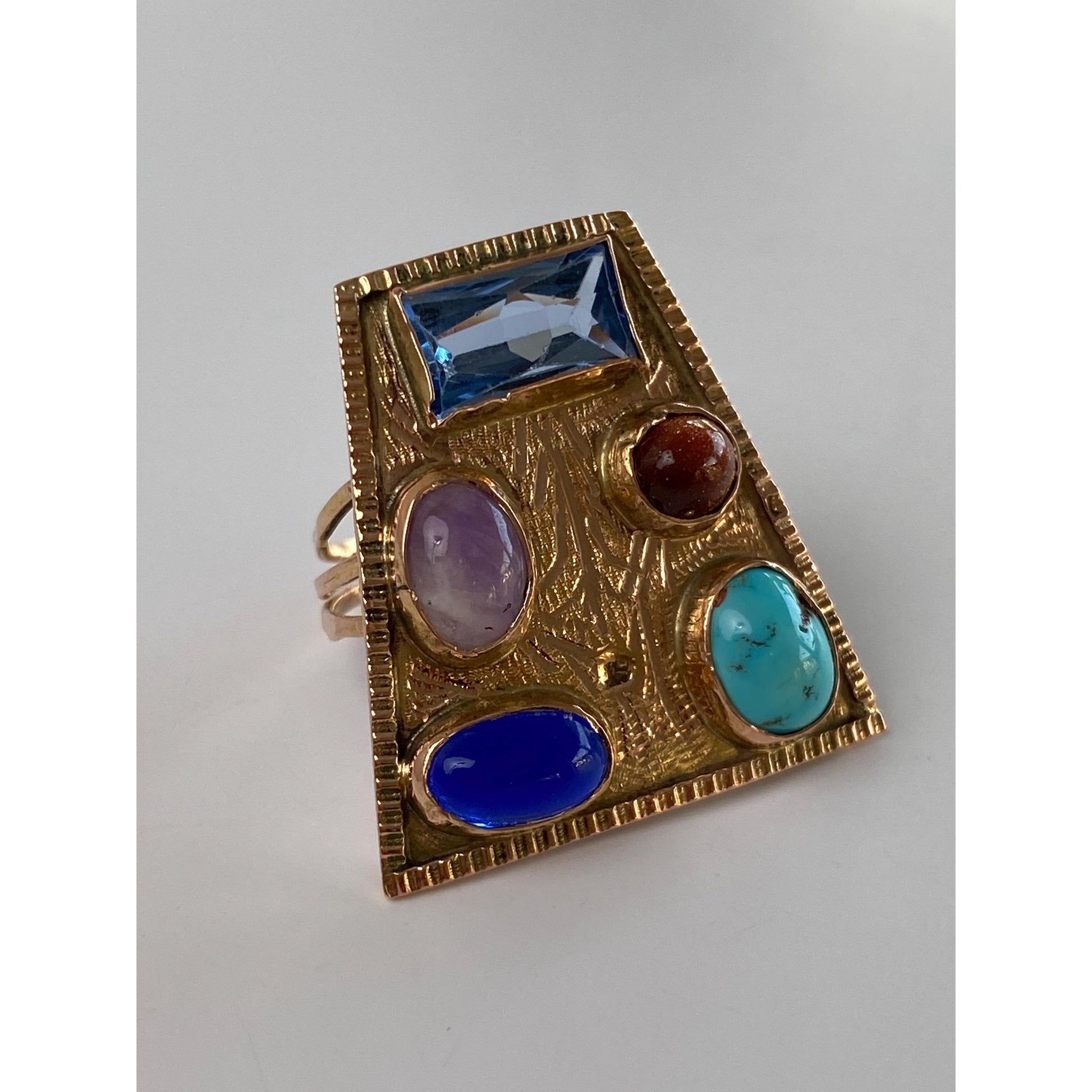 Solid 14k Rosey Gold Turquoise Goldstone Light Blue Spinel Amethyst Blue Cubic Zirconia Ring - Size 4.75