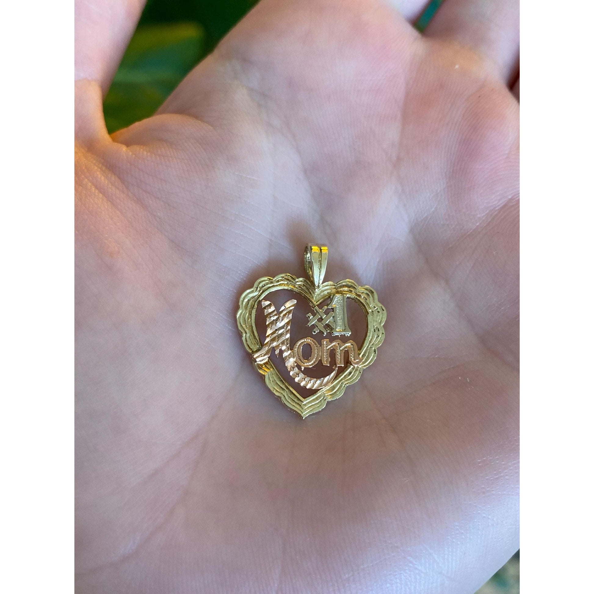 Solid 14k Tri Tone Gold #1 Mom Heart Charm
