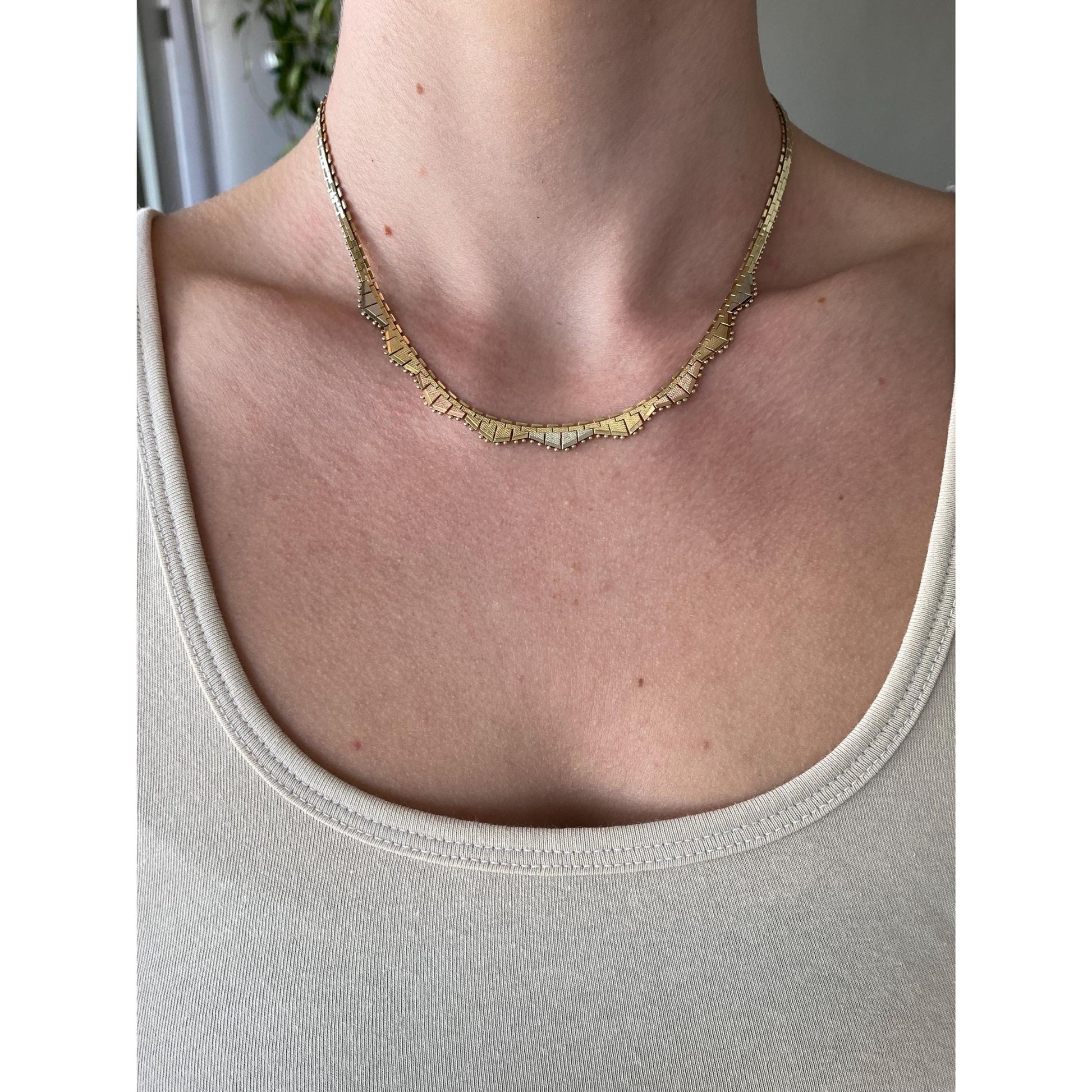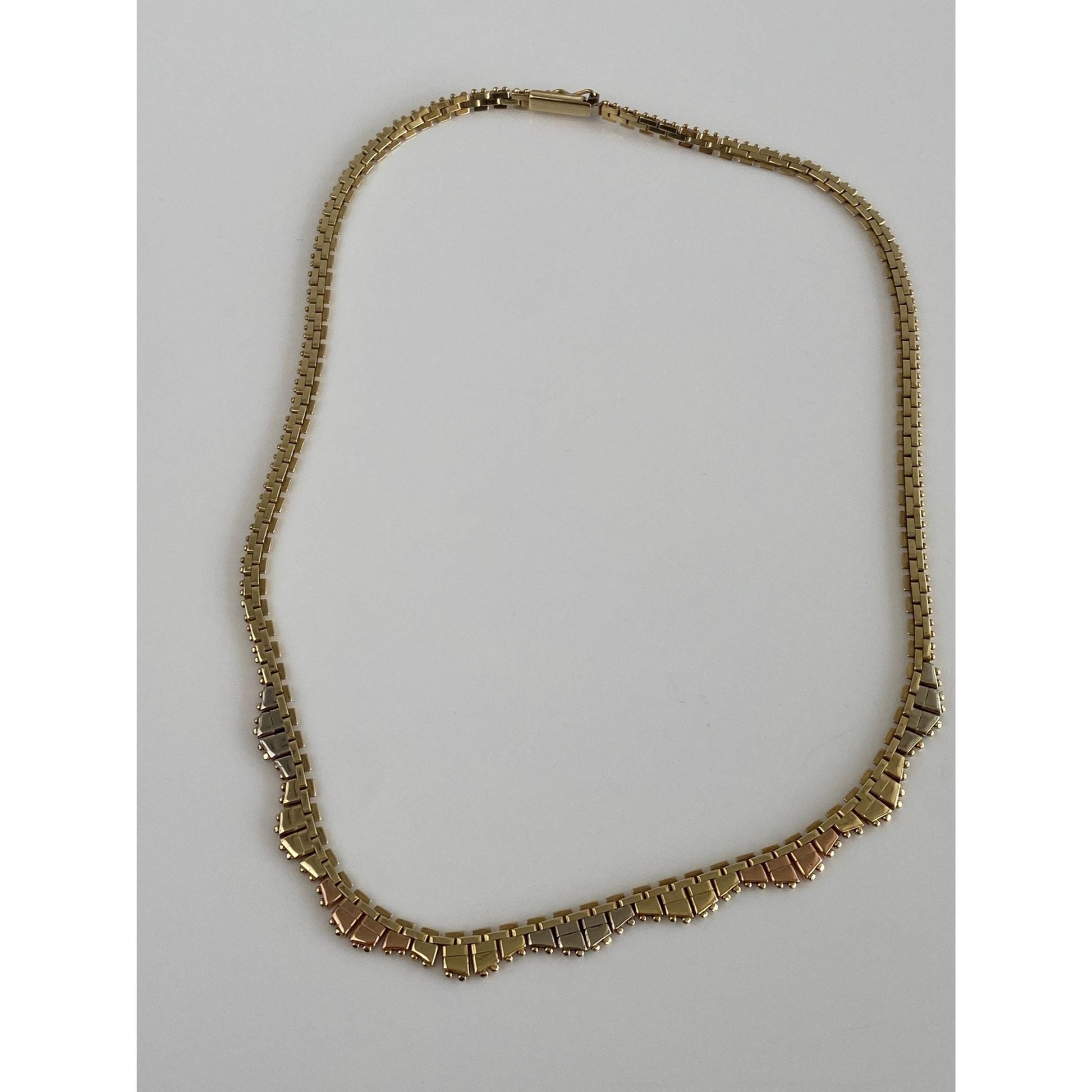 Solid 14k Tri Tone Gold Flat Fancy Necklace - 16 inches