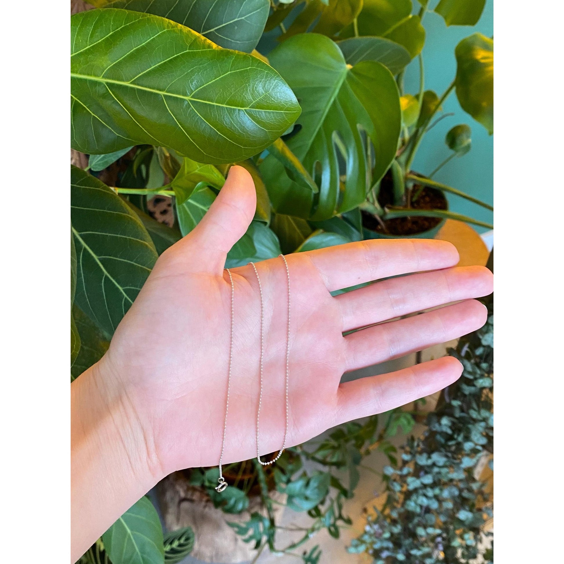 Solid 14k White Gold Bead Chain Necklace - 16 inches