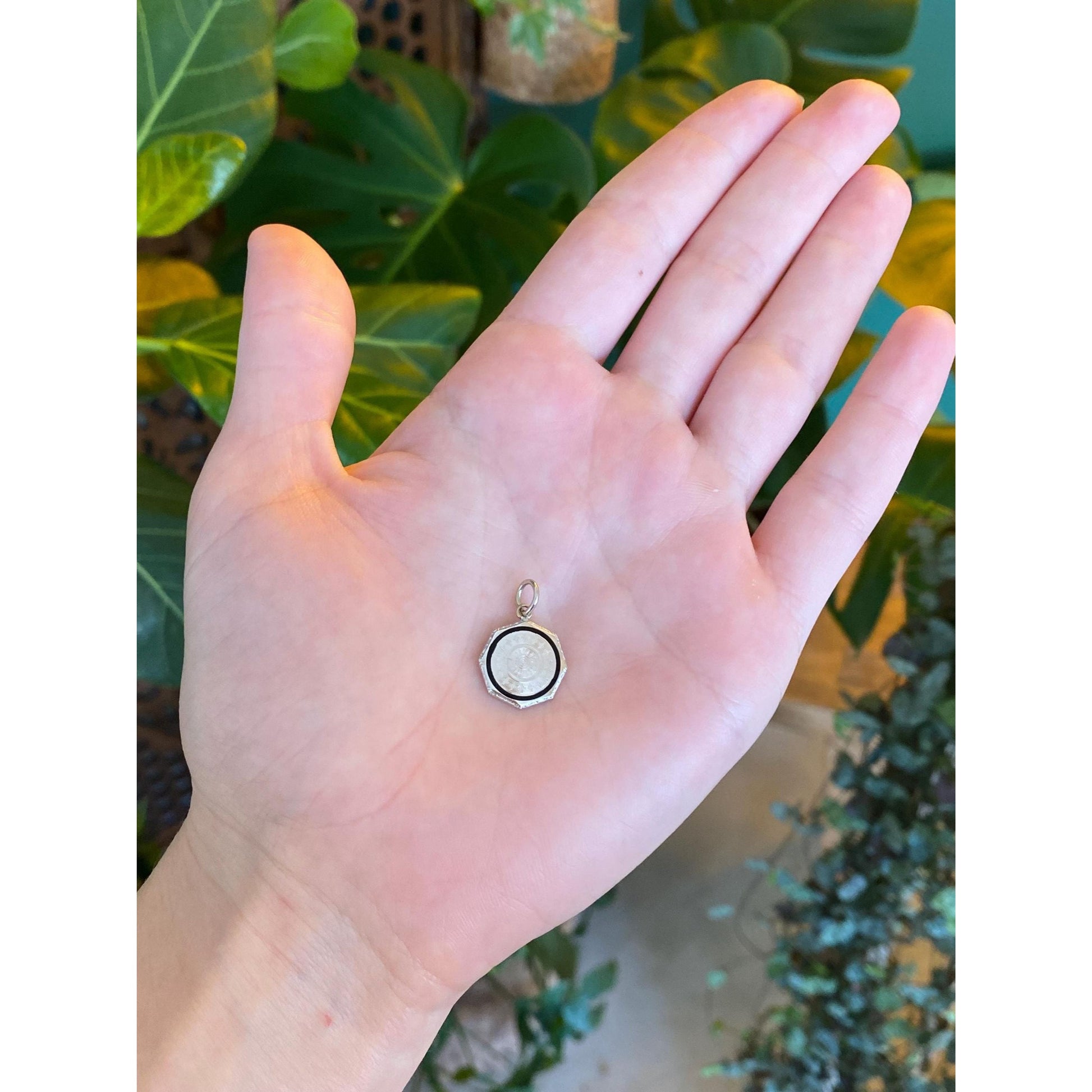Solid 14k White Gold Black Enamel Cufflink Conversion Charm