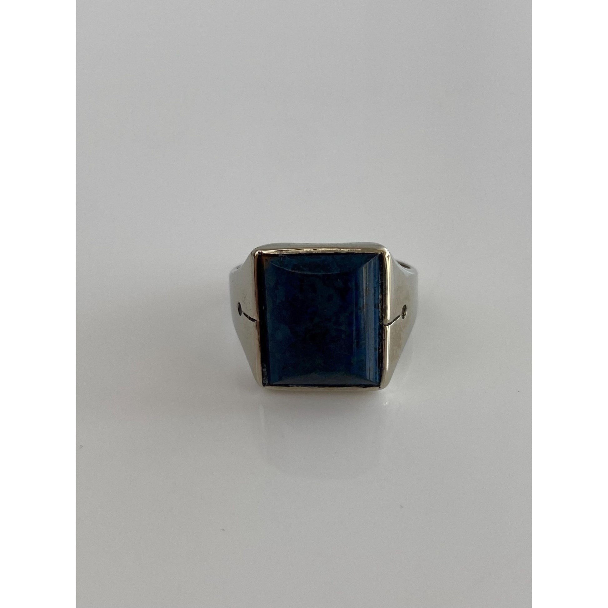 Solid 14k White Gold Blue Lapis Lazuli Signet Ring - Size 8