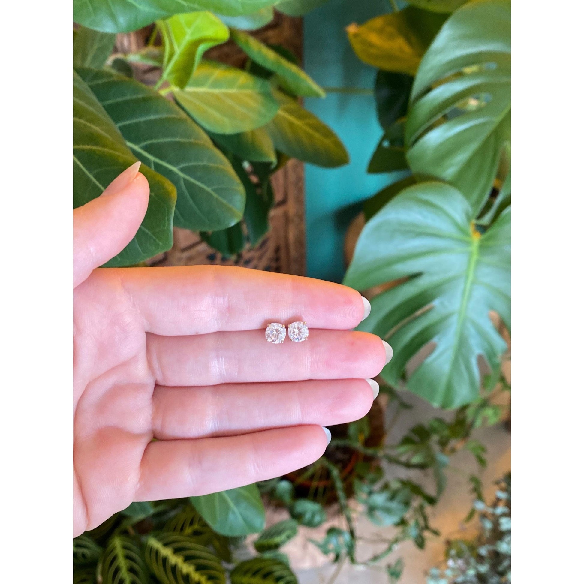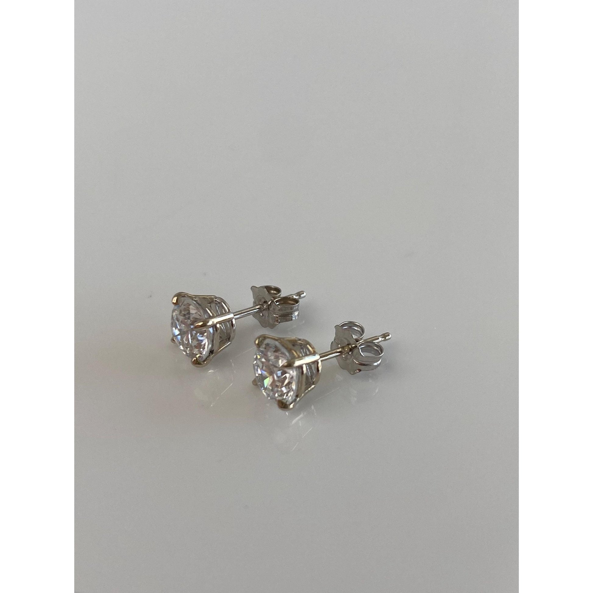 Solid 14k White Gold Clear Cubic Zirconia Stud Earrings
