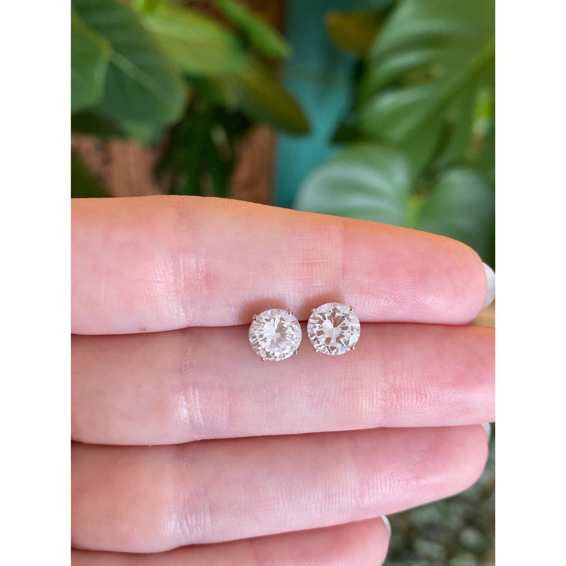 Solid 14k White Gold Clear Cubic Zirconia Stud Earrings