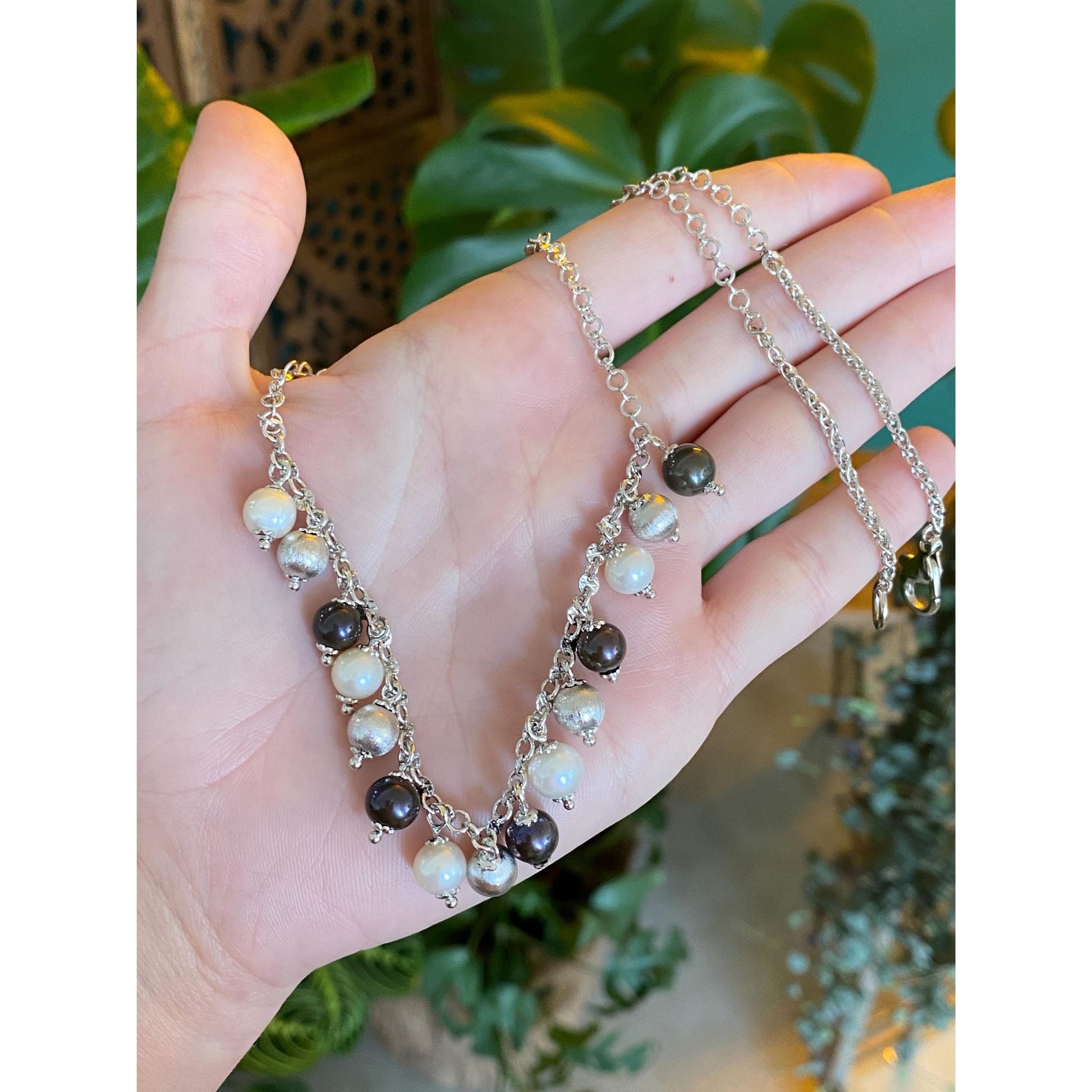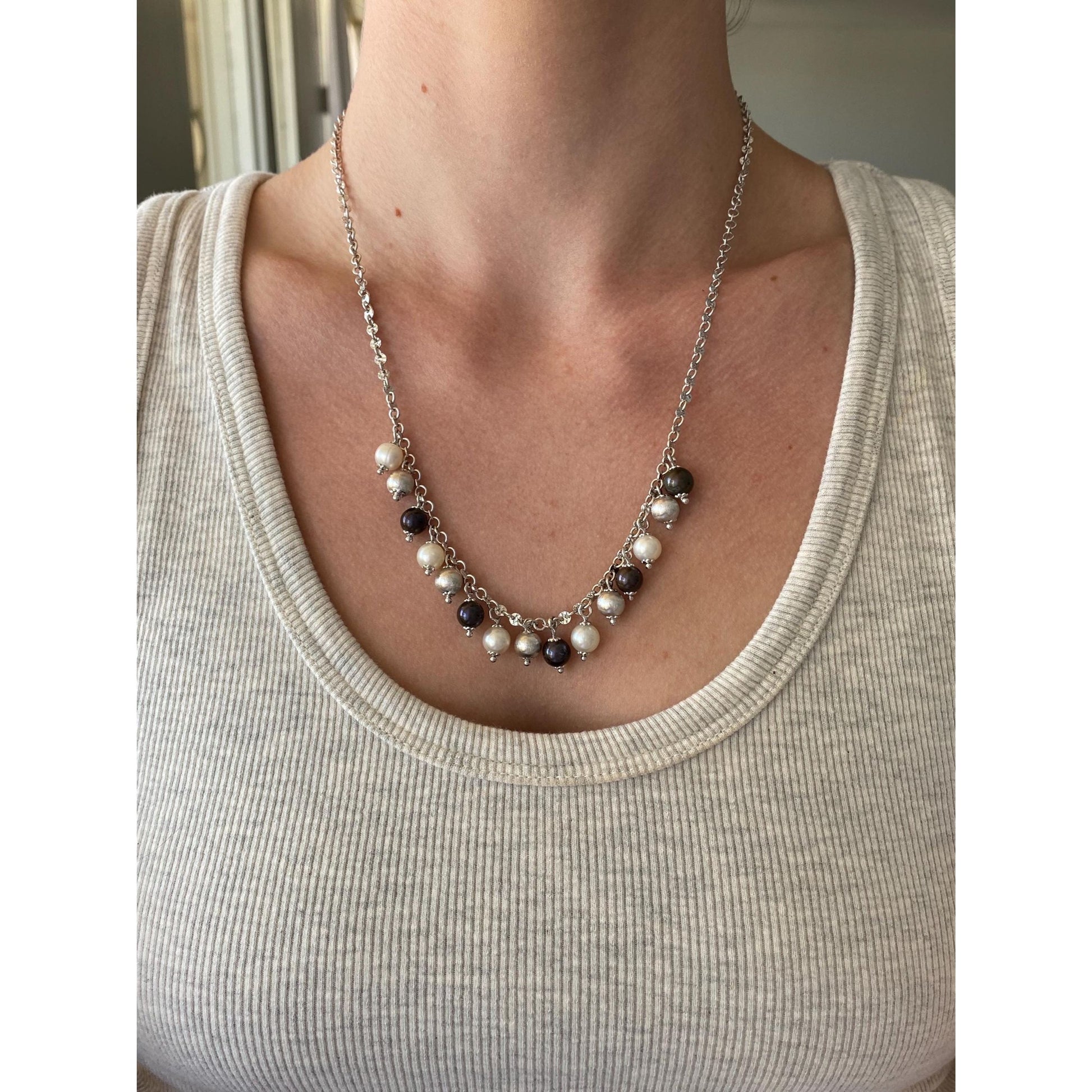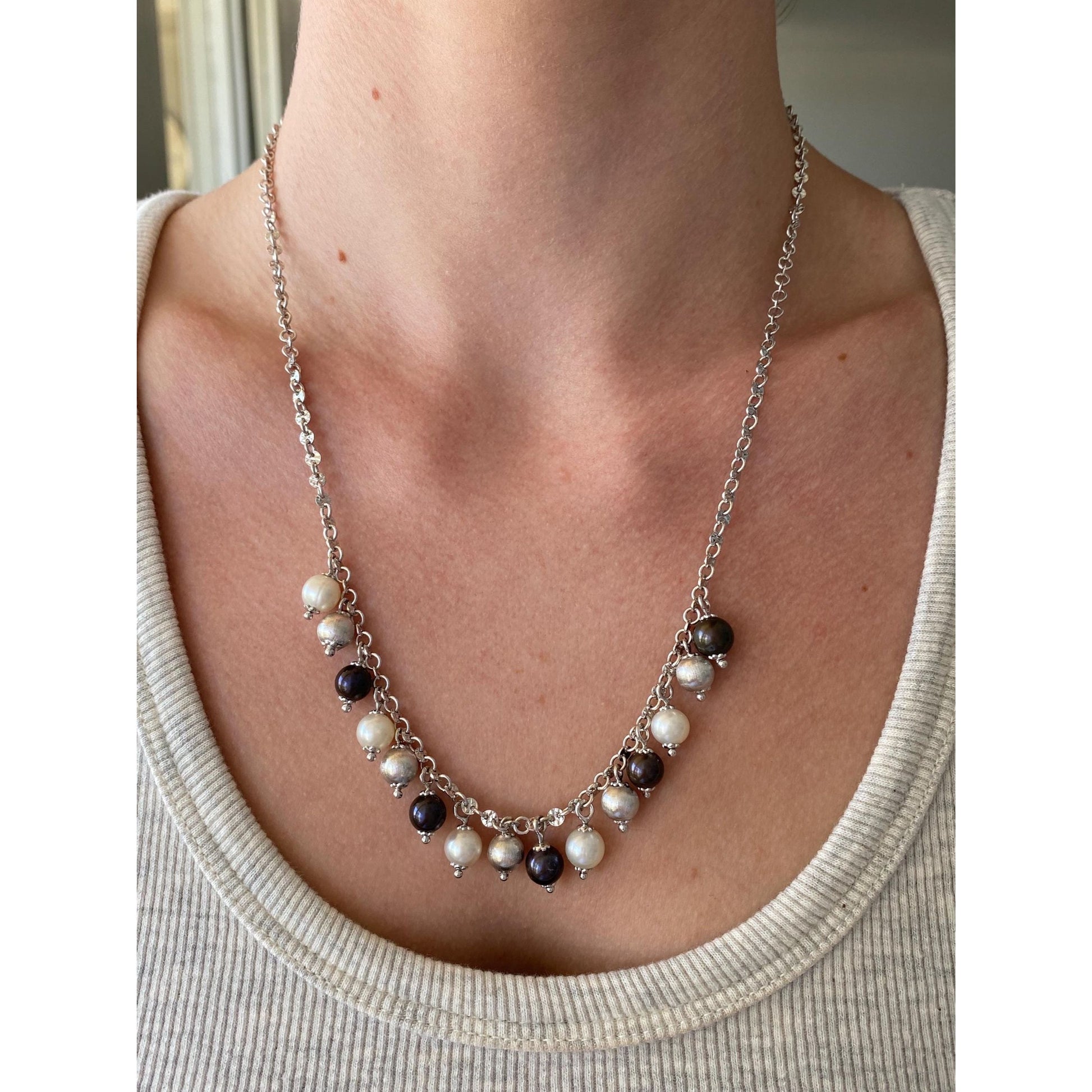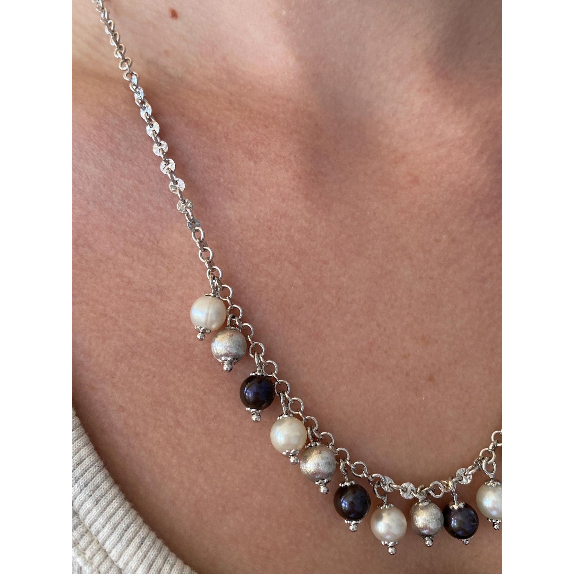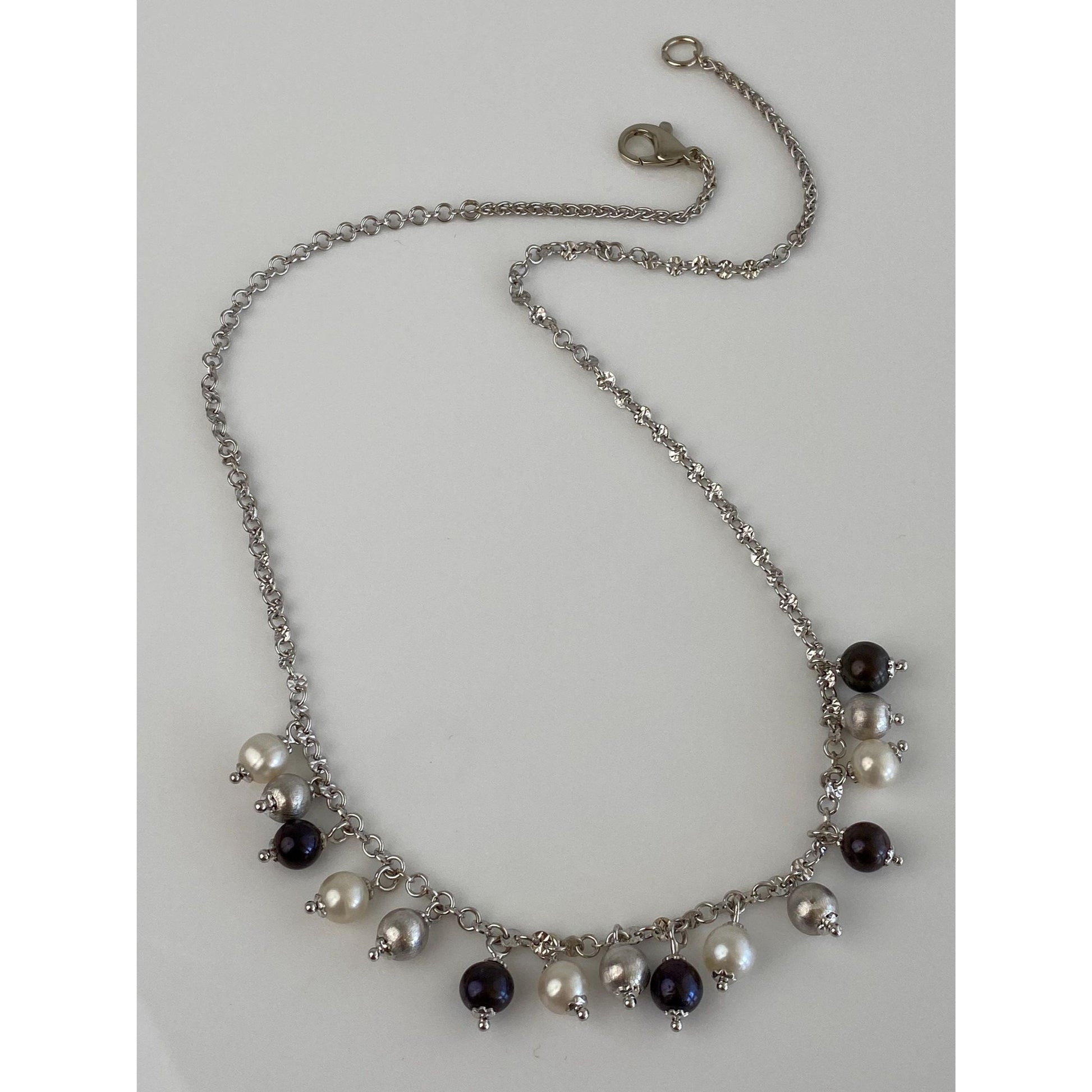 Solid 14k White Gold Colored Pearls Diamond Cut Link Cable Necklace - 20.5 inches