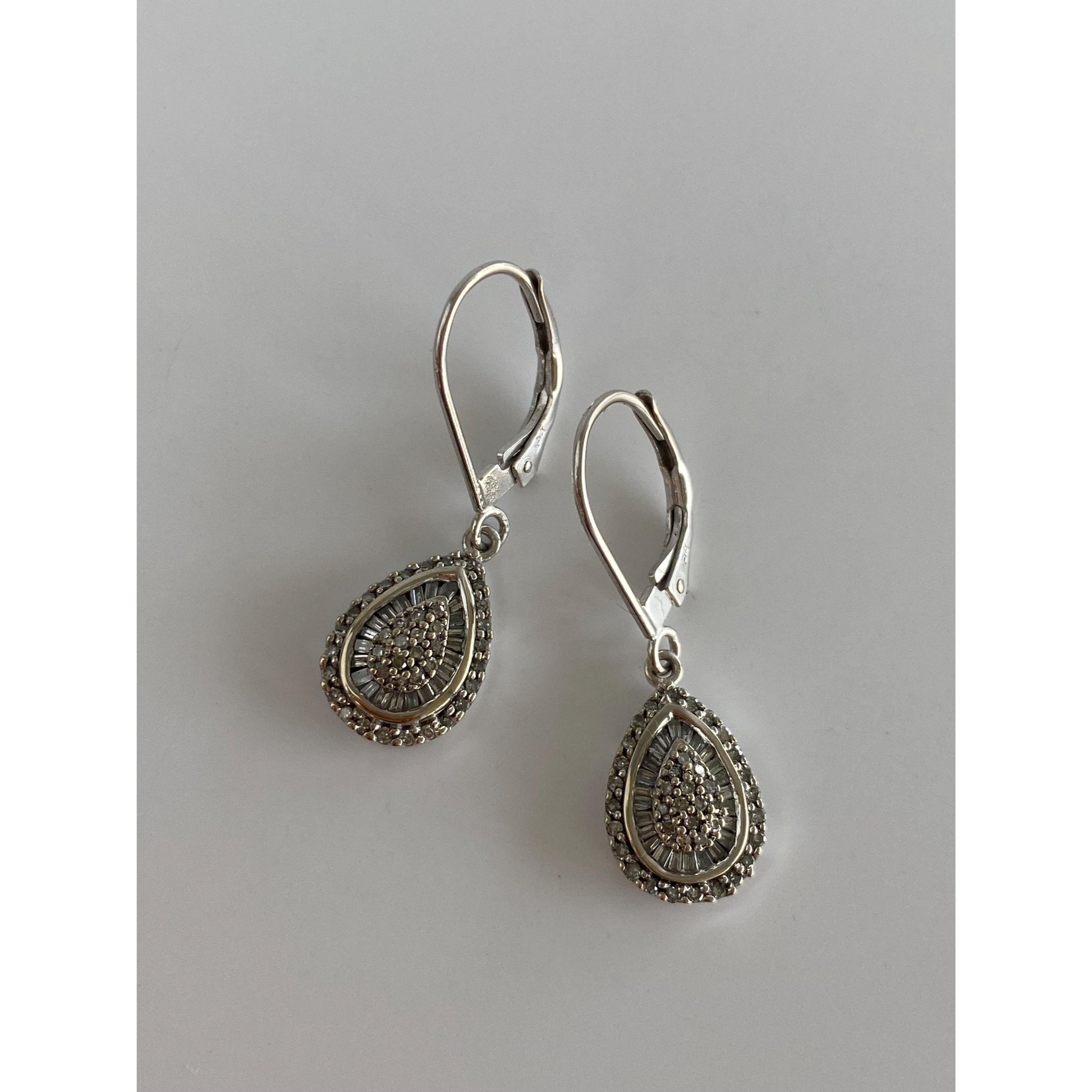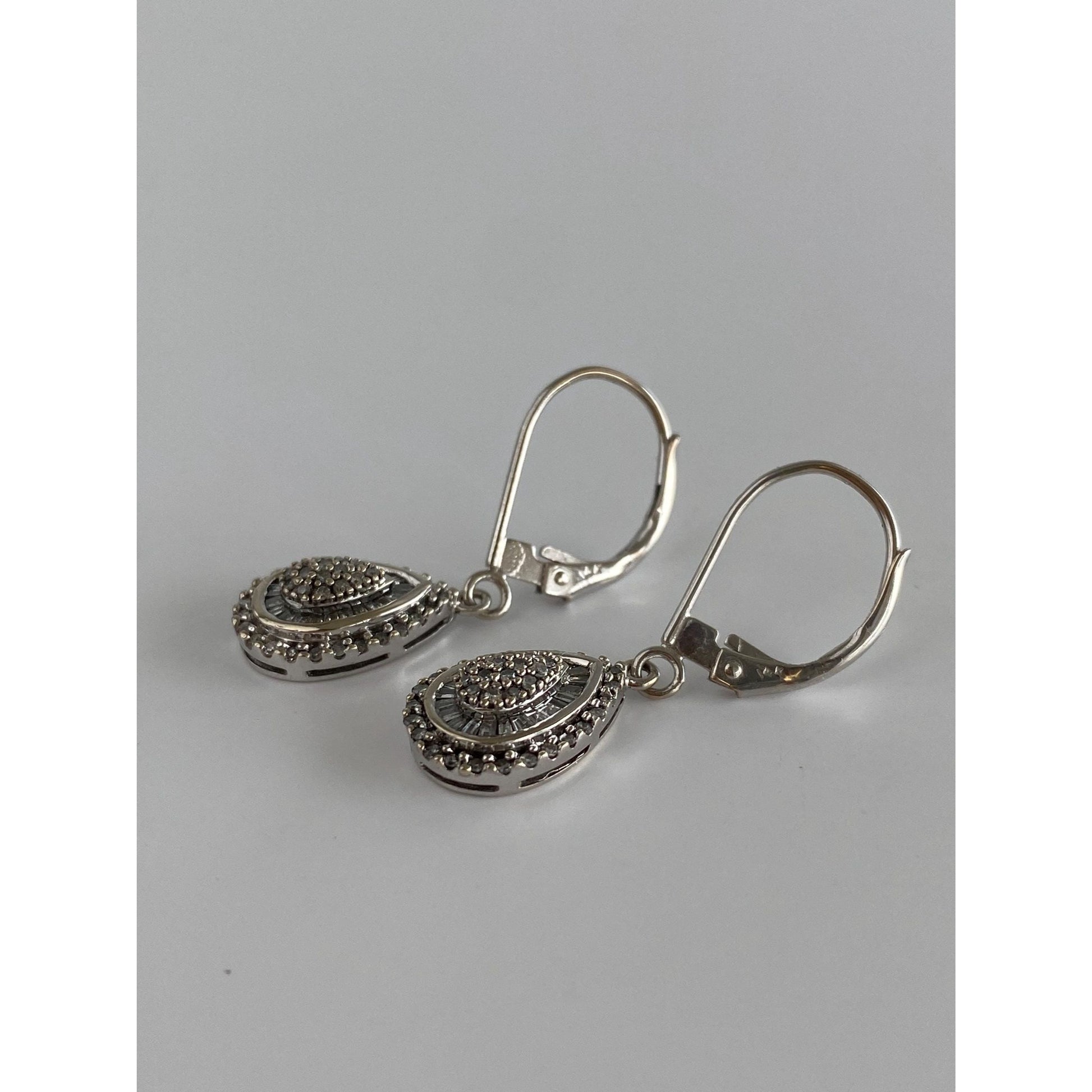 Solid 14k White Gold Diamond Art Deco Dangle Earrings
