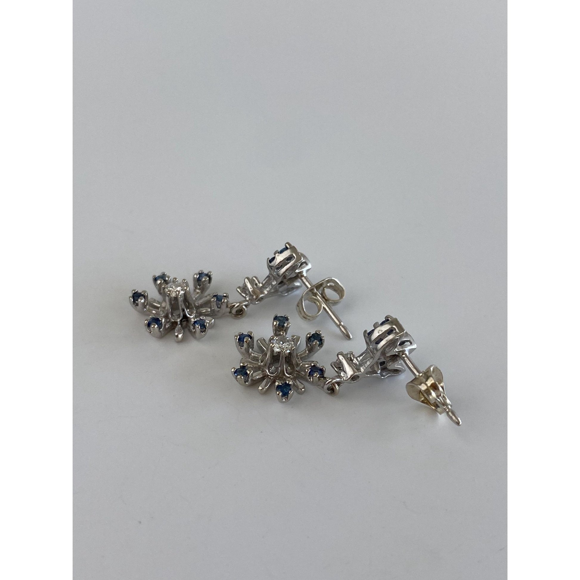 Solid 14k White Gold Diamond Blue Spinel Flower Dangle Earrings