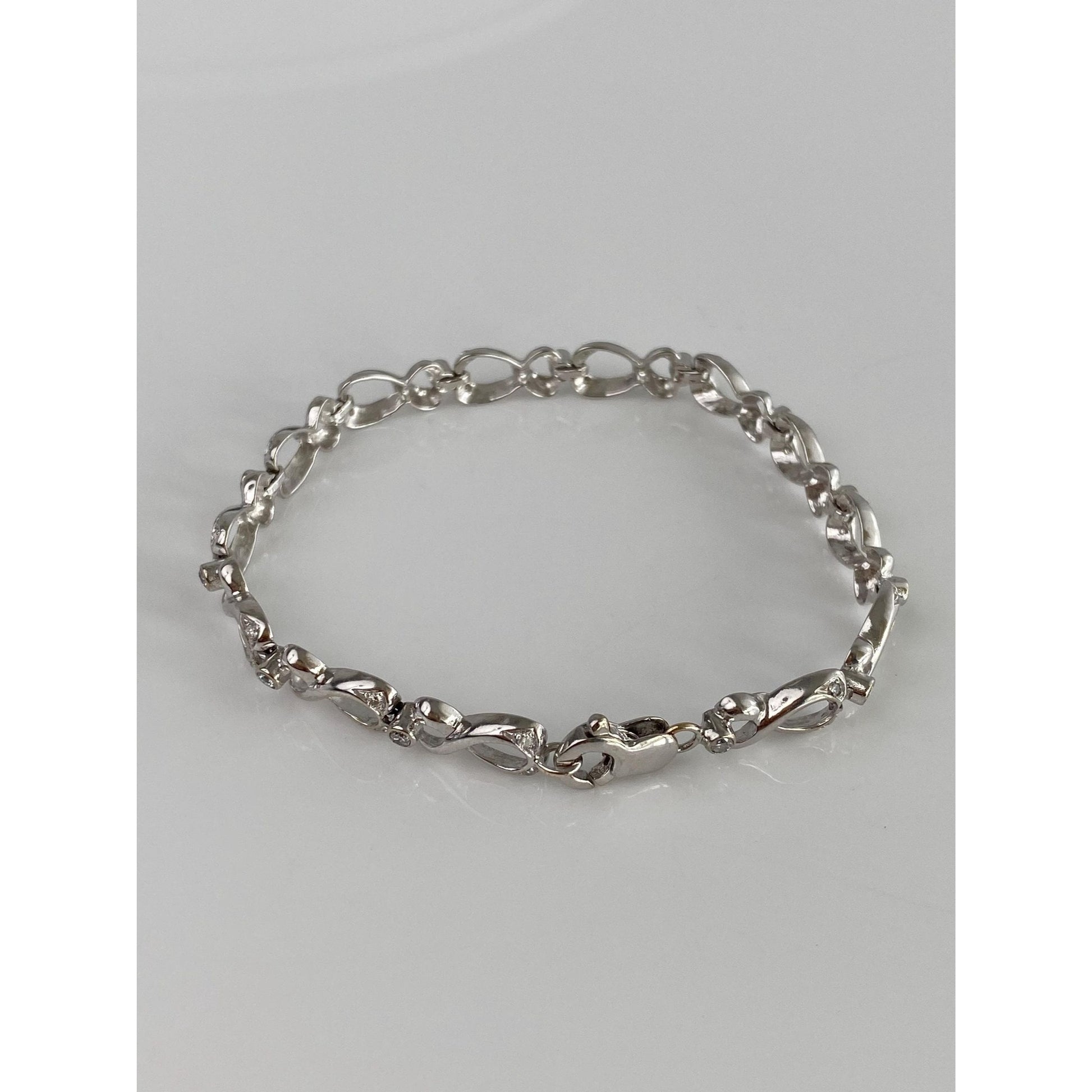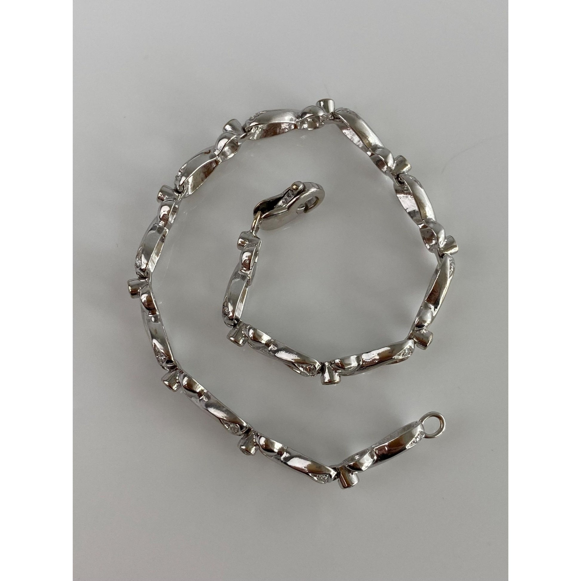 Solid 14k White Gold Diamond Link Bracelet - 7.5 inches