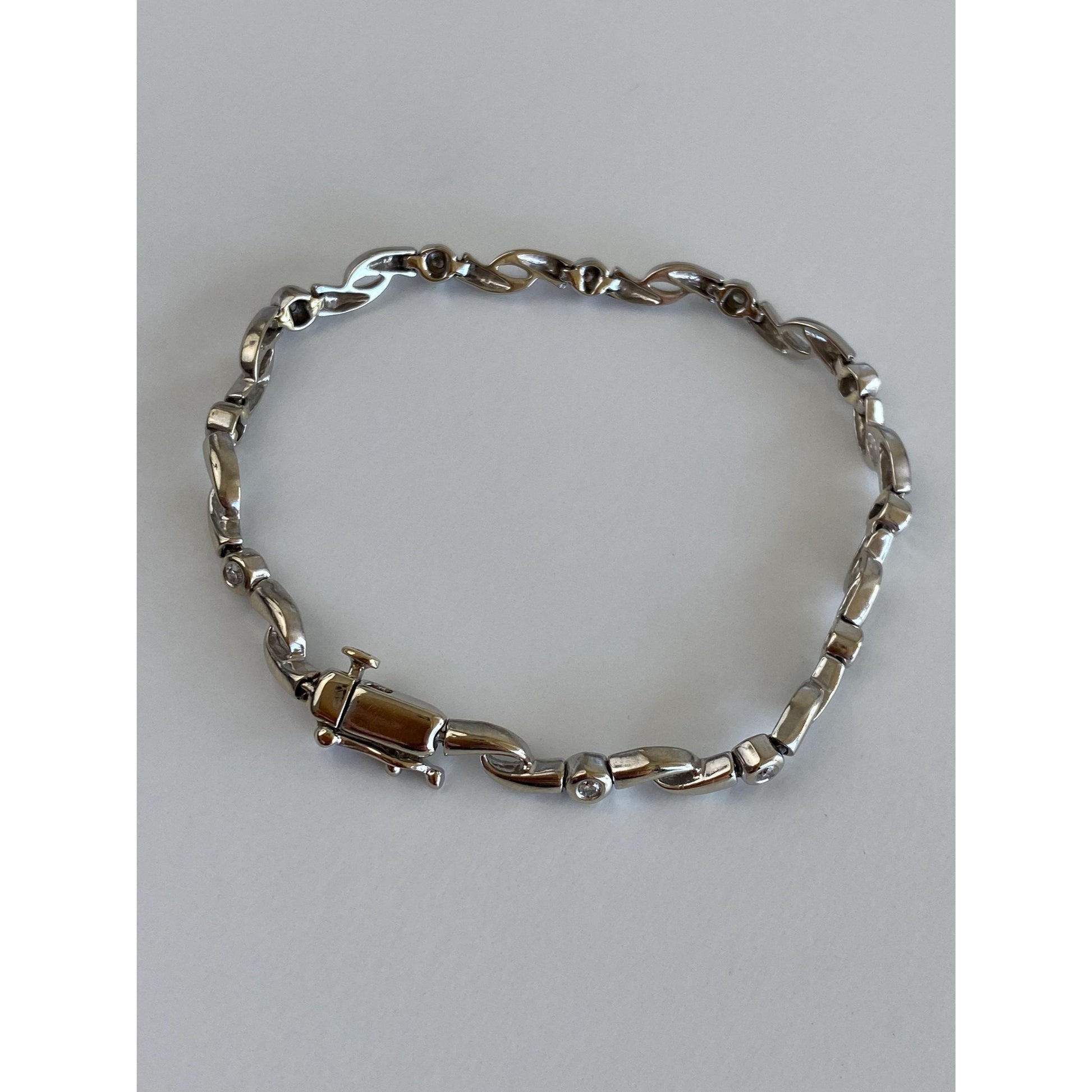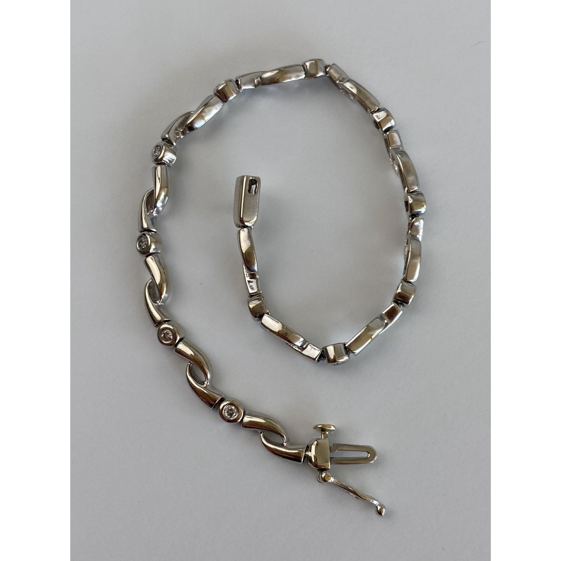 Solid 14k White Gold Diamond Link Bracelet - 7 inches