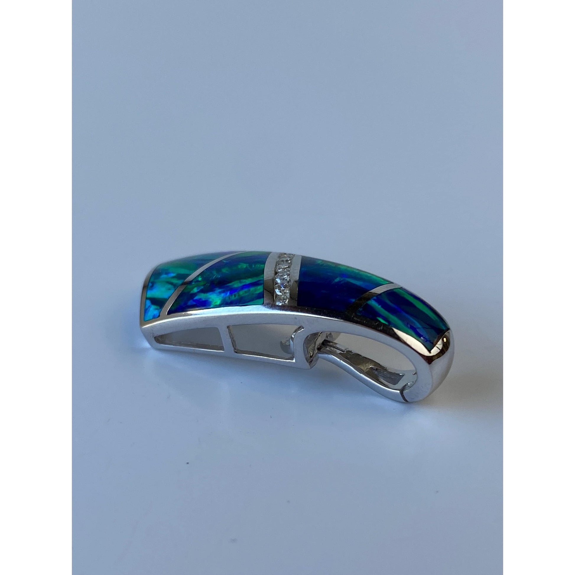 Solid 14k White Gold Diamond Opal Inlay Slide Charm