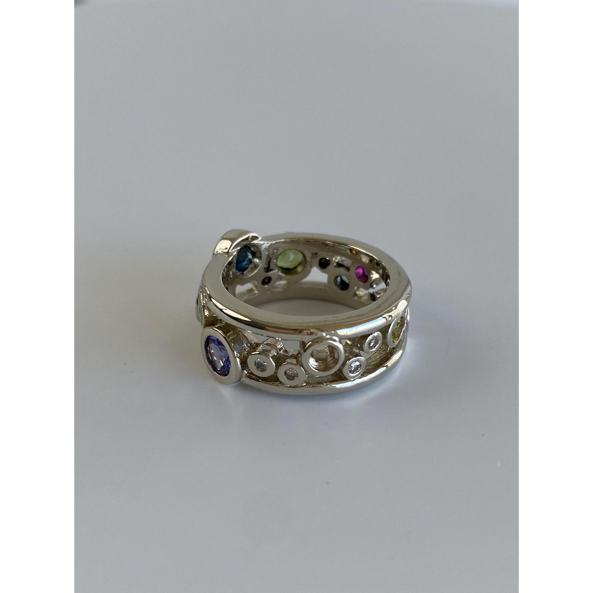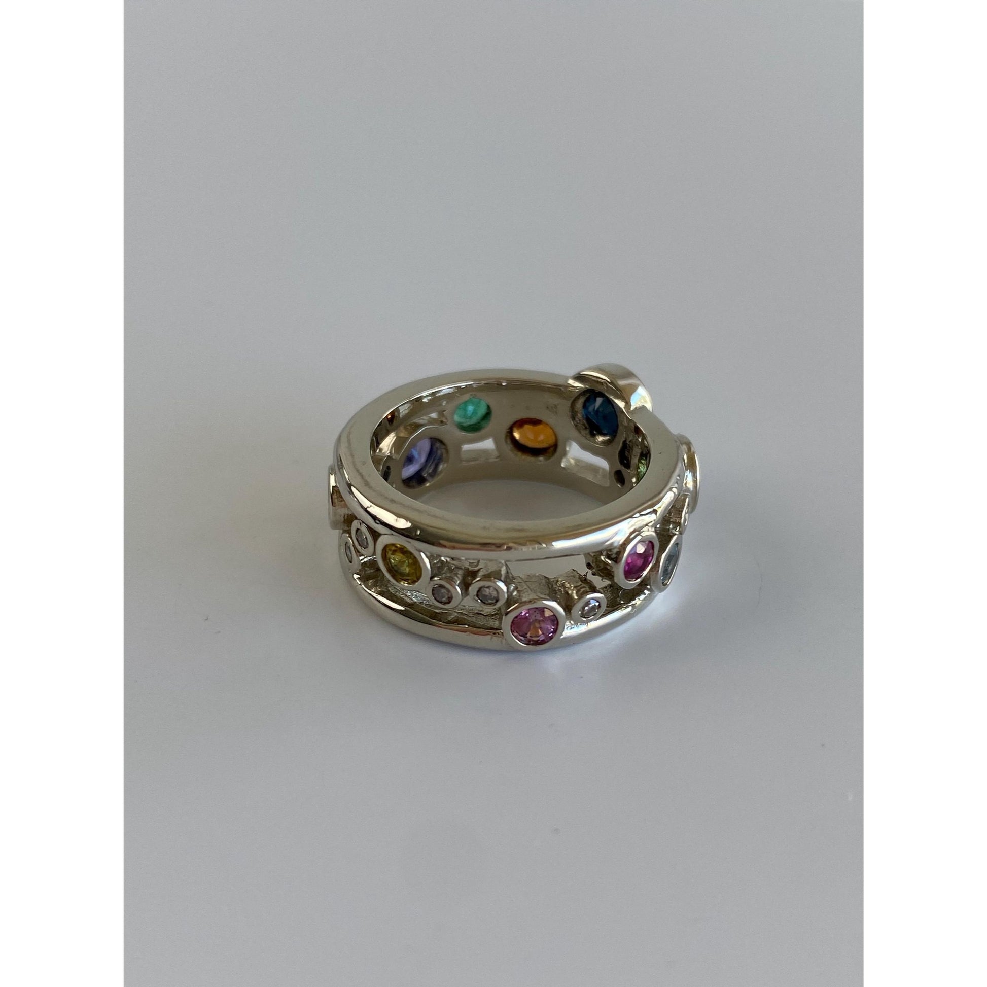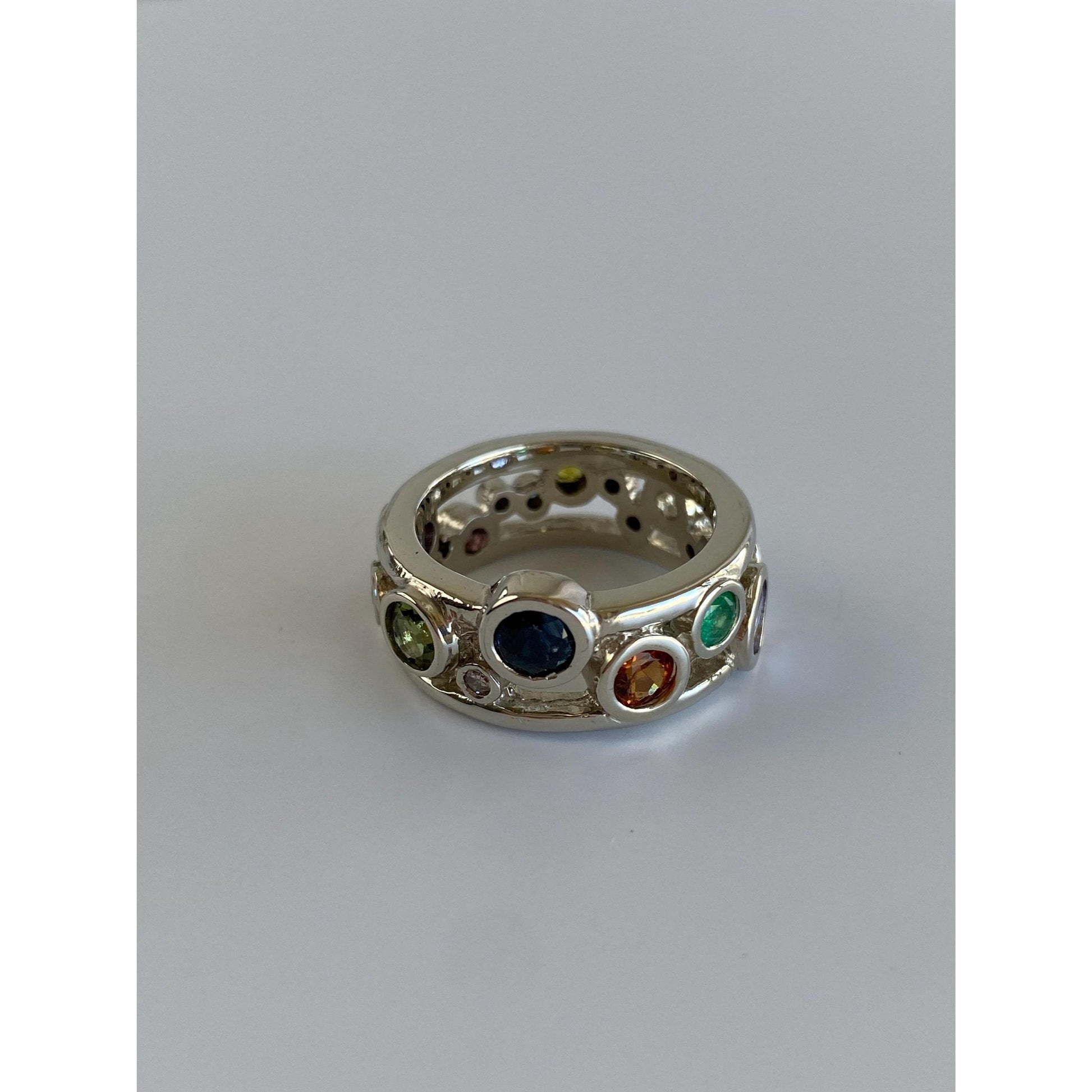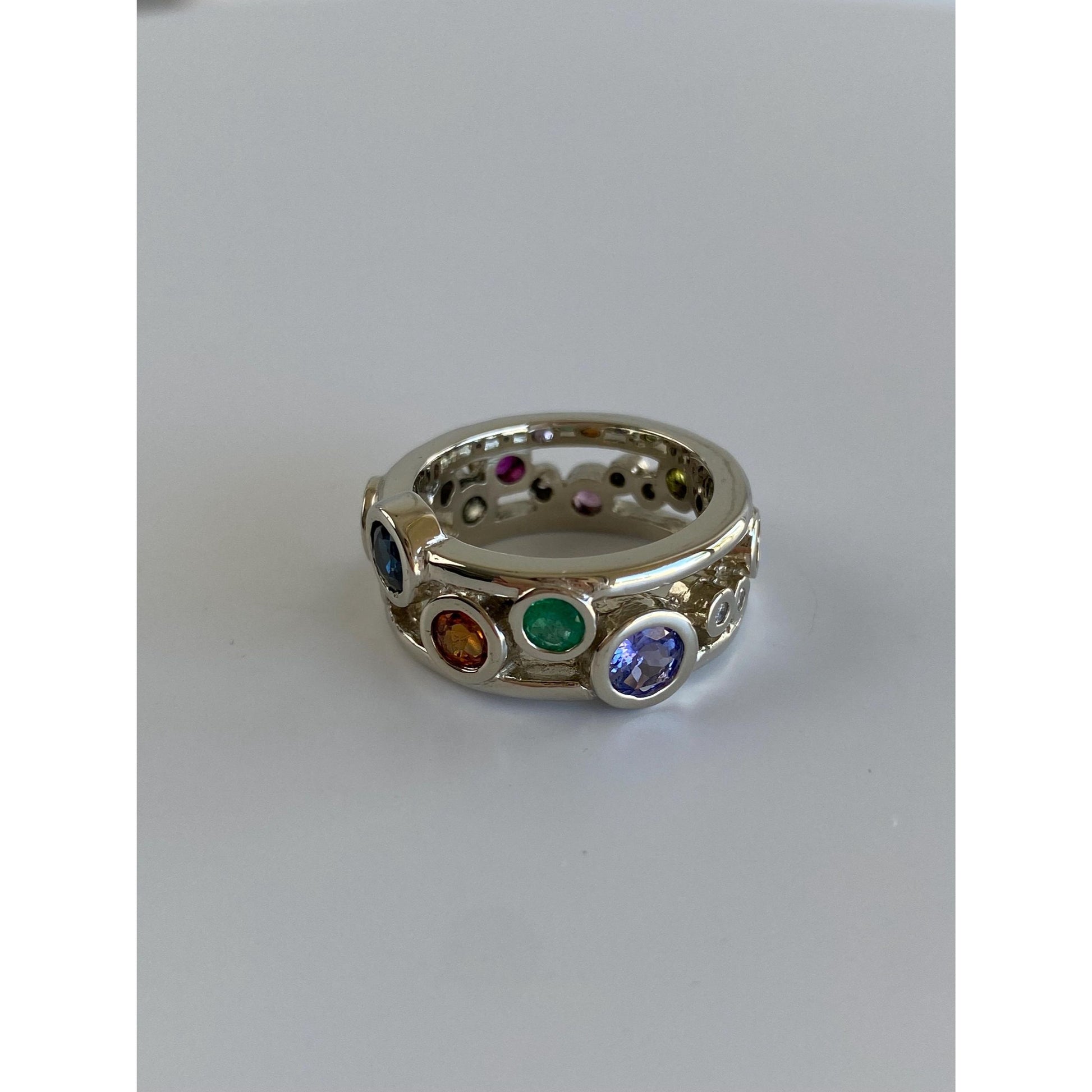 Solid 14k White Gold Diamond Peridot Sapphire Emerald Tanzanite Spinel Ring Band - Size 5.75