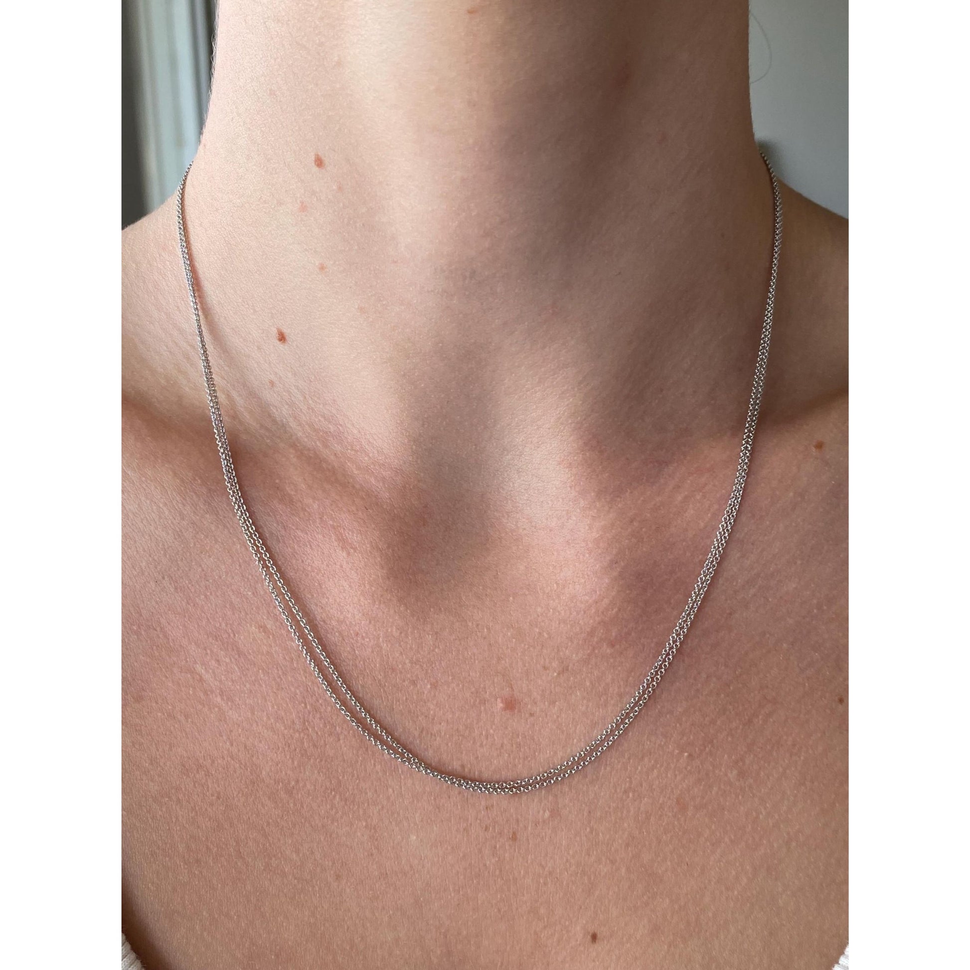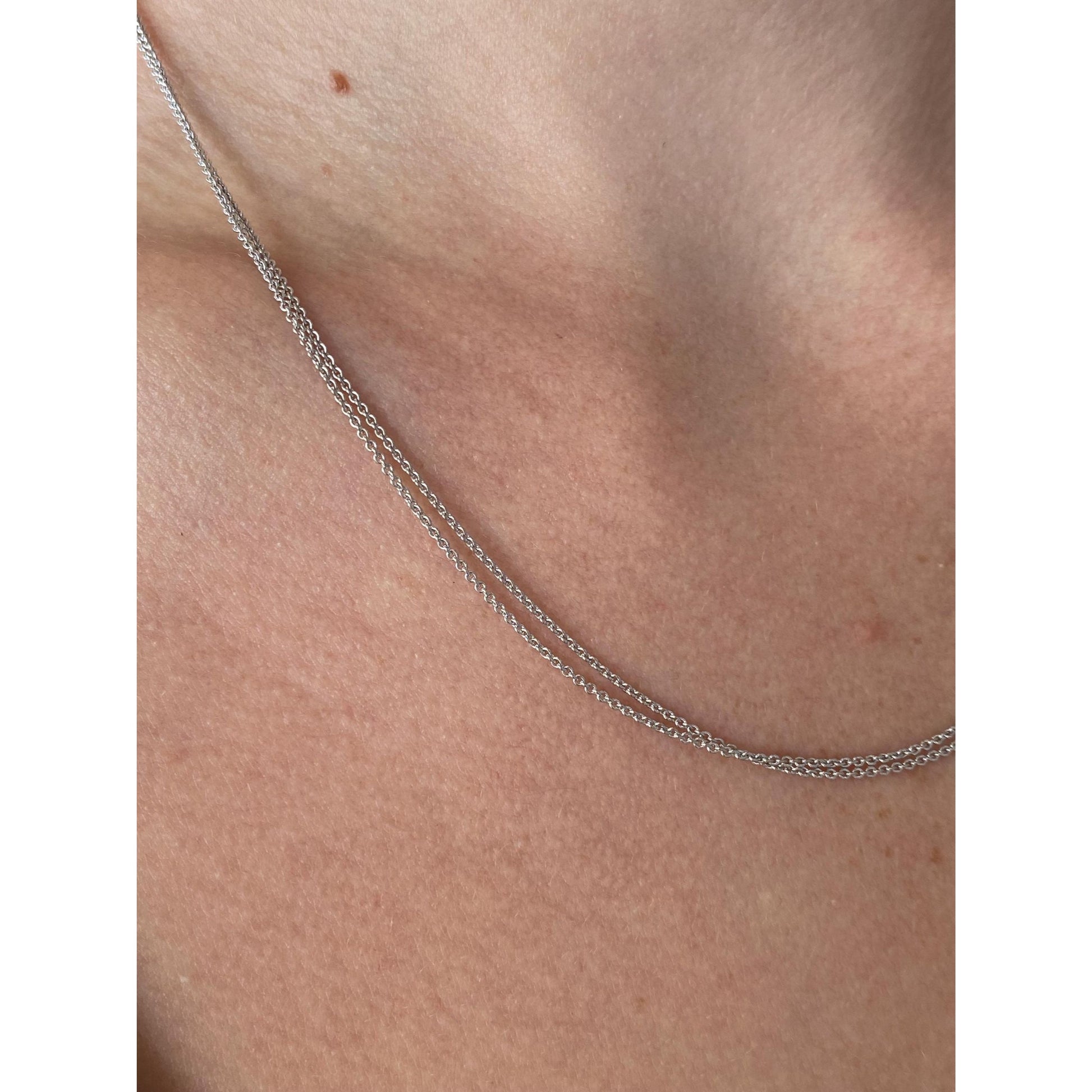 Solid 14k White Gold Double Strand Tight Rolo Chain Necklace - 18.25 inches