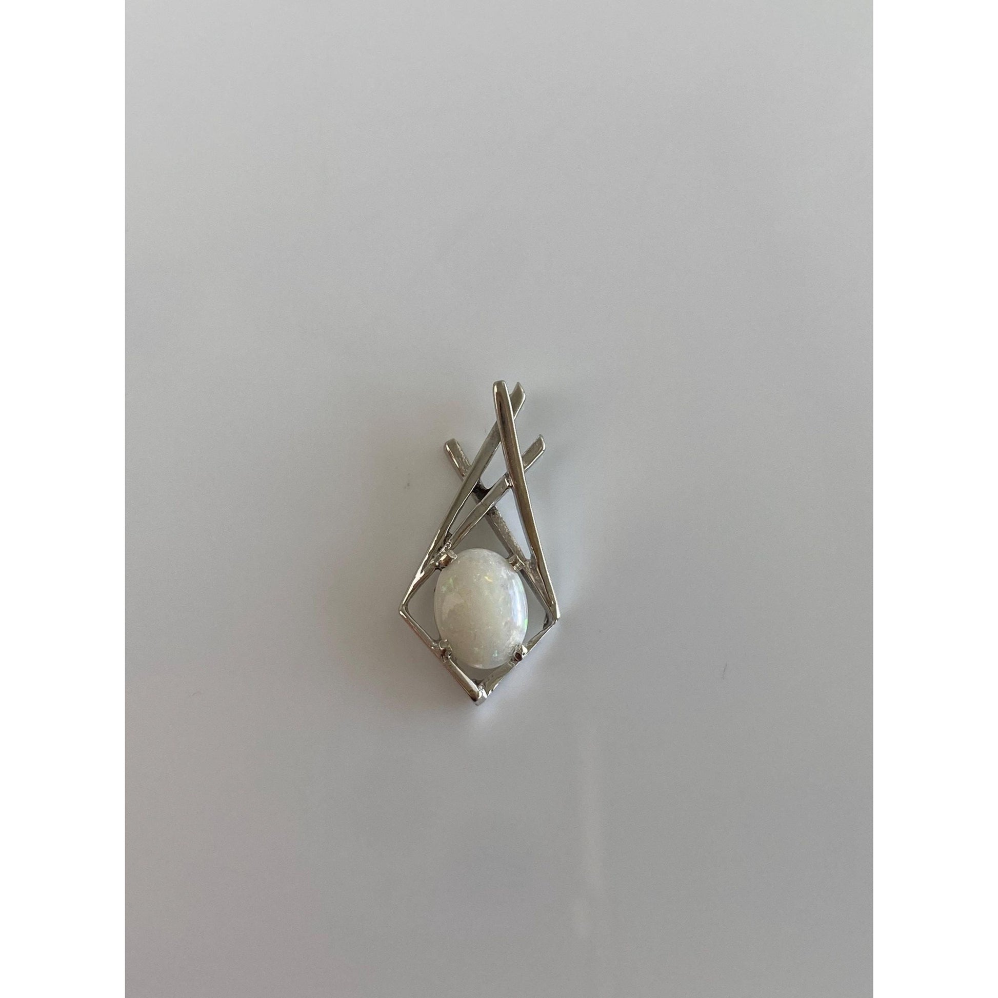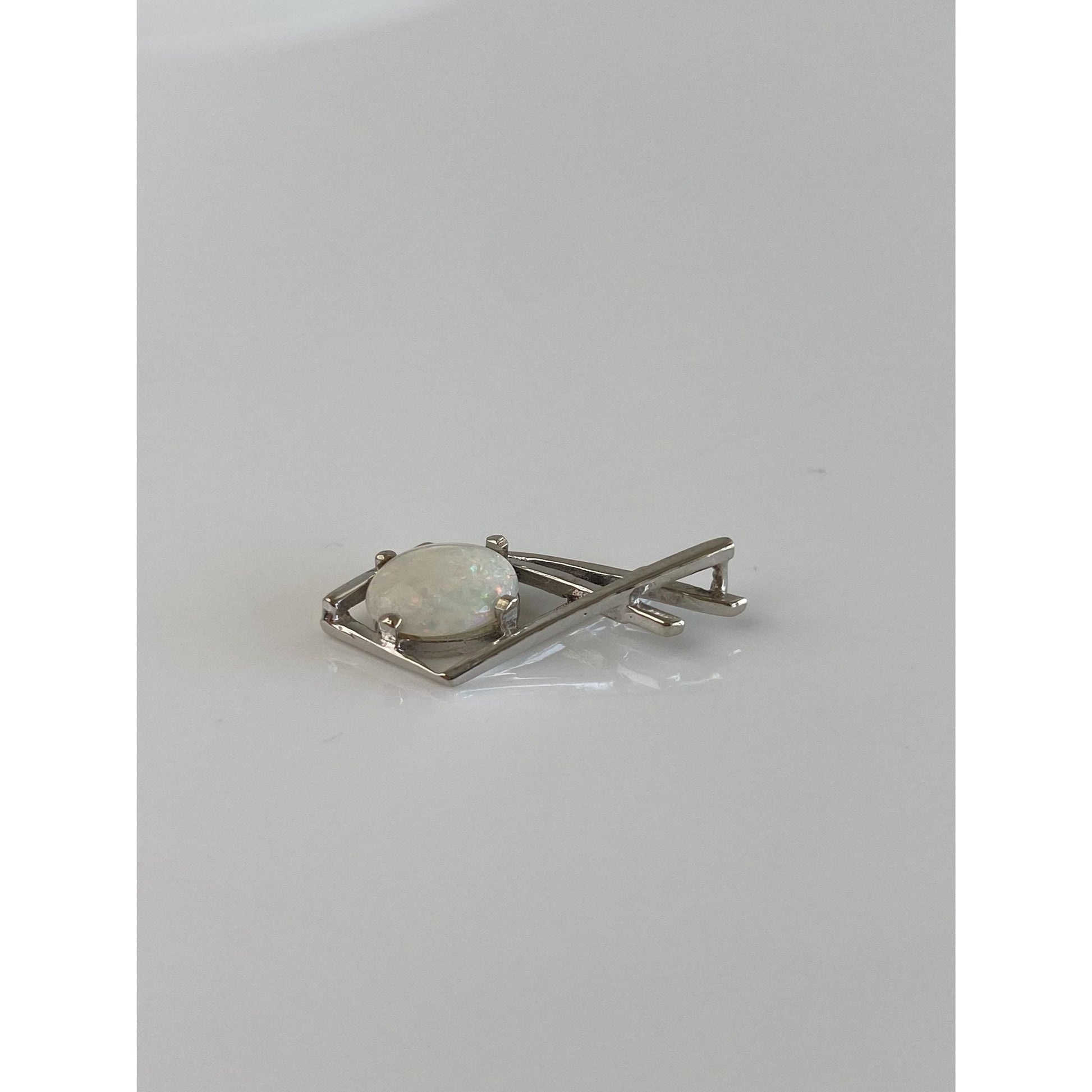 Solid 14k White Gold Opal Slide Charm