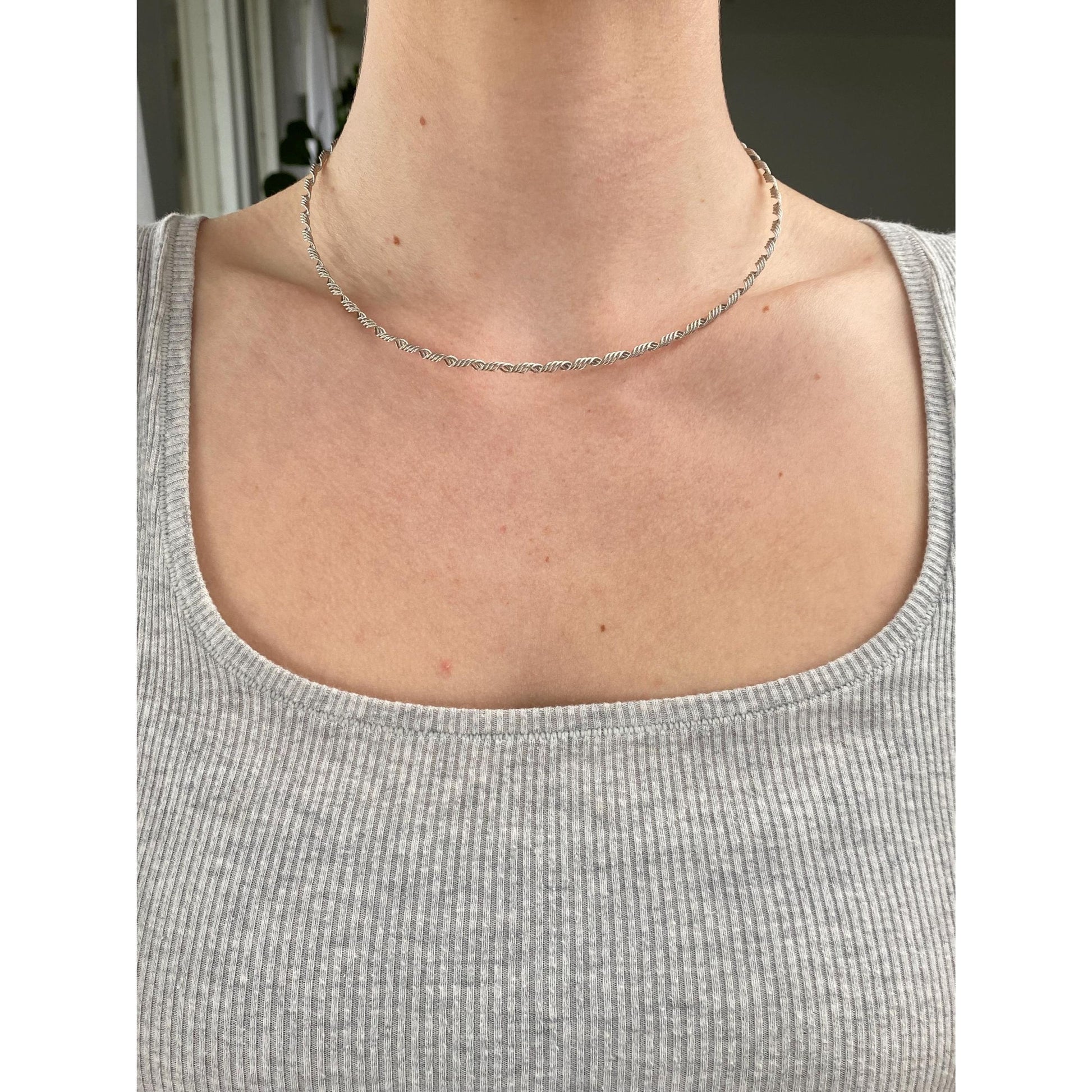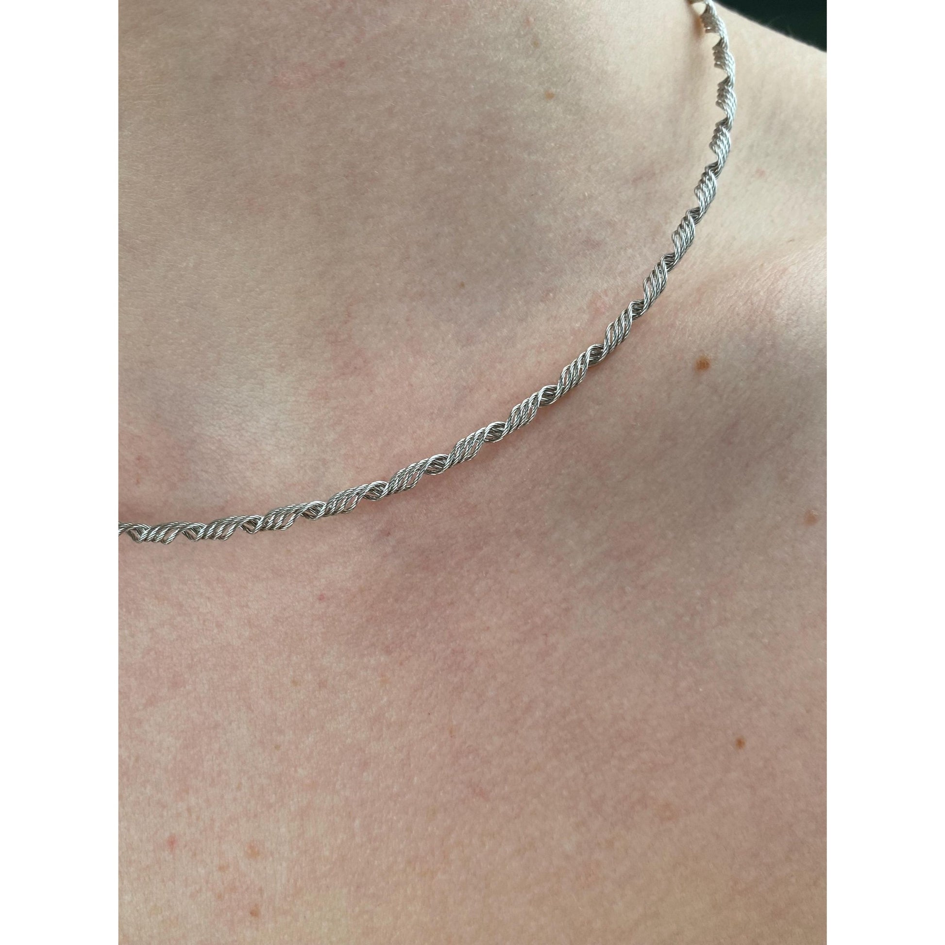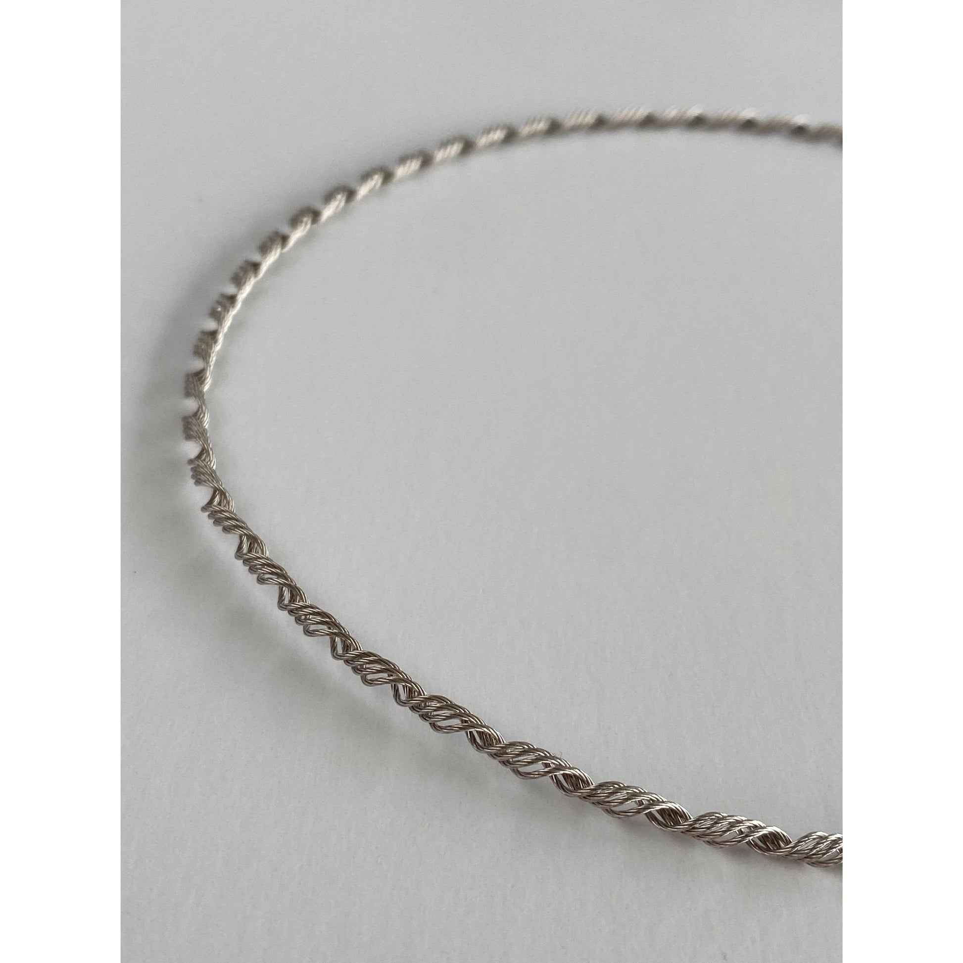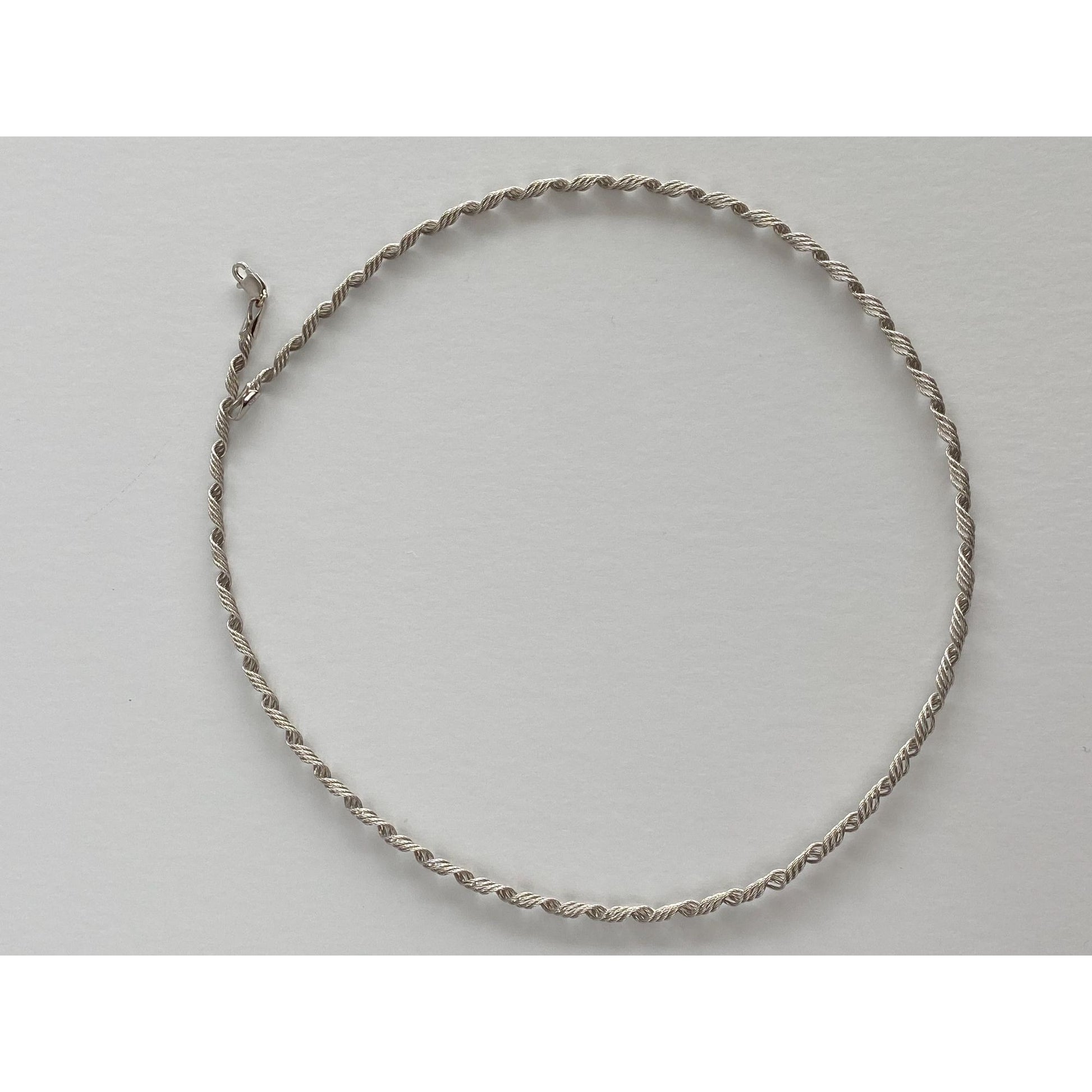 Solid 14k White Gold Springy Twisted Wire Necklace - 16.5 inches