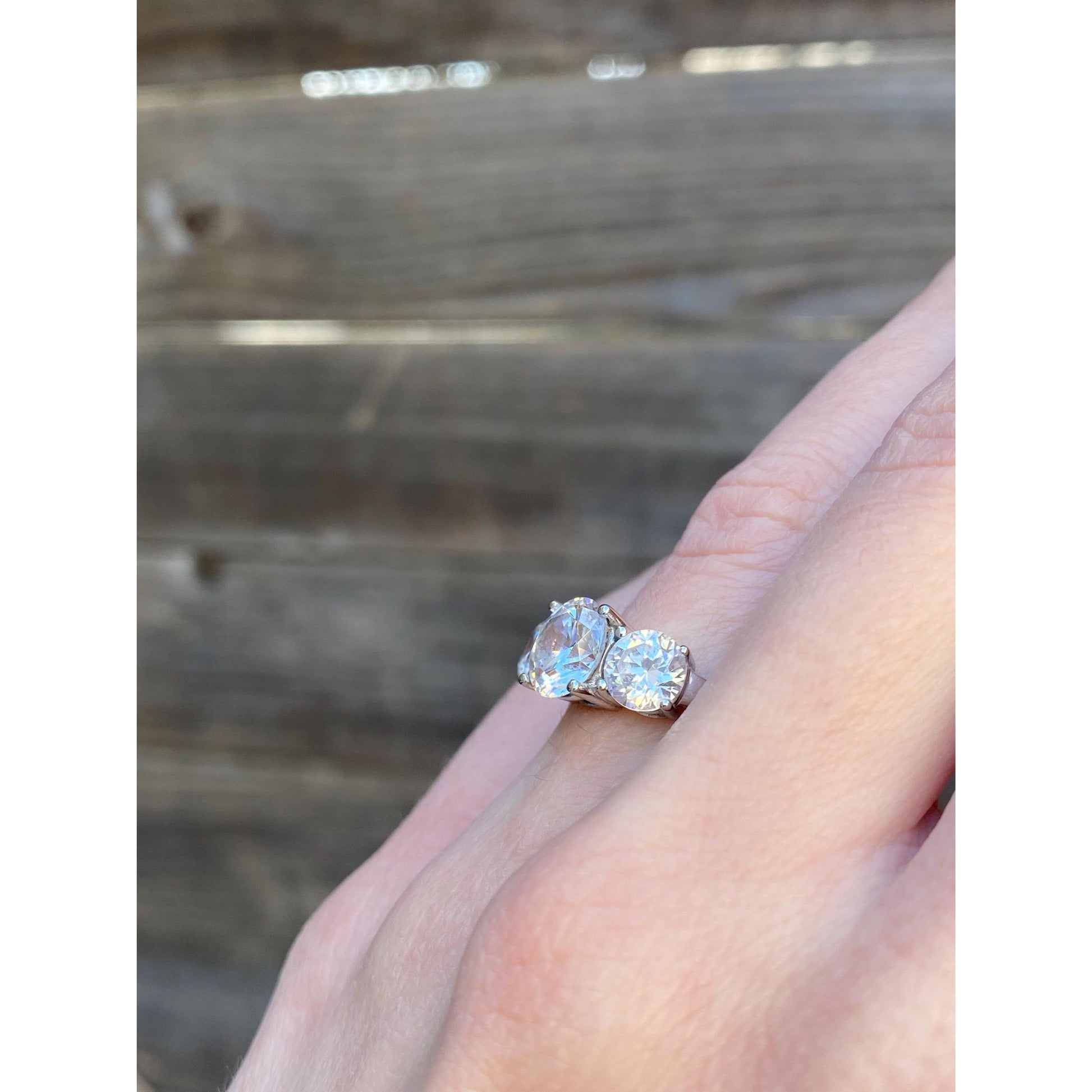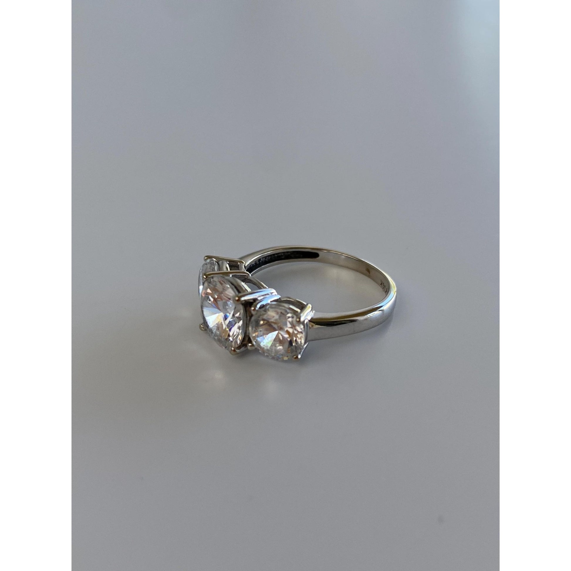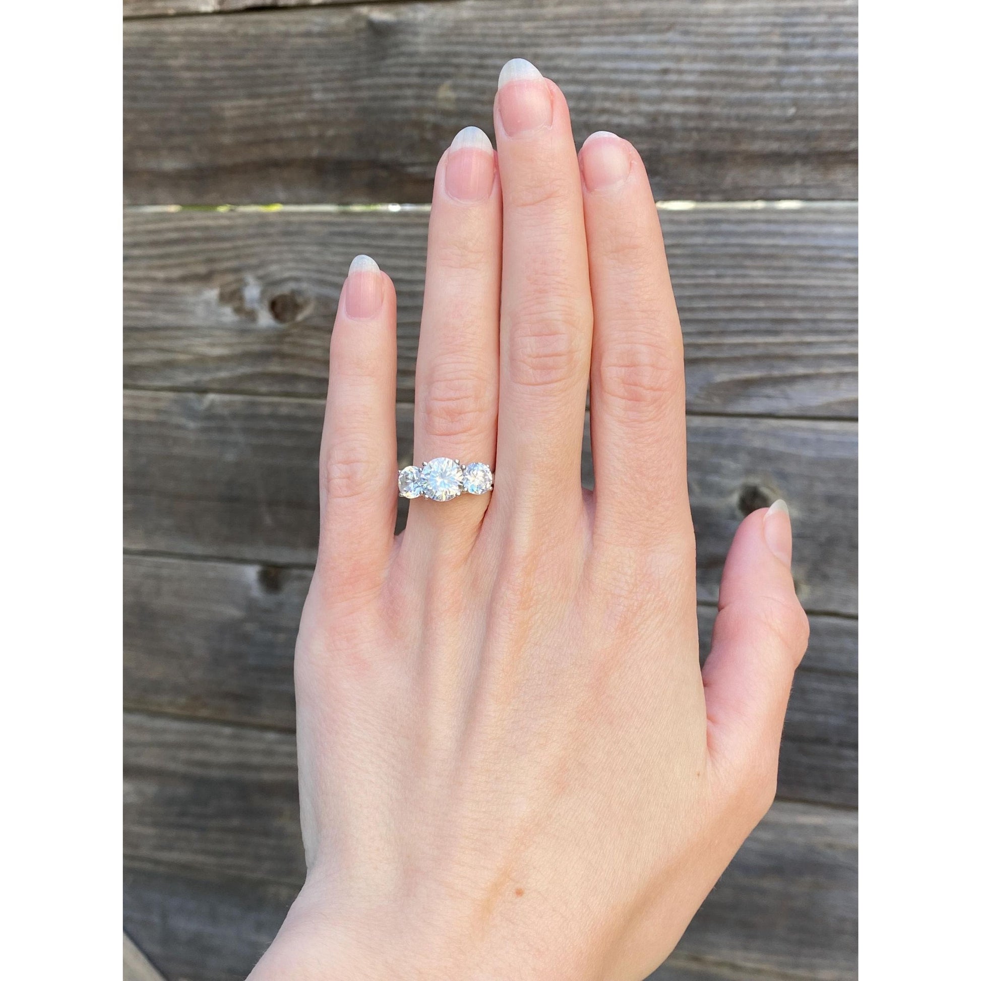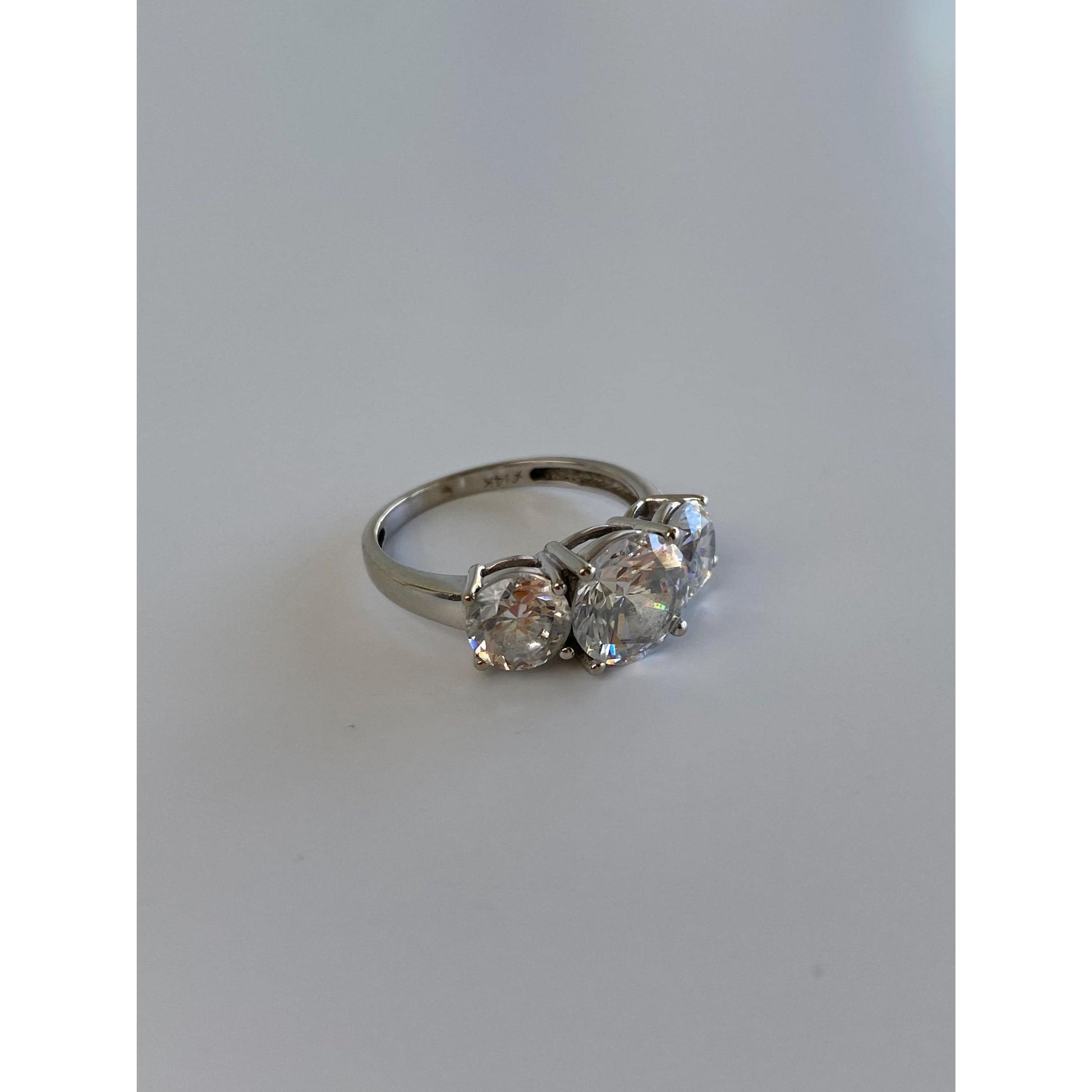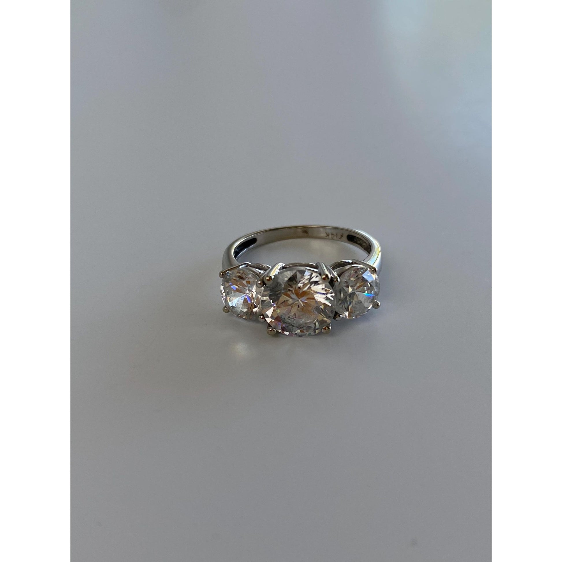 Solid 14k White Gold Triple Cubic Zirconia Ring - Size 5.75