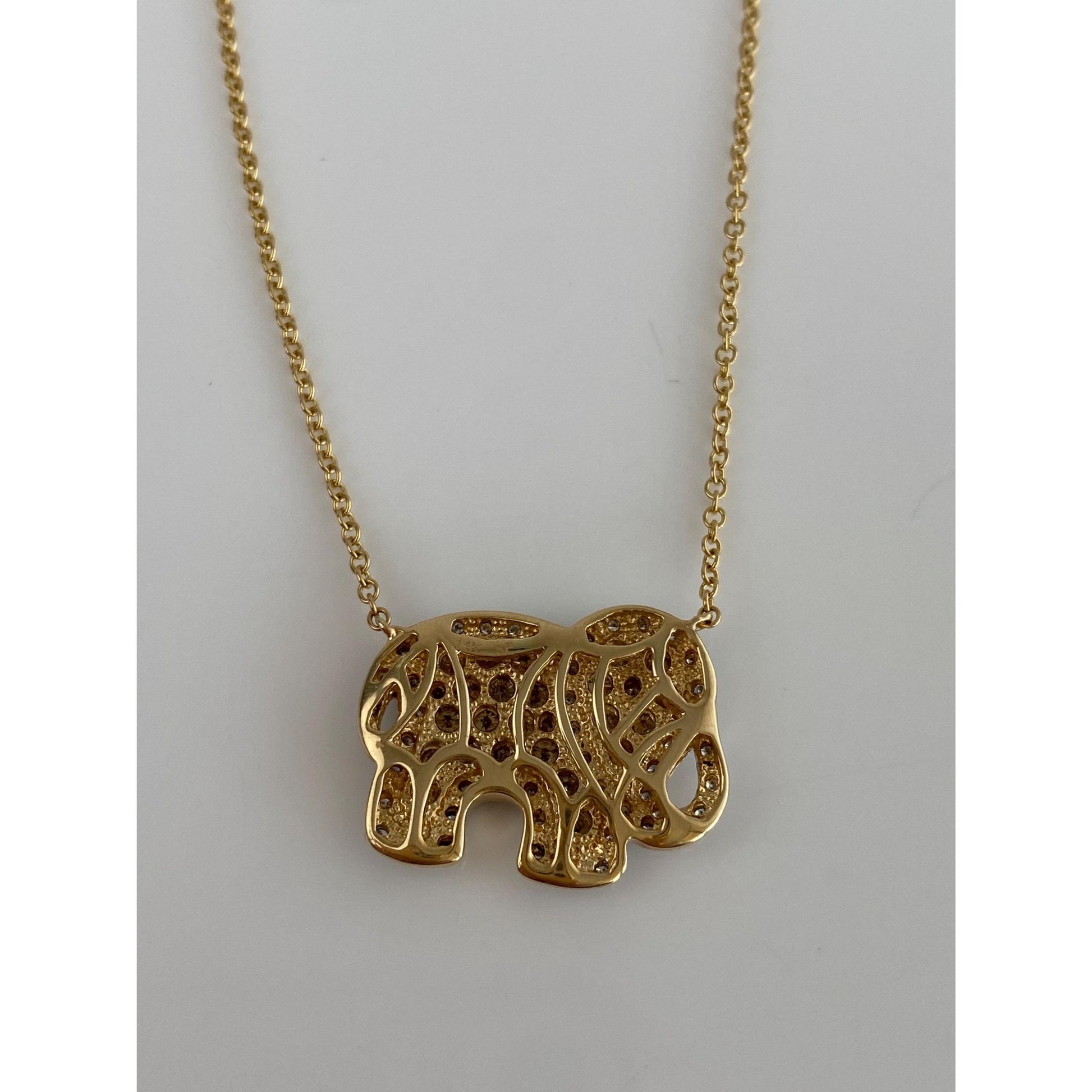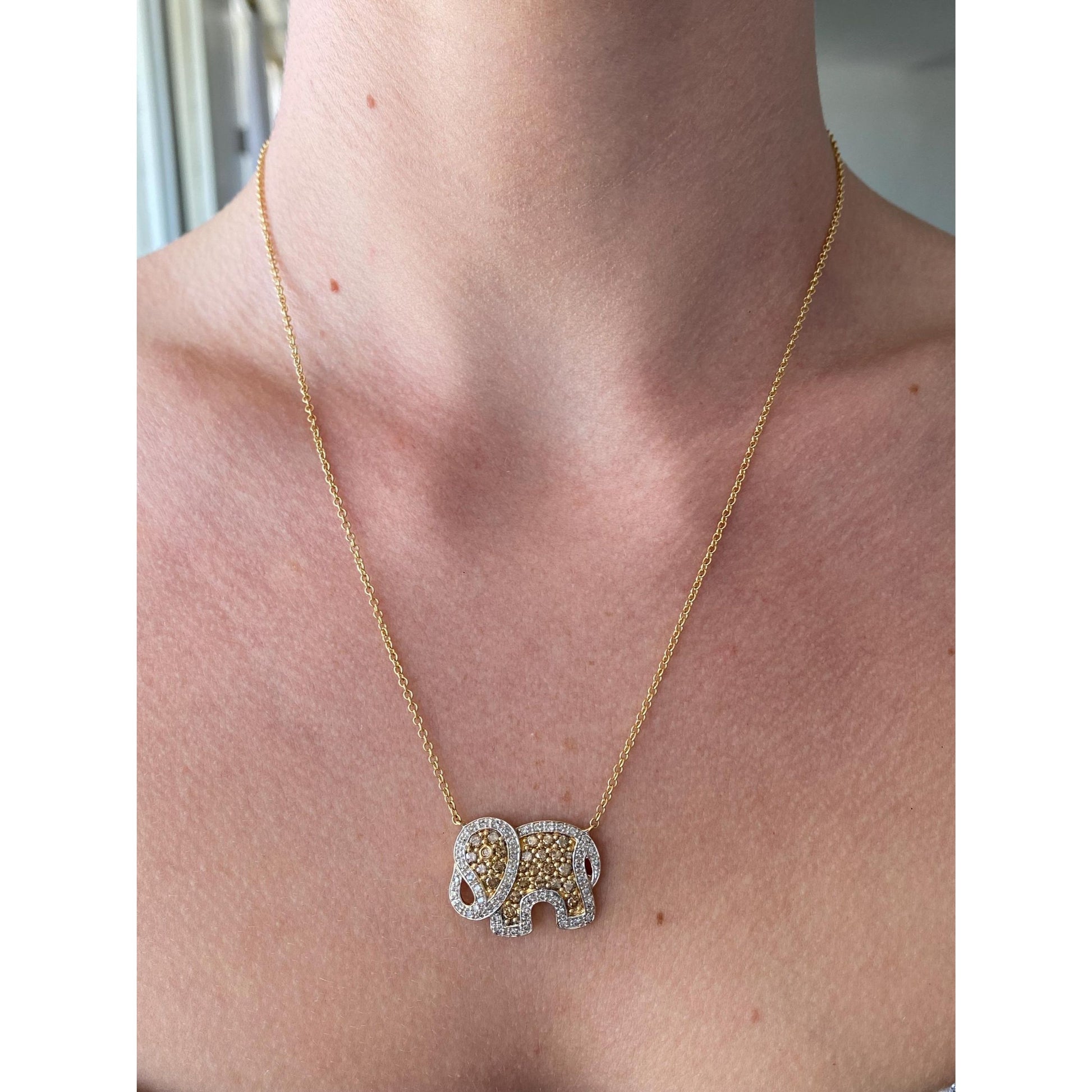 Solid 14k White & Yellow Gold Brown and Clear Diamond Elephant Rolo Necklace - 18.75 inches