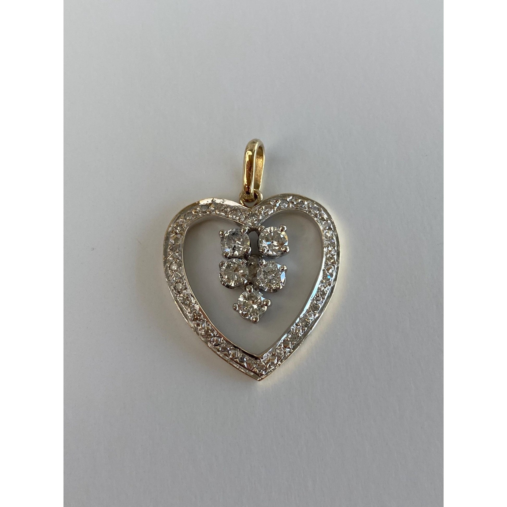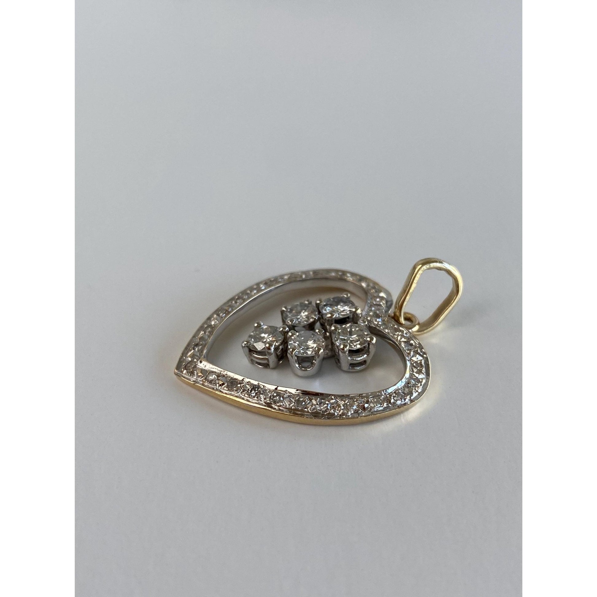Solid 14k White & Yellow Gold Diamond Cluster Heart Charm