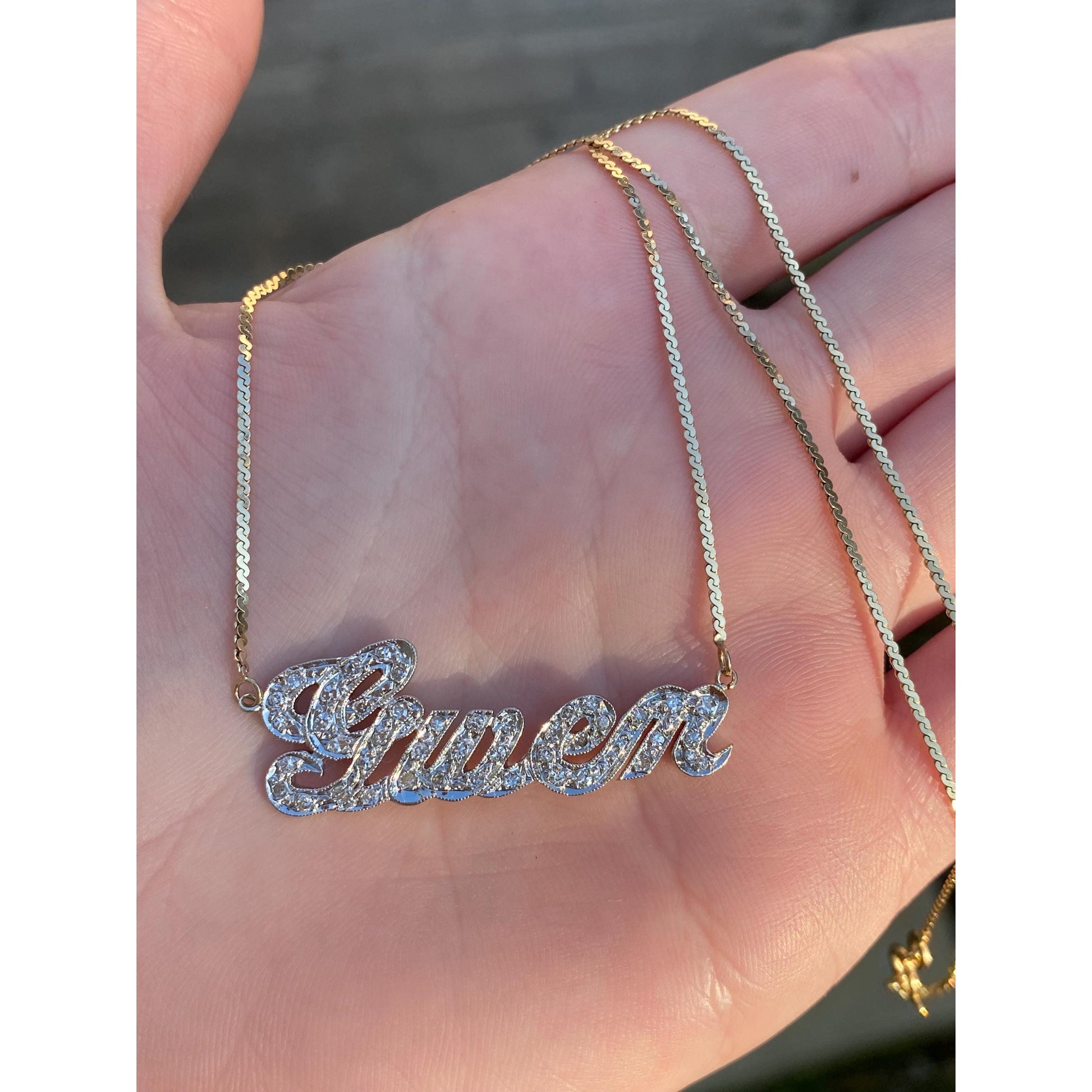 Solid 14k White & Yellow Gold Diamond 'Gwen' Nameplate Serpentine Necklace - 16 inches