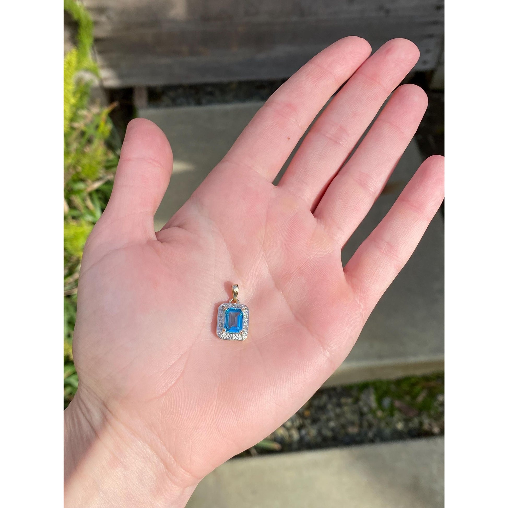 Solid 14k White & Yellow Gold Topaz Diamond Charm