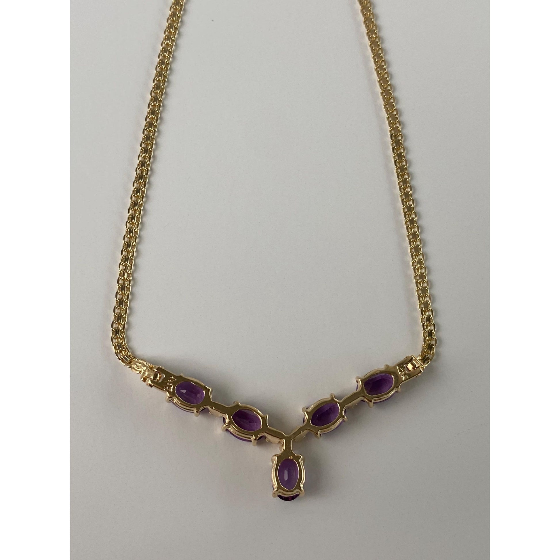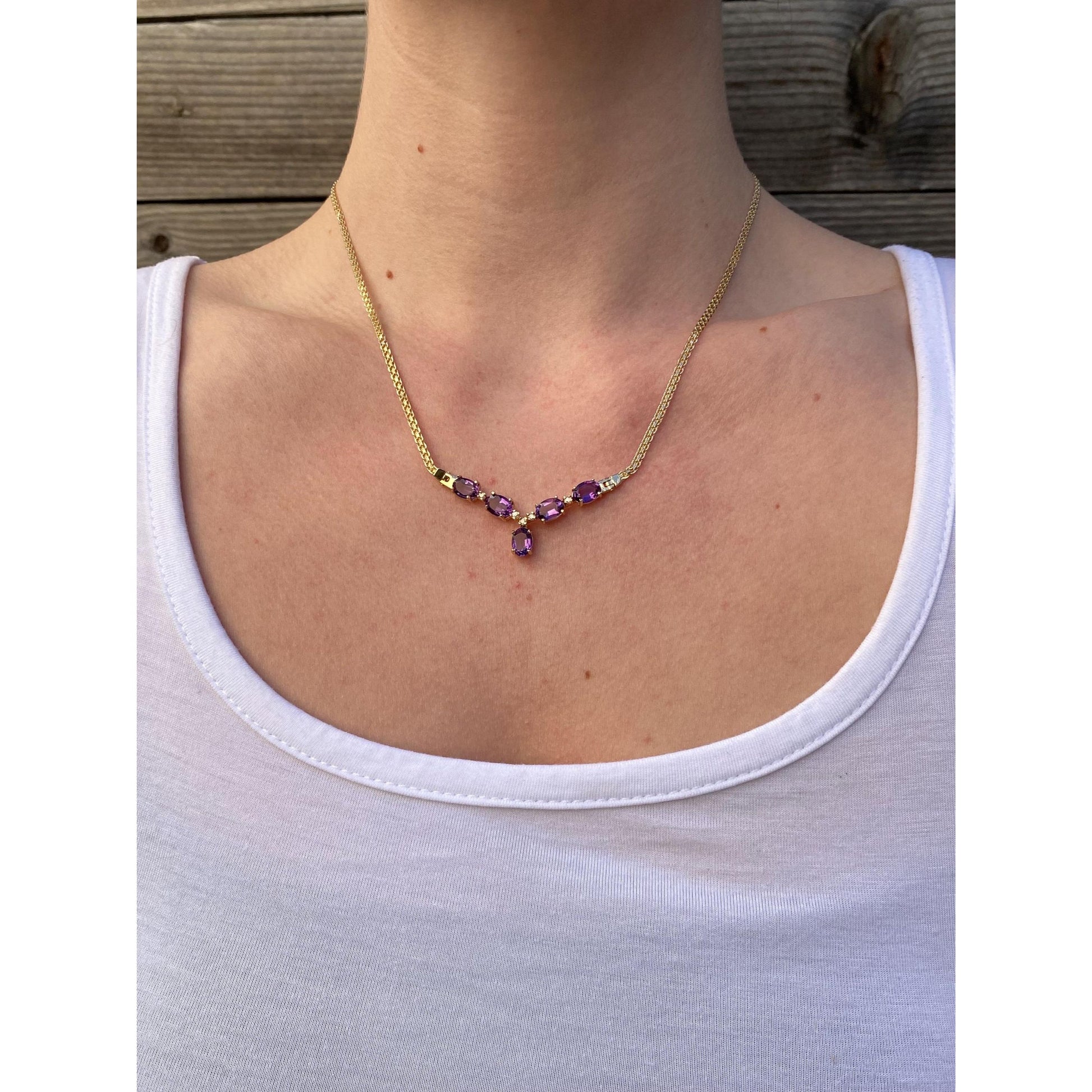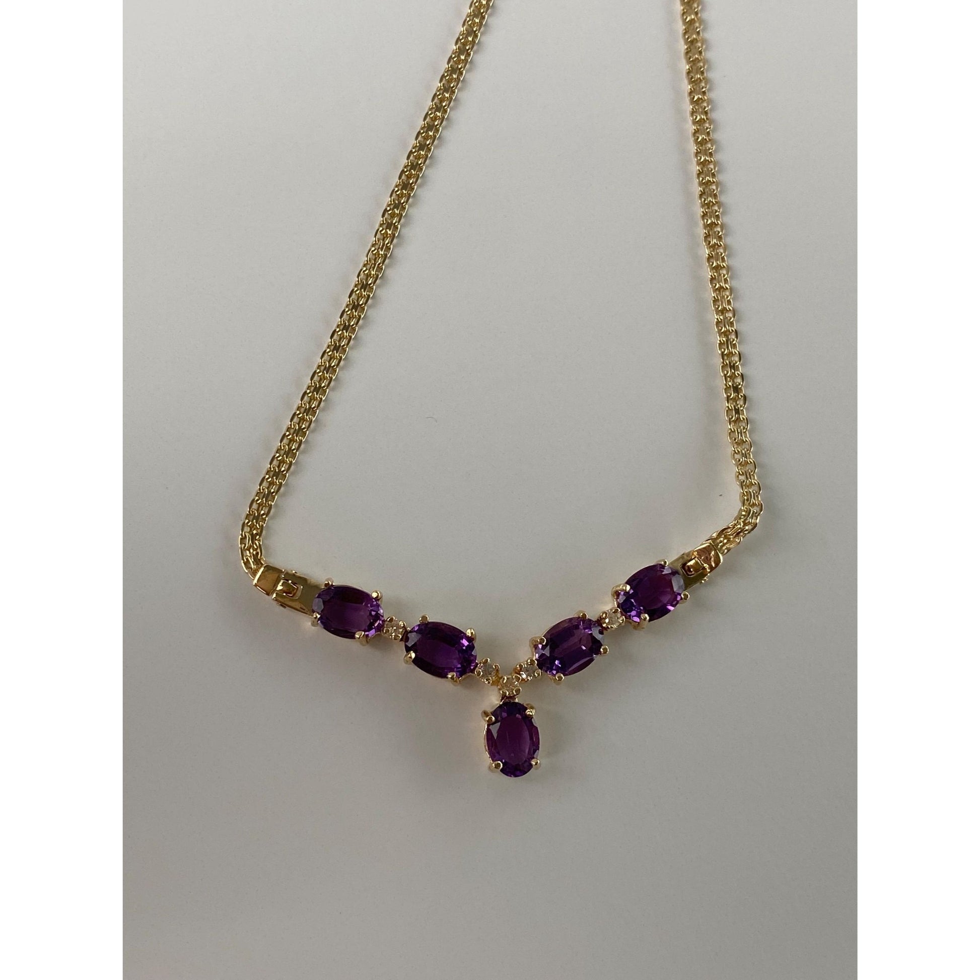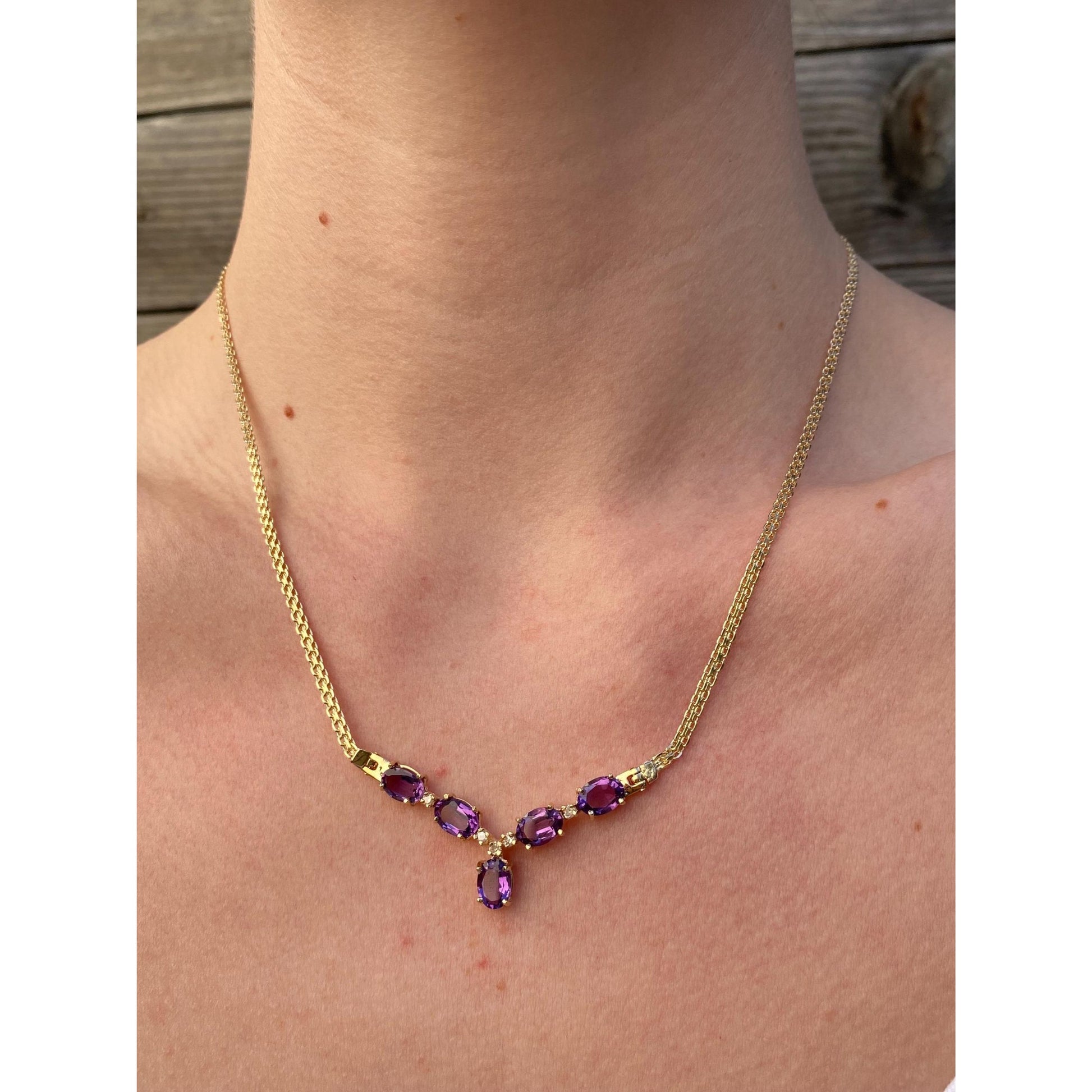 Solid 14k Yellow Gold Amethyst Diamond Fancy Flat Chain Necklace - 17.5 inches