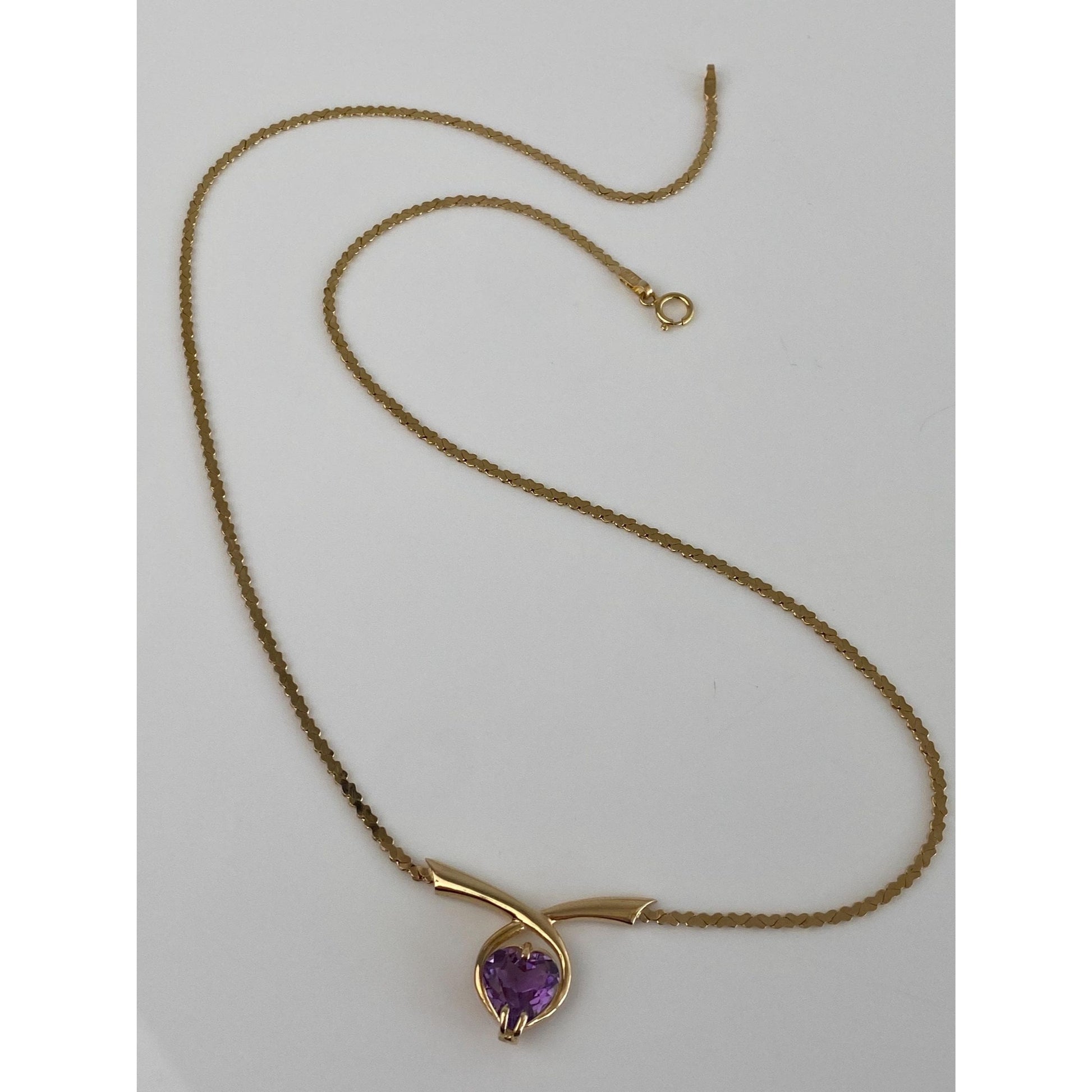 Solid 14k Yellow Gold Amethyst Heart Link Chain Necklace - 17.75 inches
