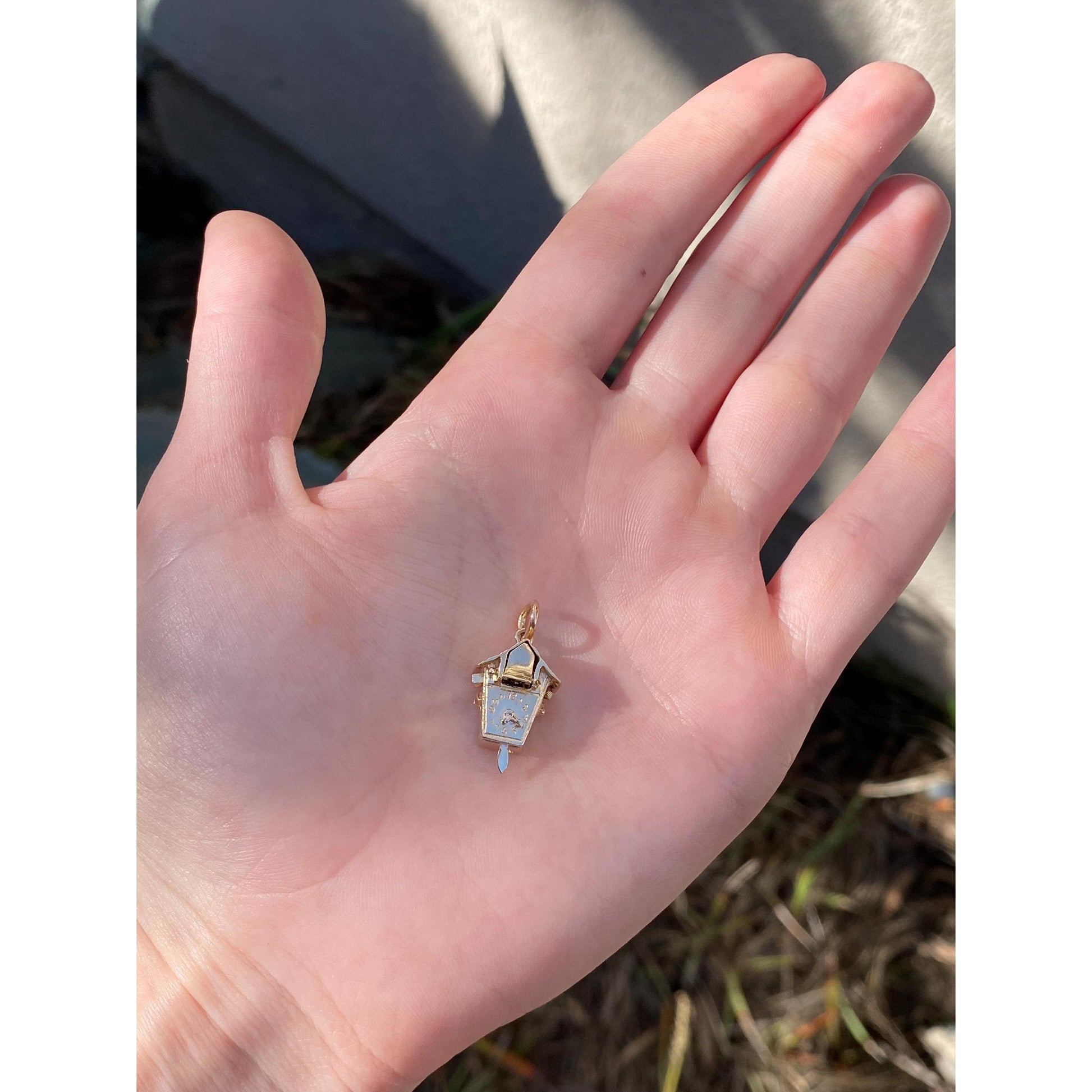 Solid 14k Yellow Gold Articulated Cuckoo Clock Charm