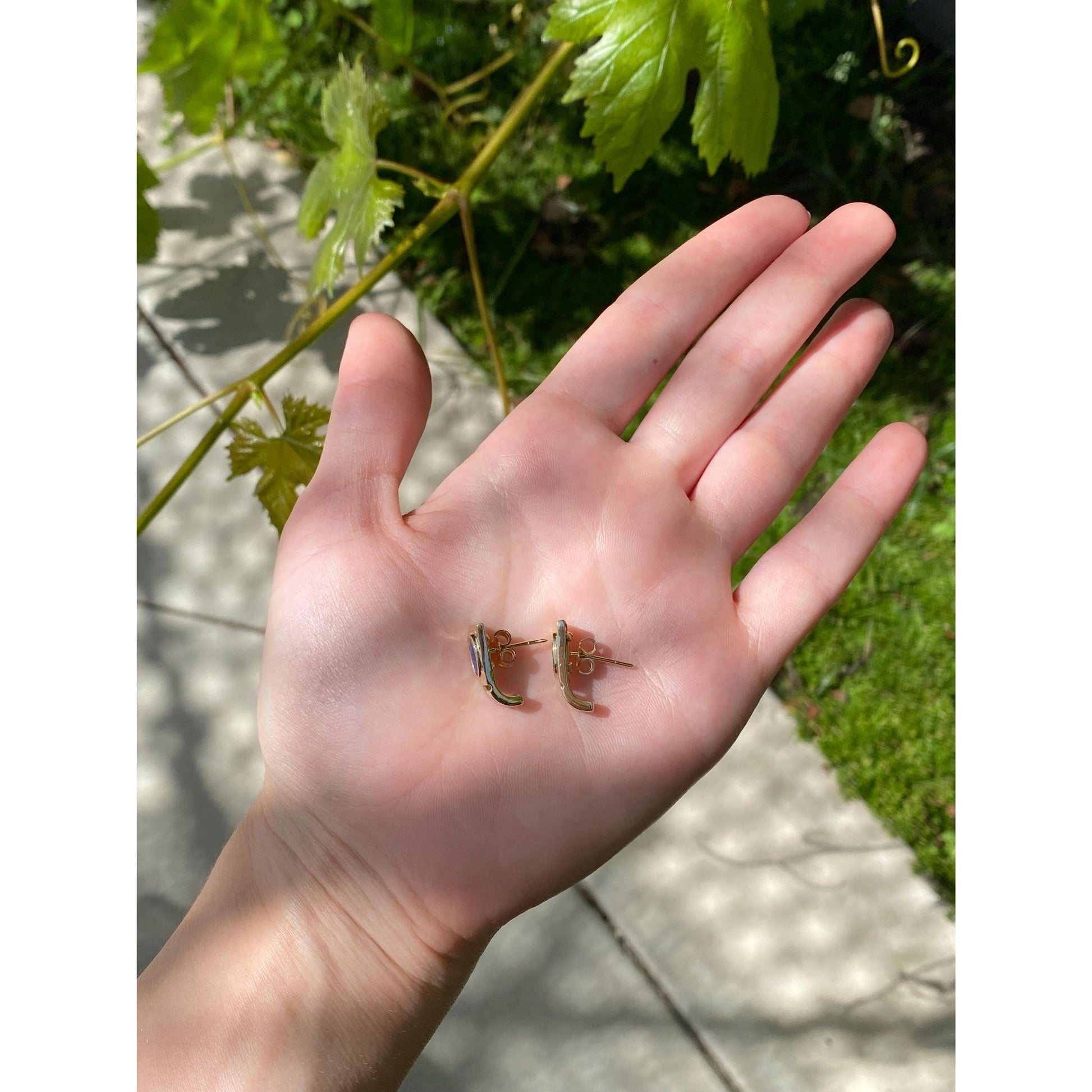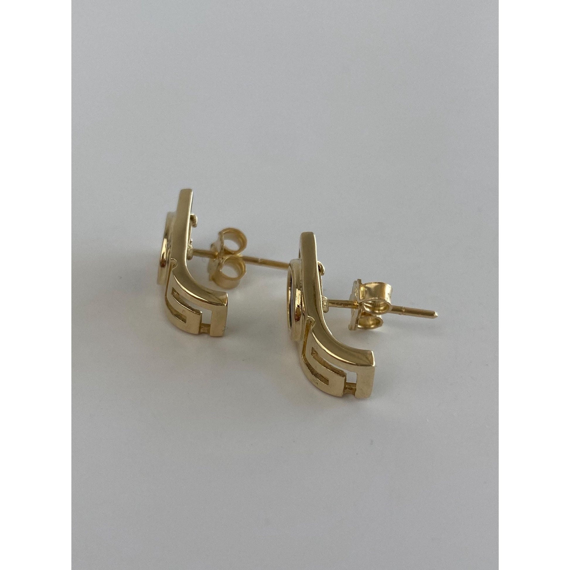 Solid 14k Yellow Gold Blue Lapis Greek Key Stud Earrings
