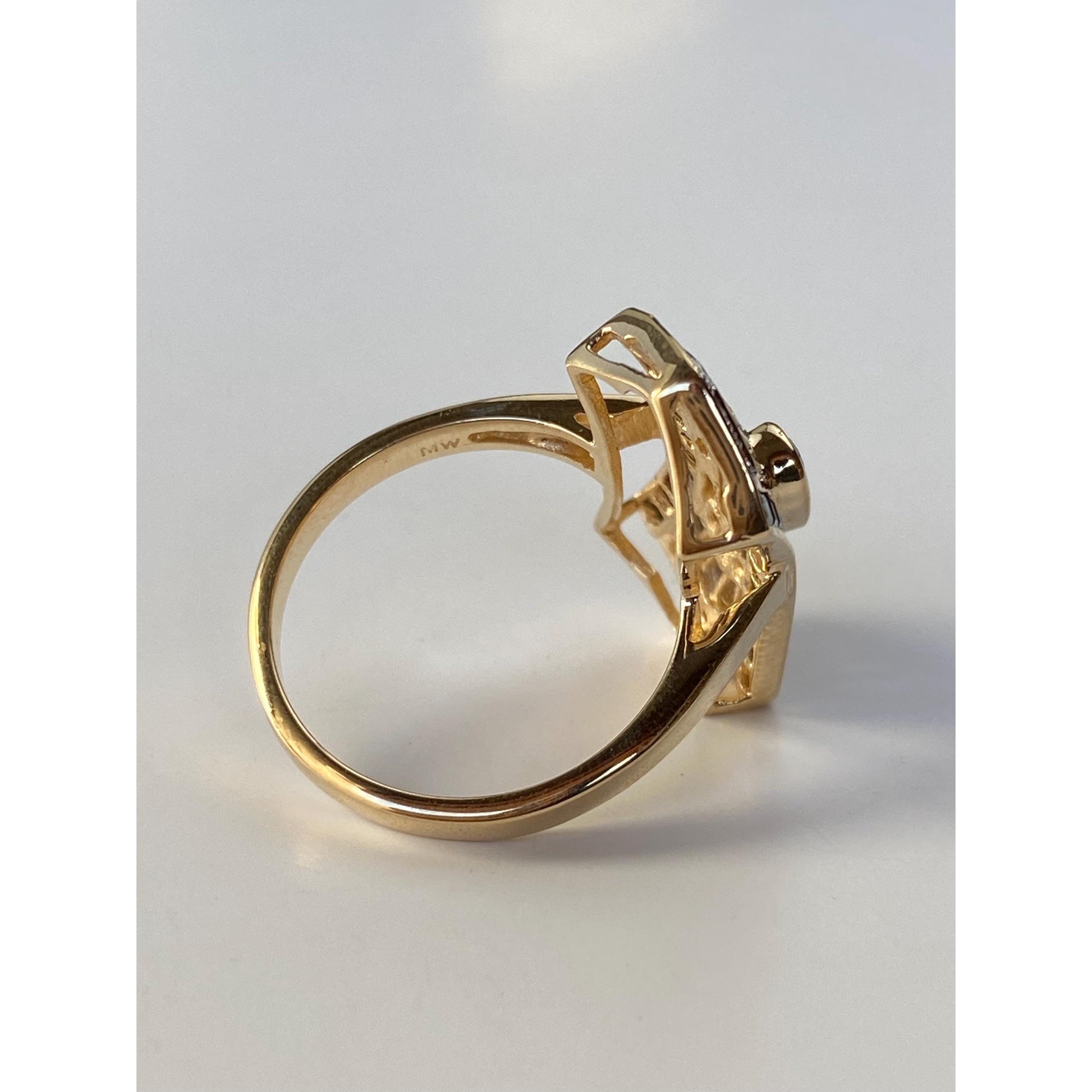 Solid 14k Yellow Gold Blue Sapphire Diamond Art Nouveau Ring - Size 6.5