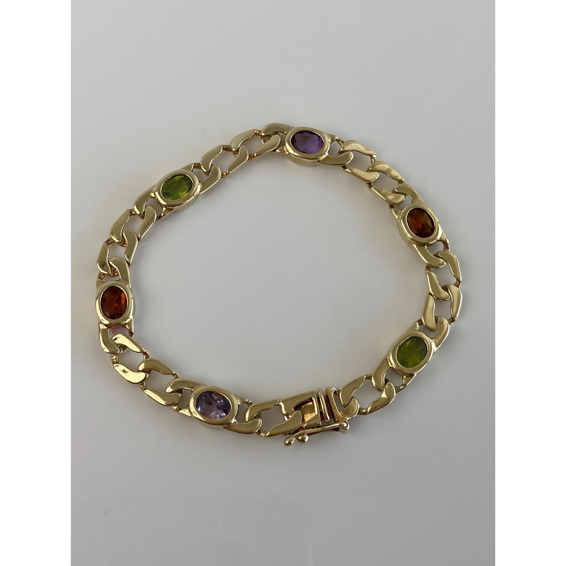 Solid 14k Yellow Gold Citrine Amethyst Peridot Flat Curb Chain Bracelet - 7 Inches
