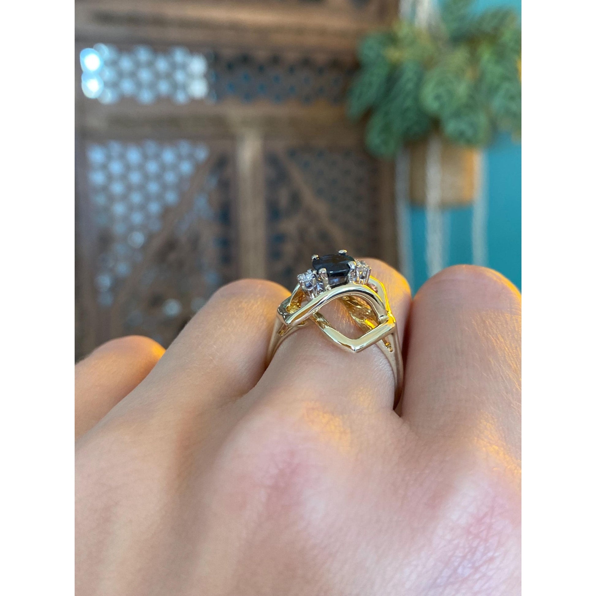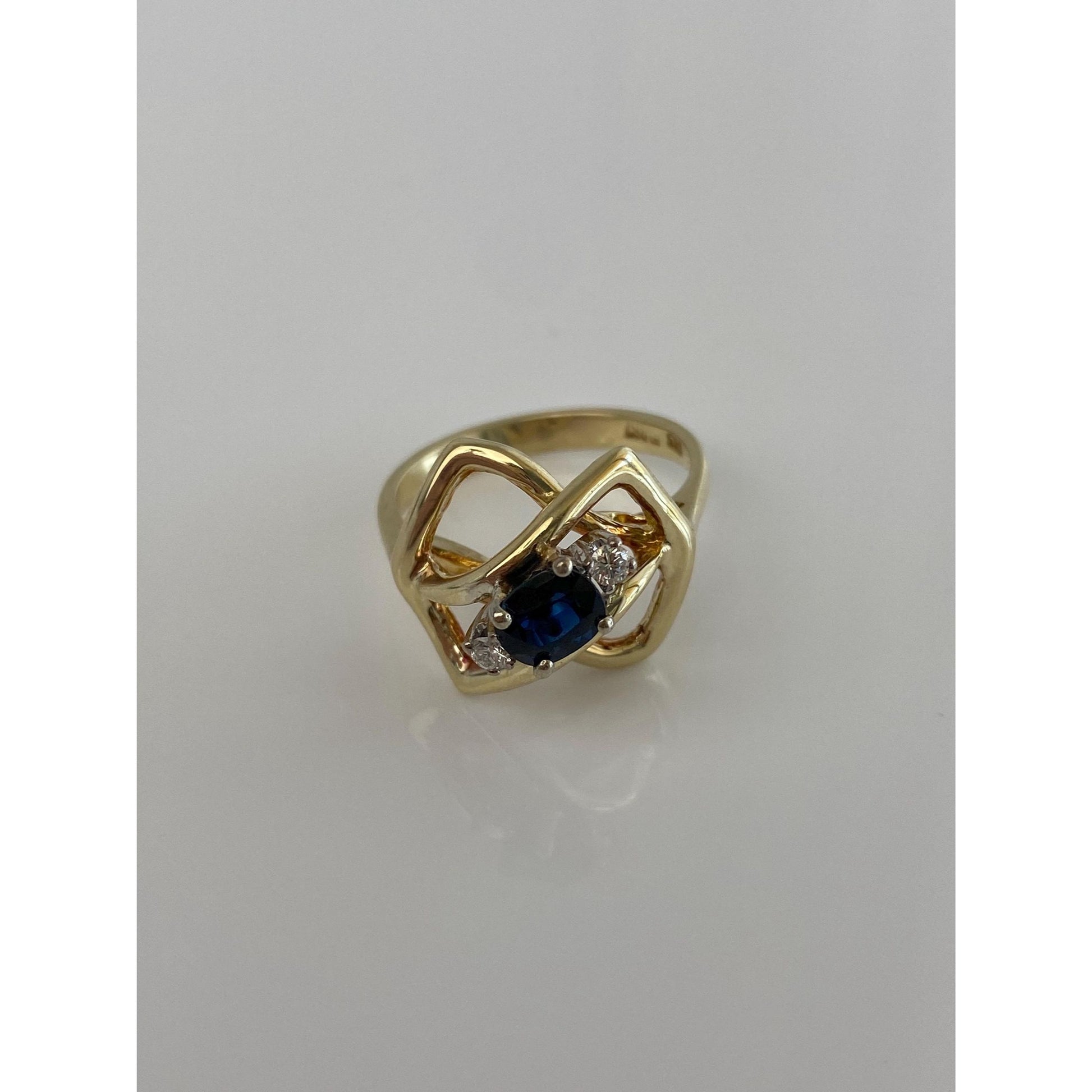 Solid 14k Yellow Gold Clear & Blue Sapphire Ring - Size 7.5