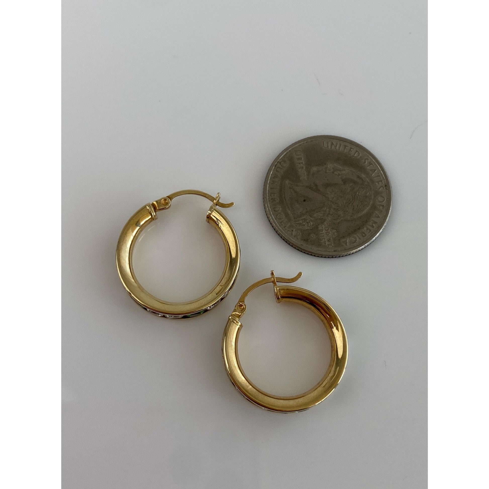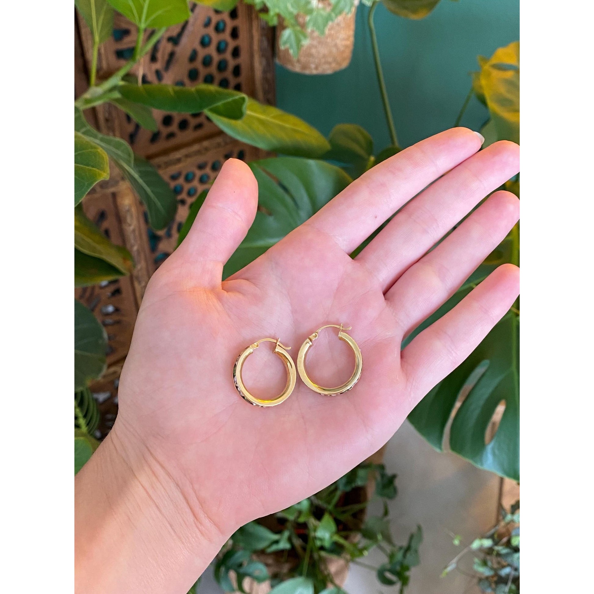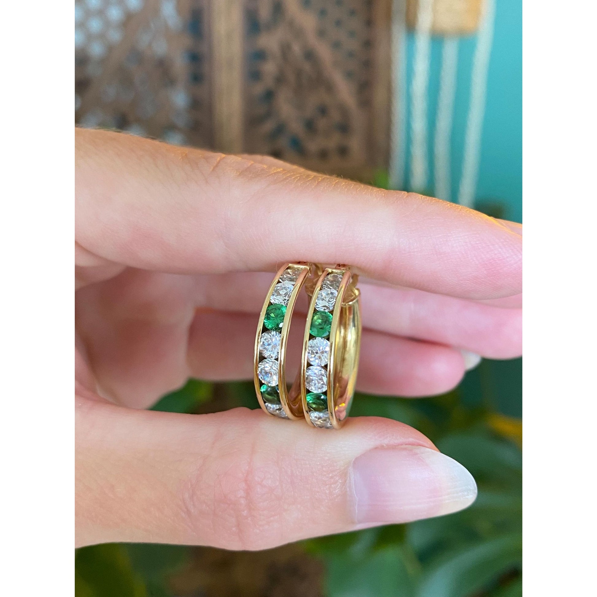 Solid 14k Yellow Gold Clear & Green Cubic Zirconia Hoop Earrings