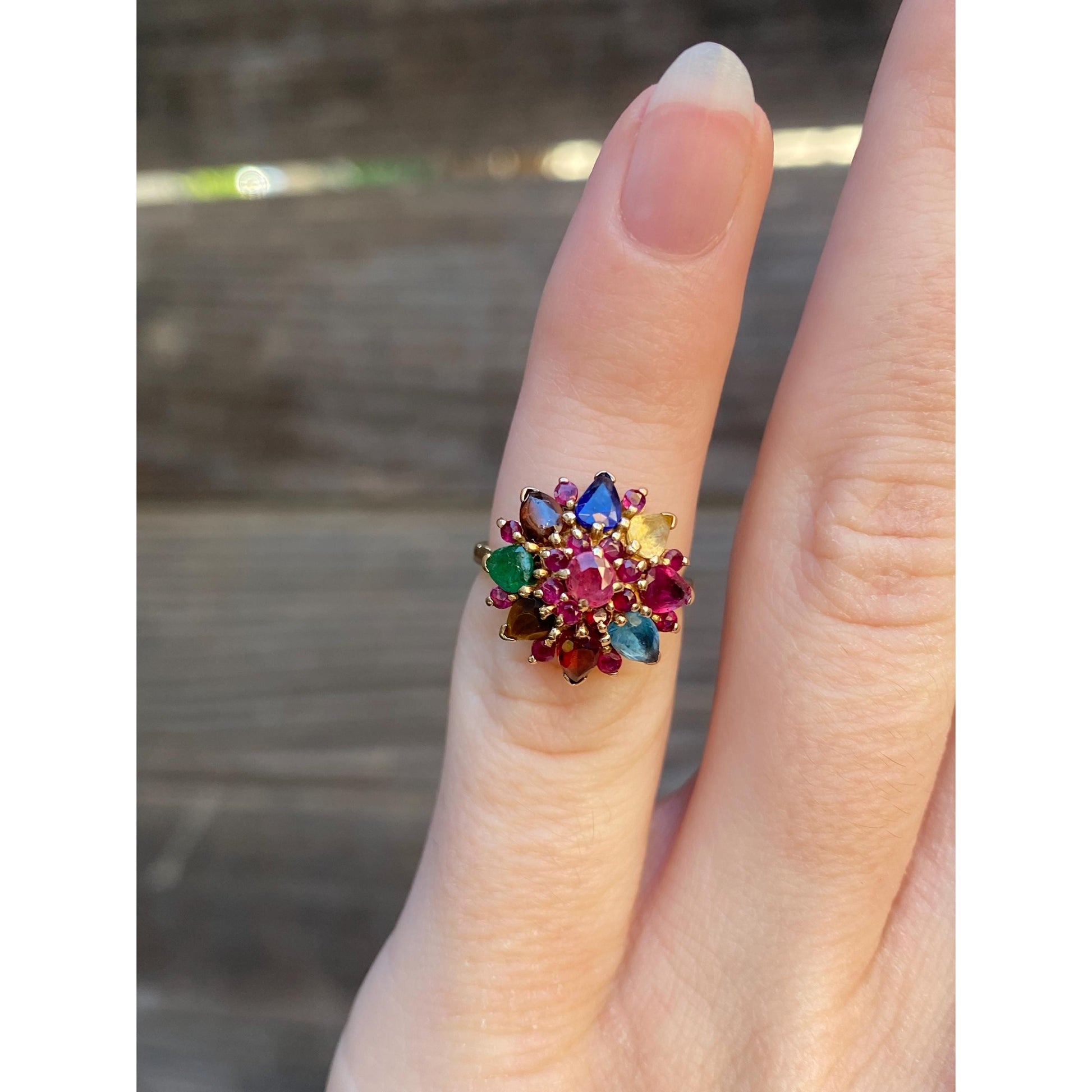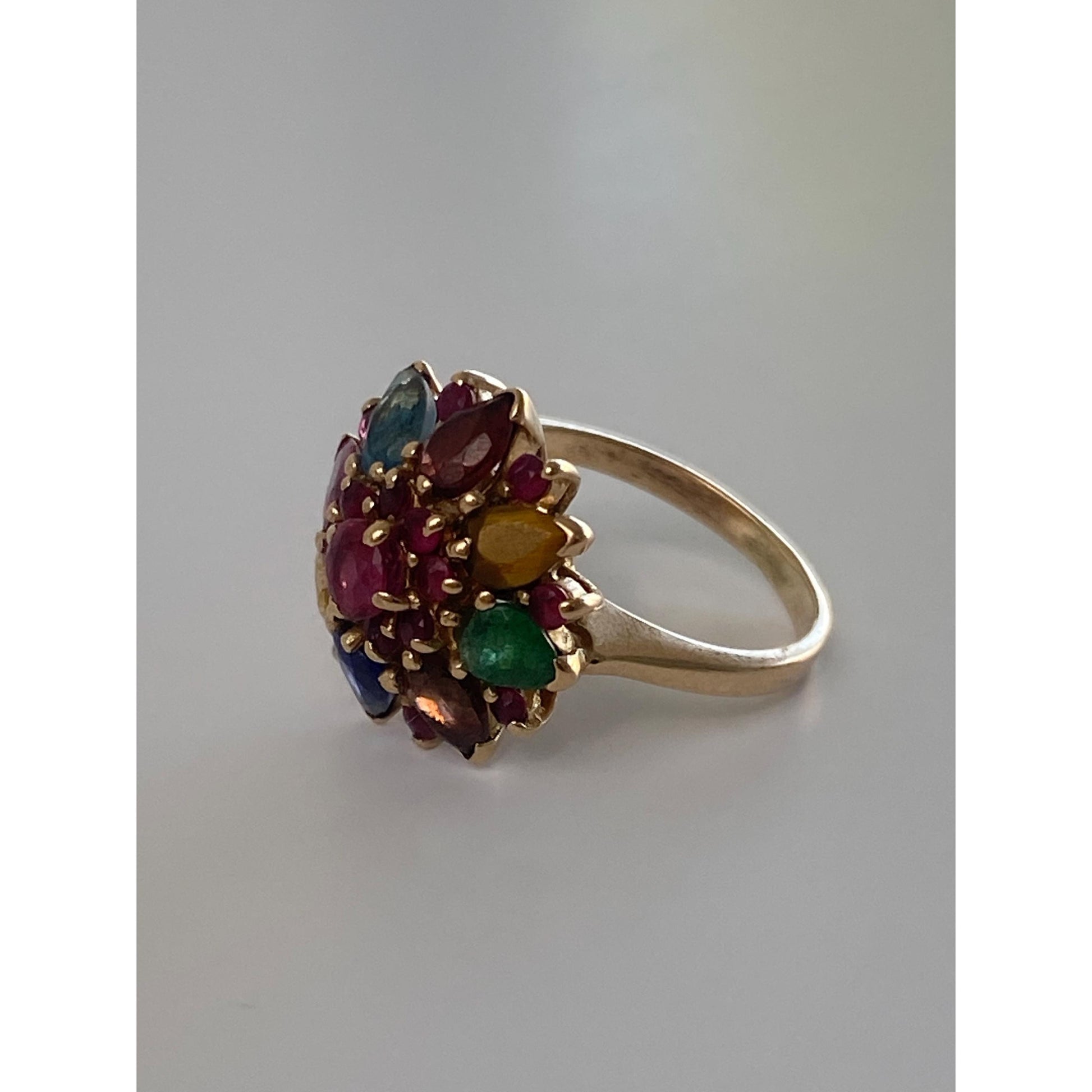 Solid 14k Yellow Gold Colored Spinel & Quartz Ring - Size 2