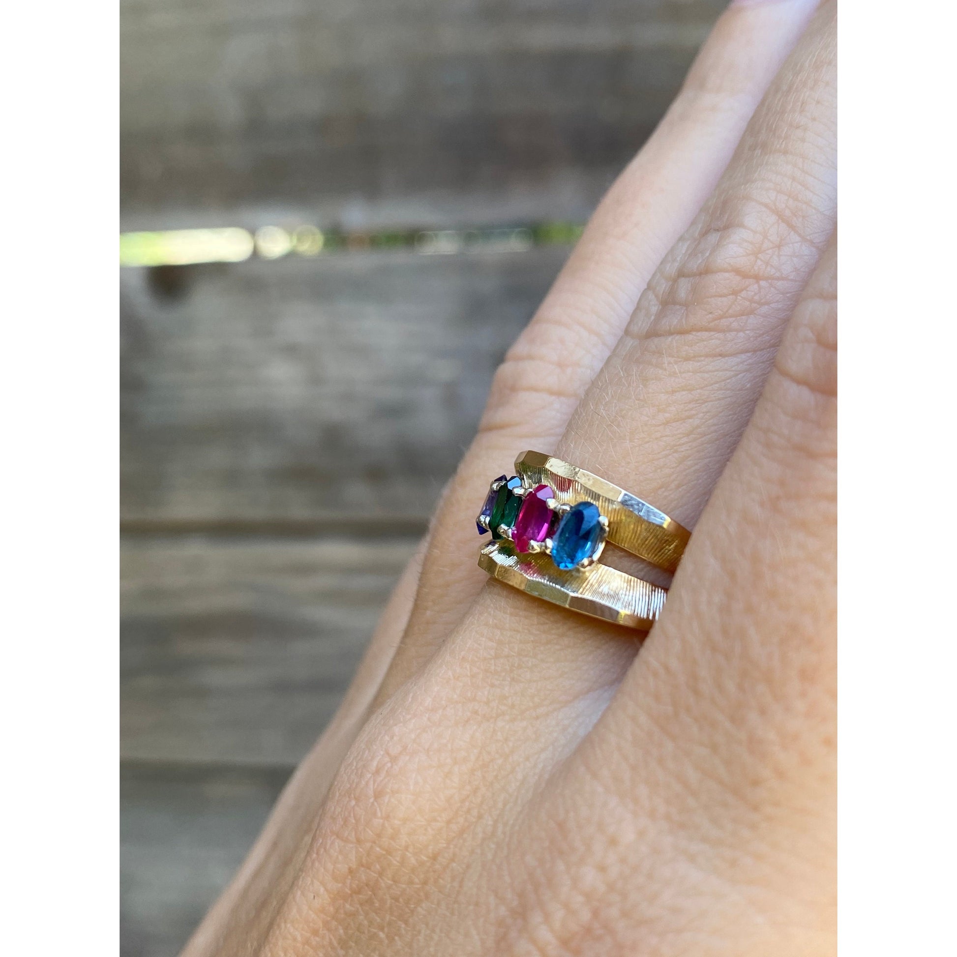 Solid 14k Yellow Gold Amethyst Emerald Sapphire Topaz Ring Band - Size 6.5