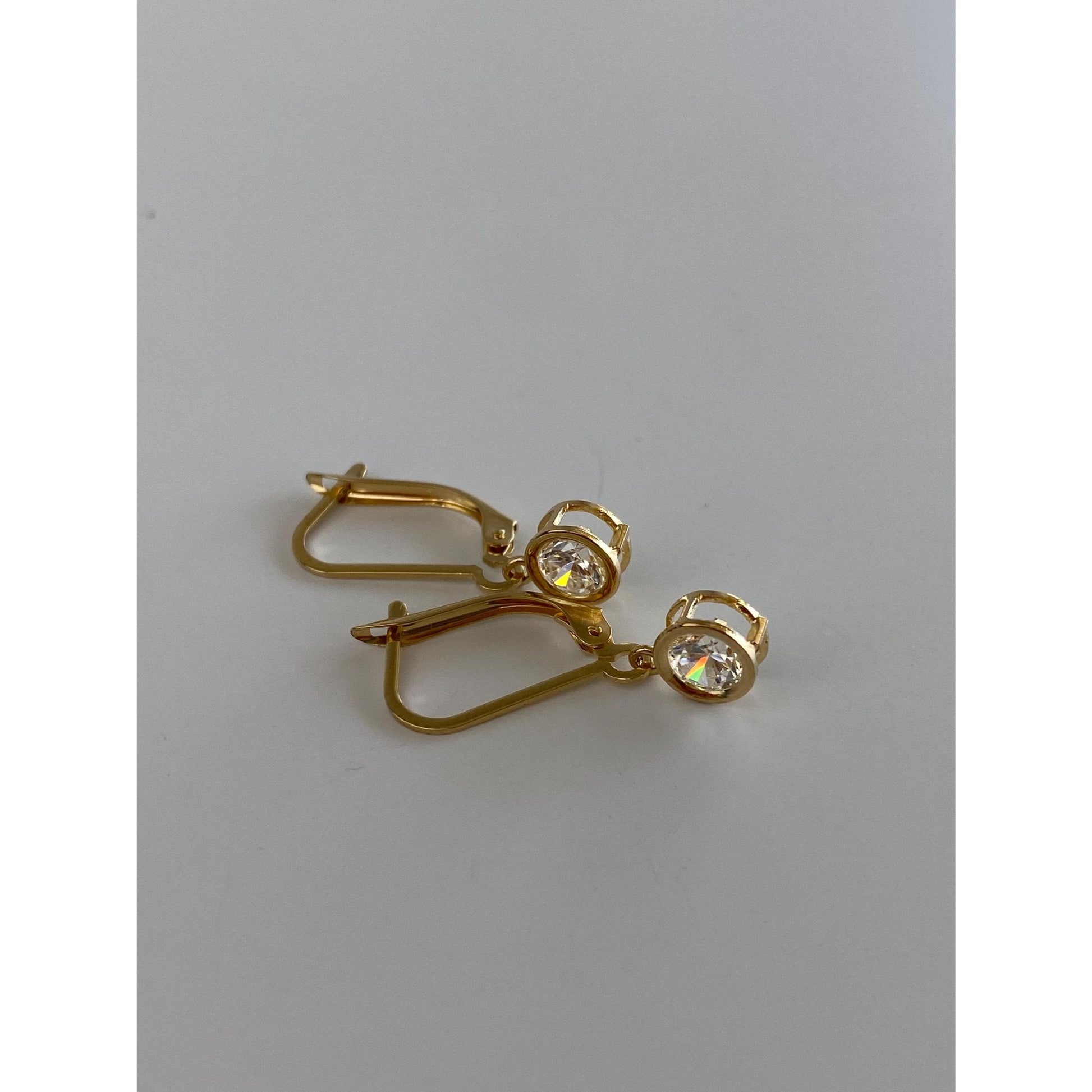 Solid 14k Yellow Gold Cubic Zirconia Dangle Earrings