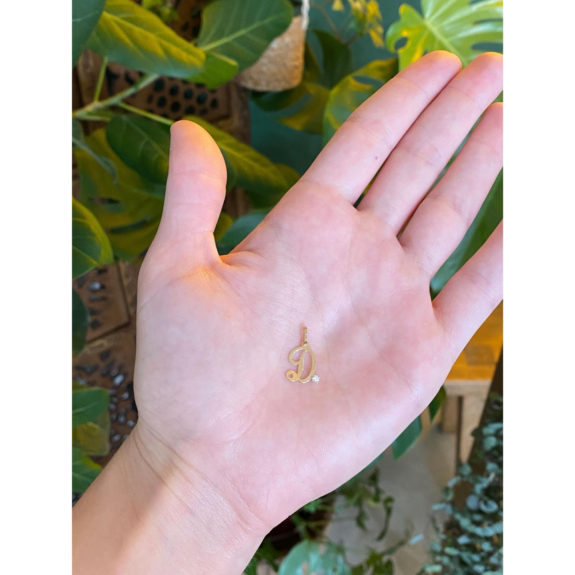 Solid 14k Yellow Gold Cubic Zirconia Initial 'D' Charm