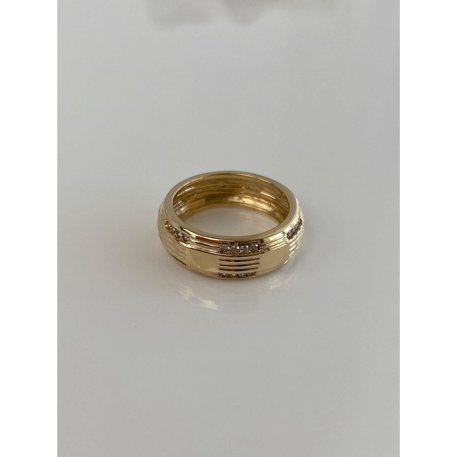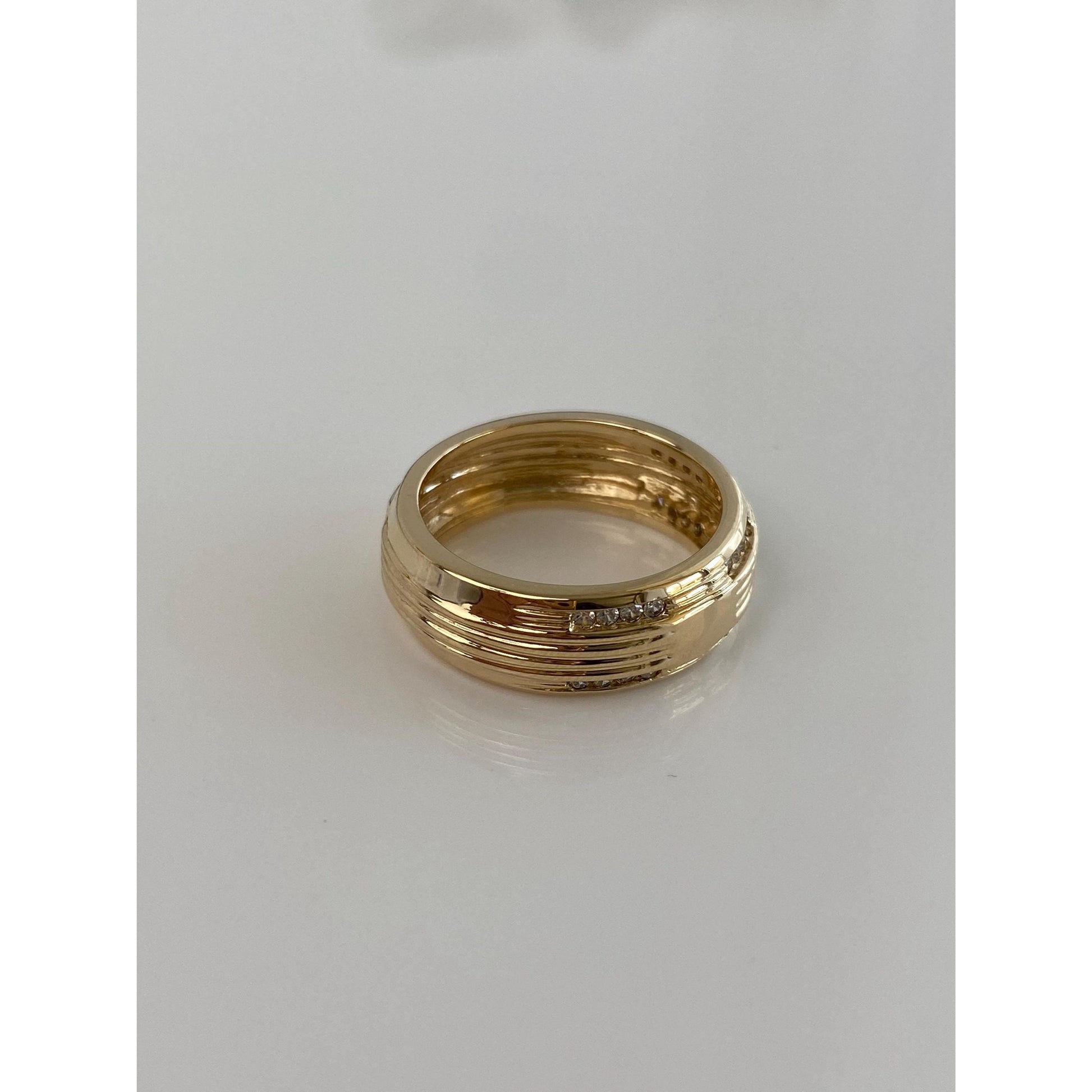 Solid 14k Yellow Gold Cubic Zirconia Lined Ring Band - Size 6.25
