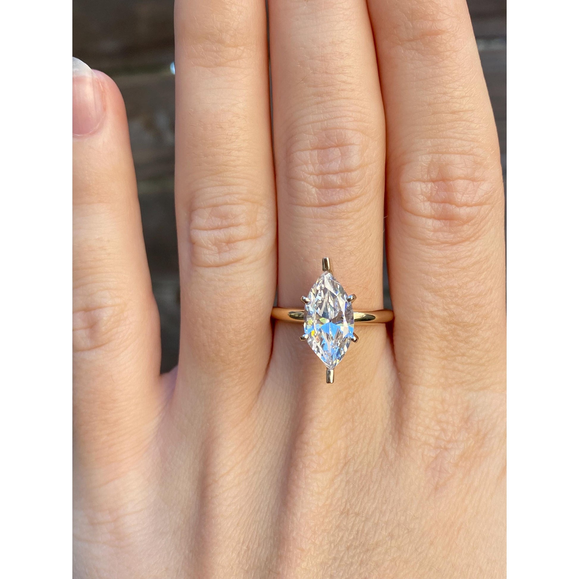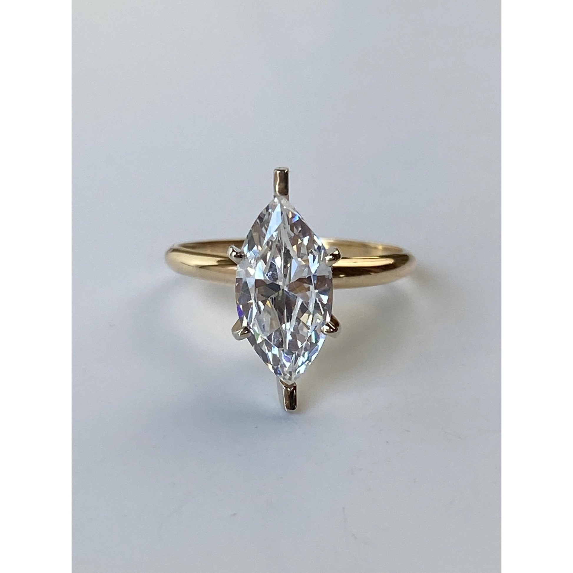 Solid 14k Yellow Gold Cubic Zirconia Marquis Ring - Size 8.75