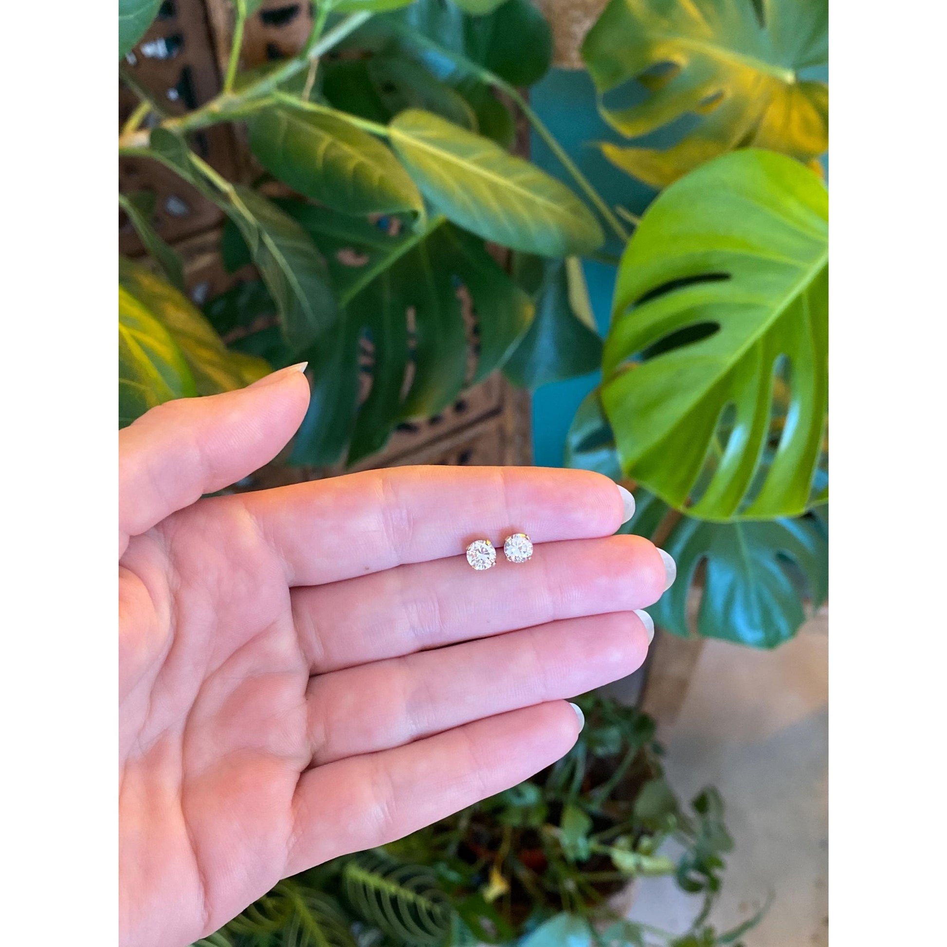 Solid 14k Yellow Gold Cubic Zirconia Stud Earrings