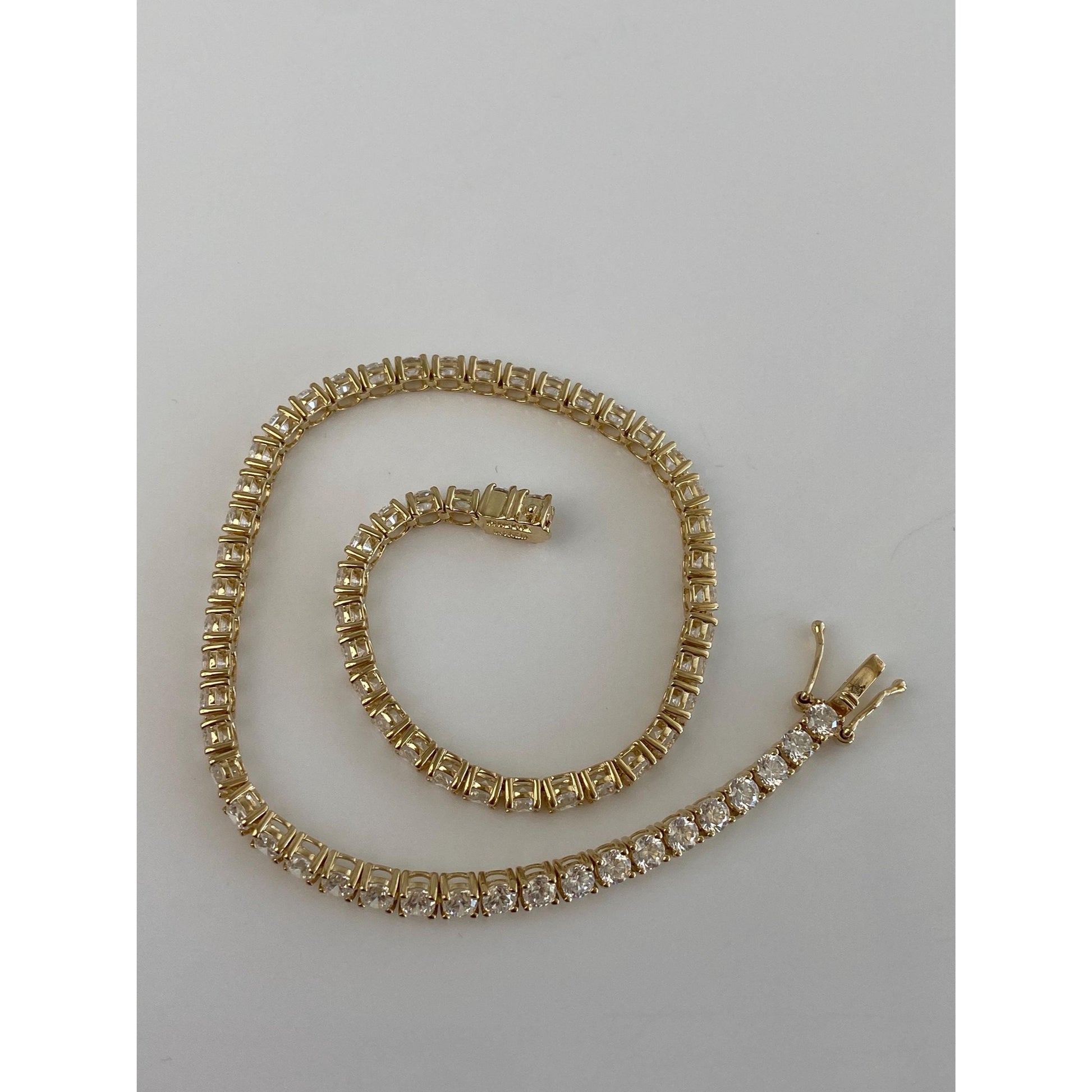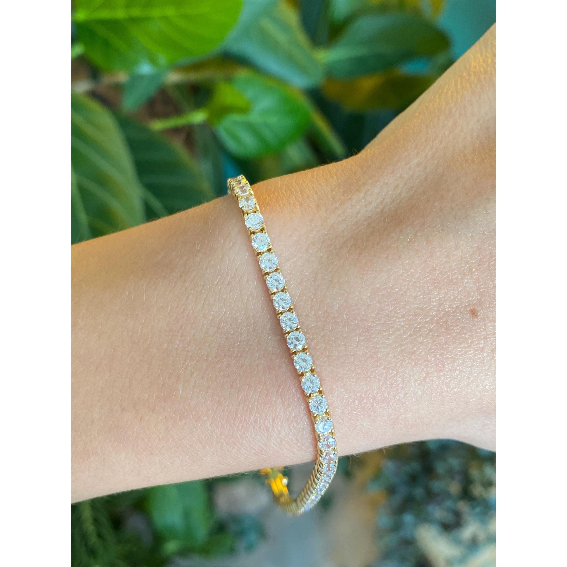 Solid 14k Yellow Gold Cubic Zirconia Tennis Bracelet - 9 inches