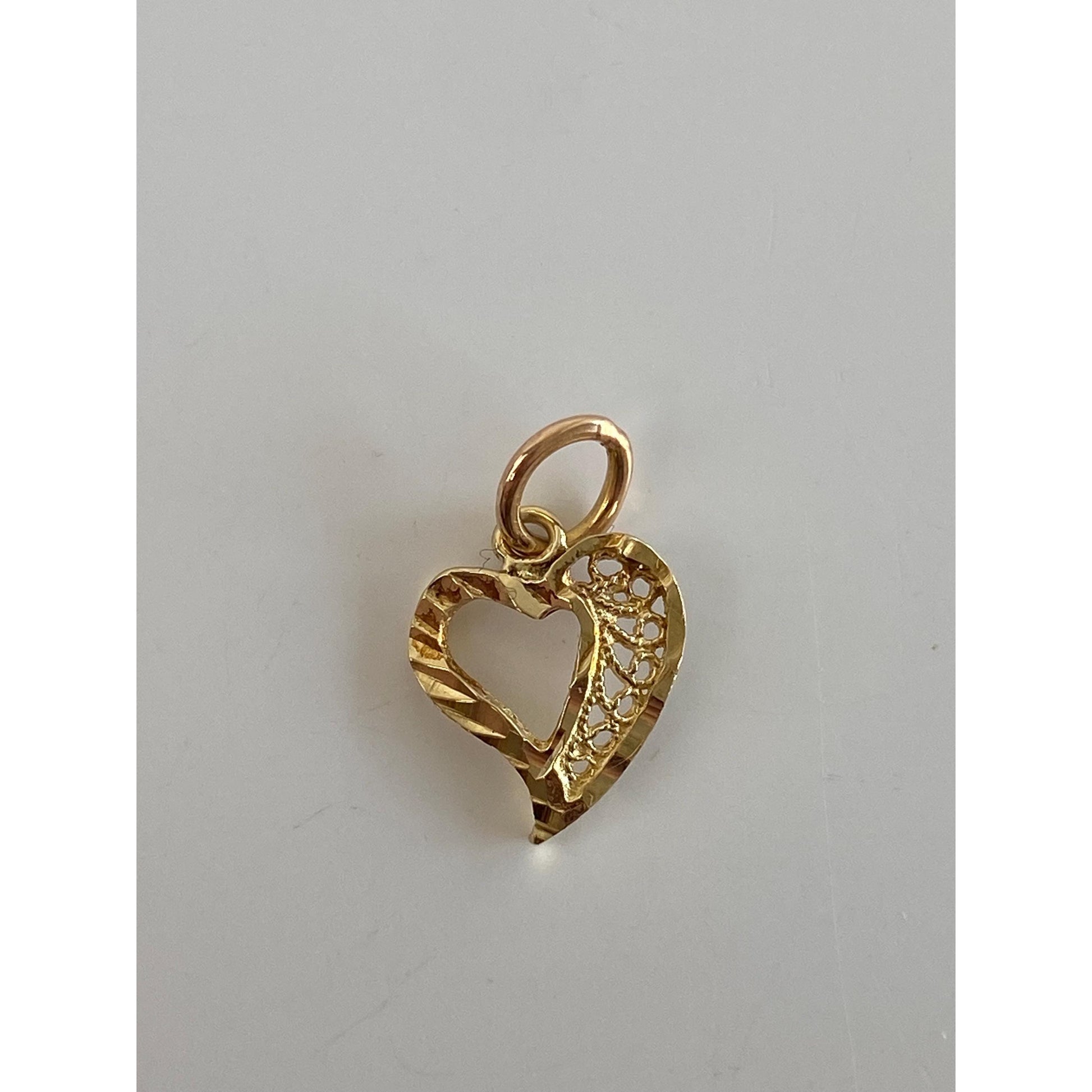 Solid 14k Yellow Gold Diamond Cut Heart Charm