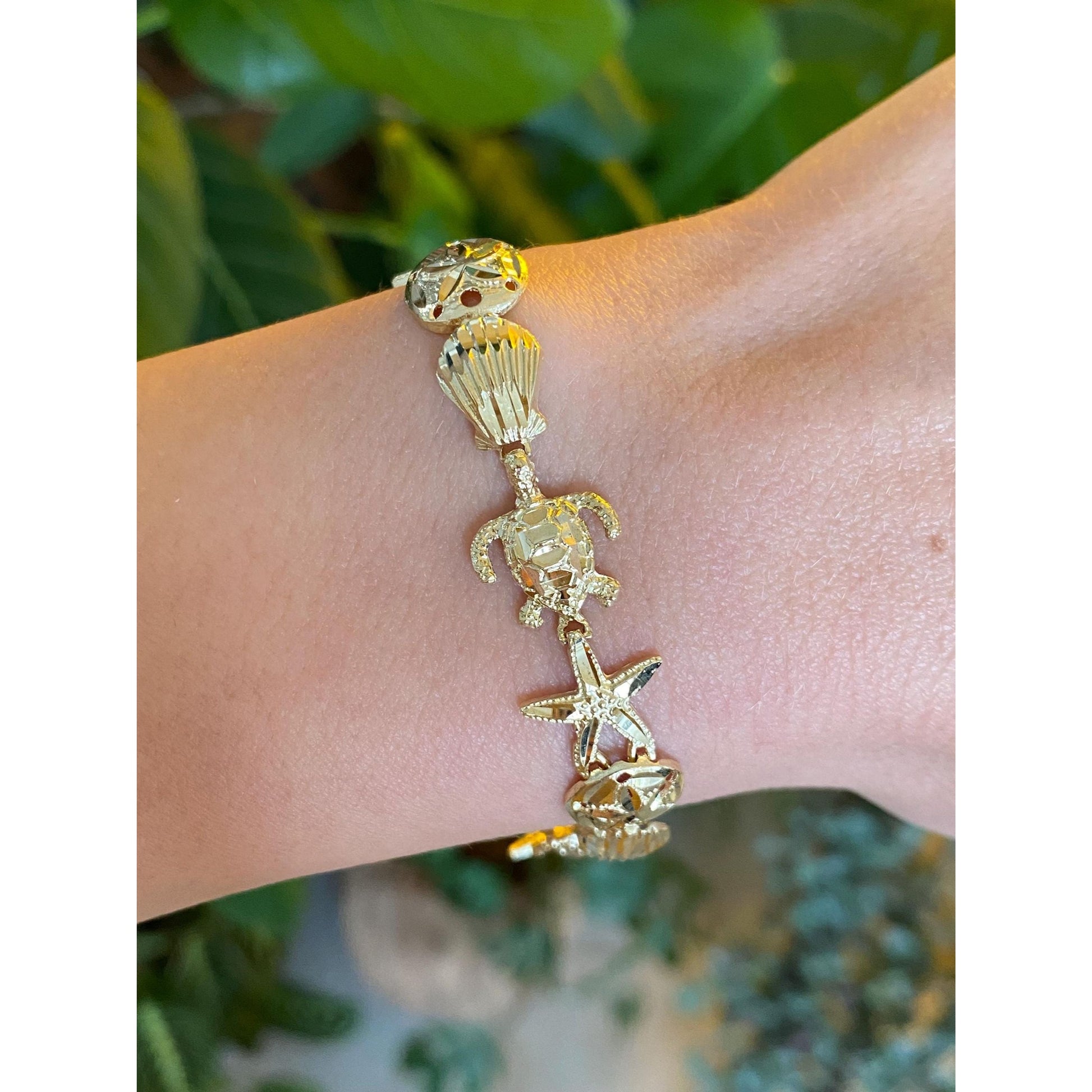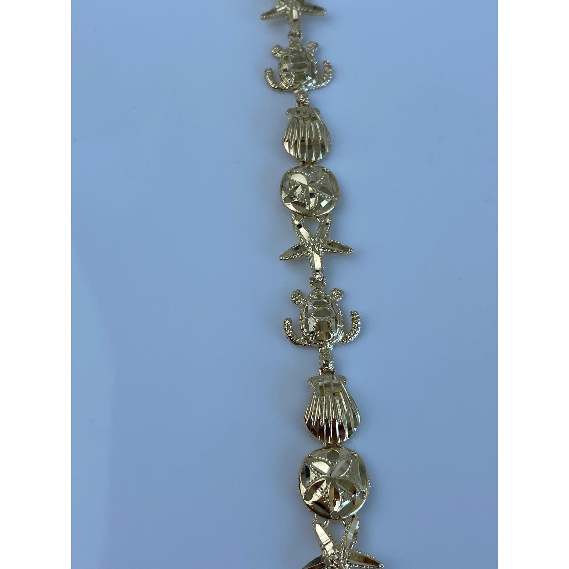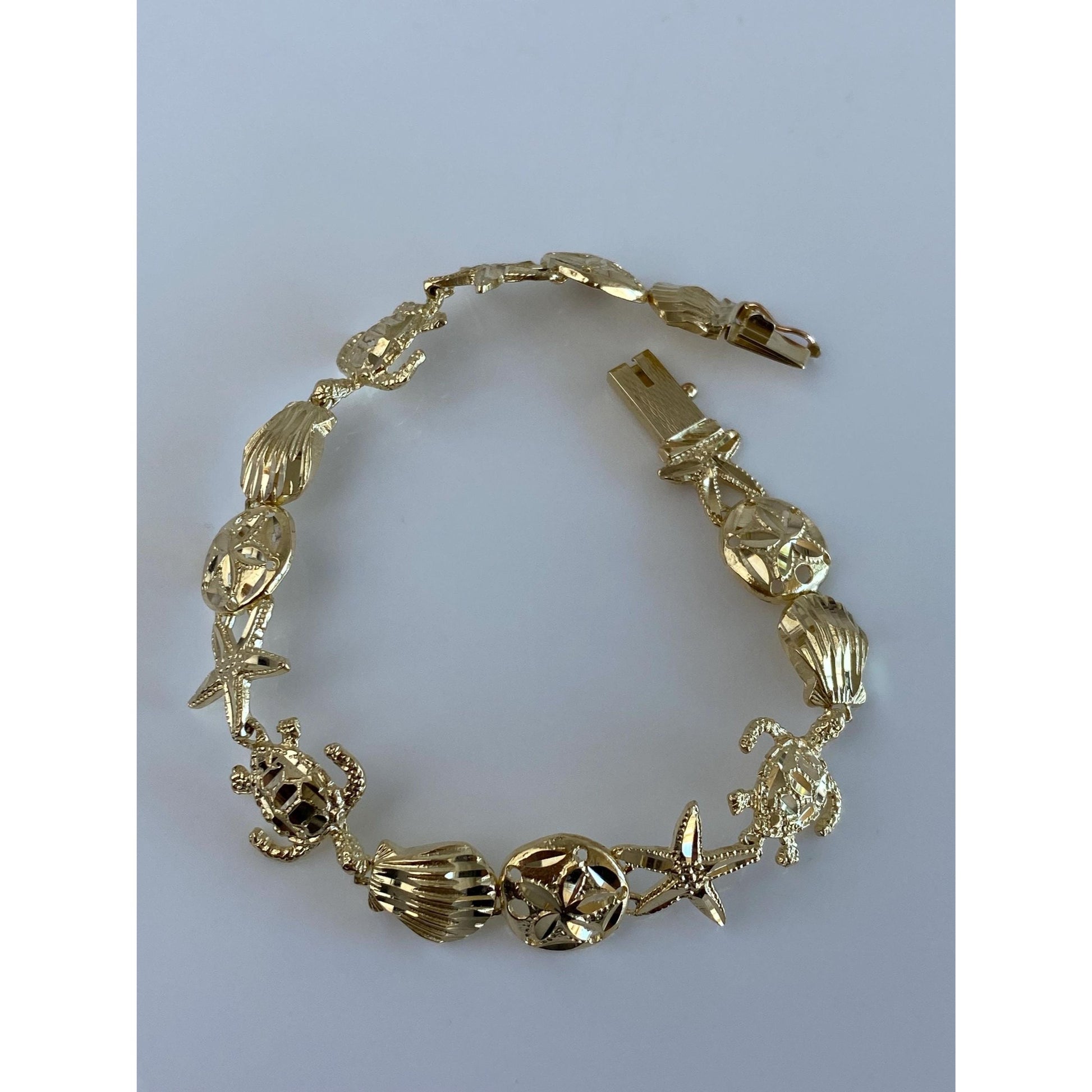 Solid 14k Yellow Gold Diamond Cut Mermaid Sea Life Link Bracelet - 7 inches