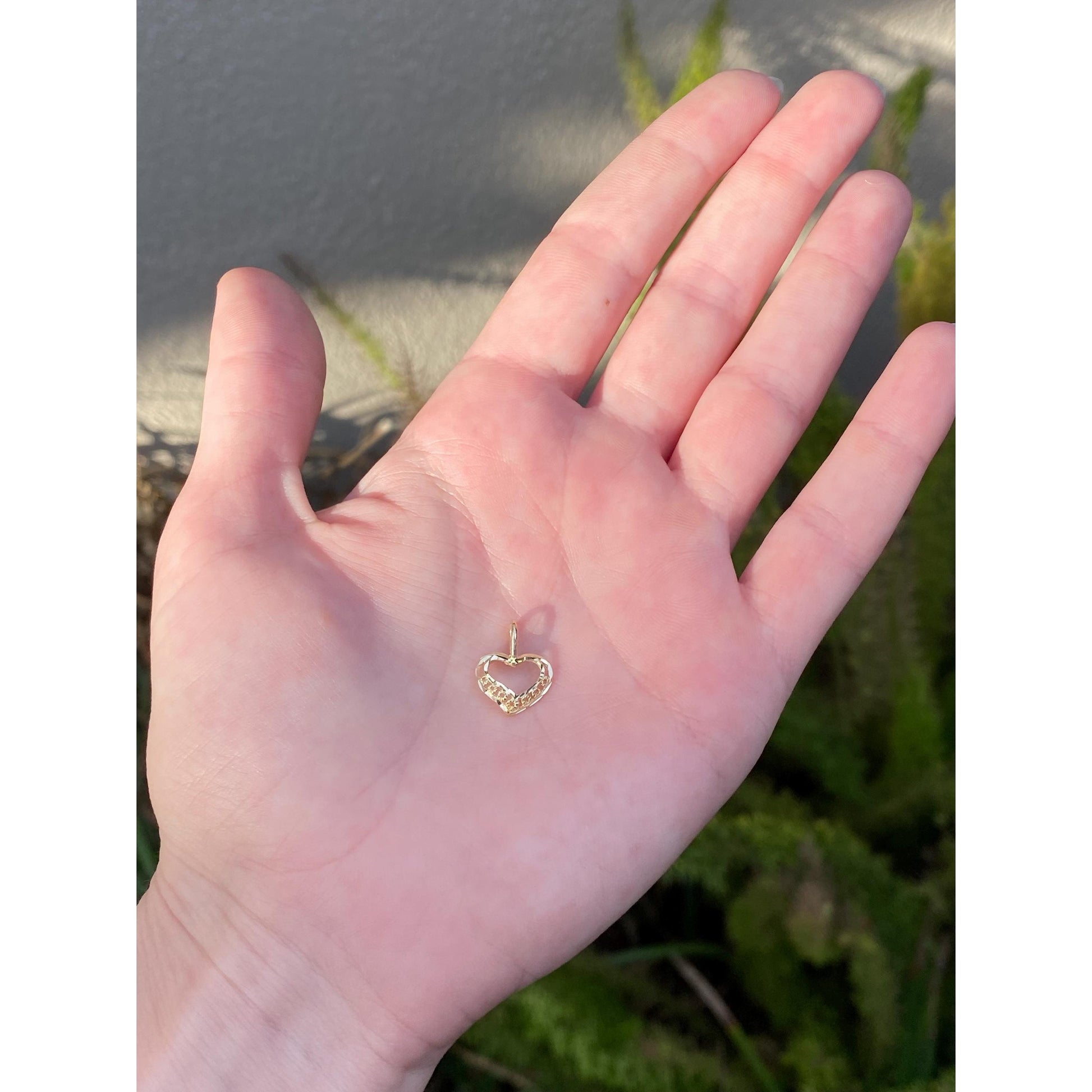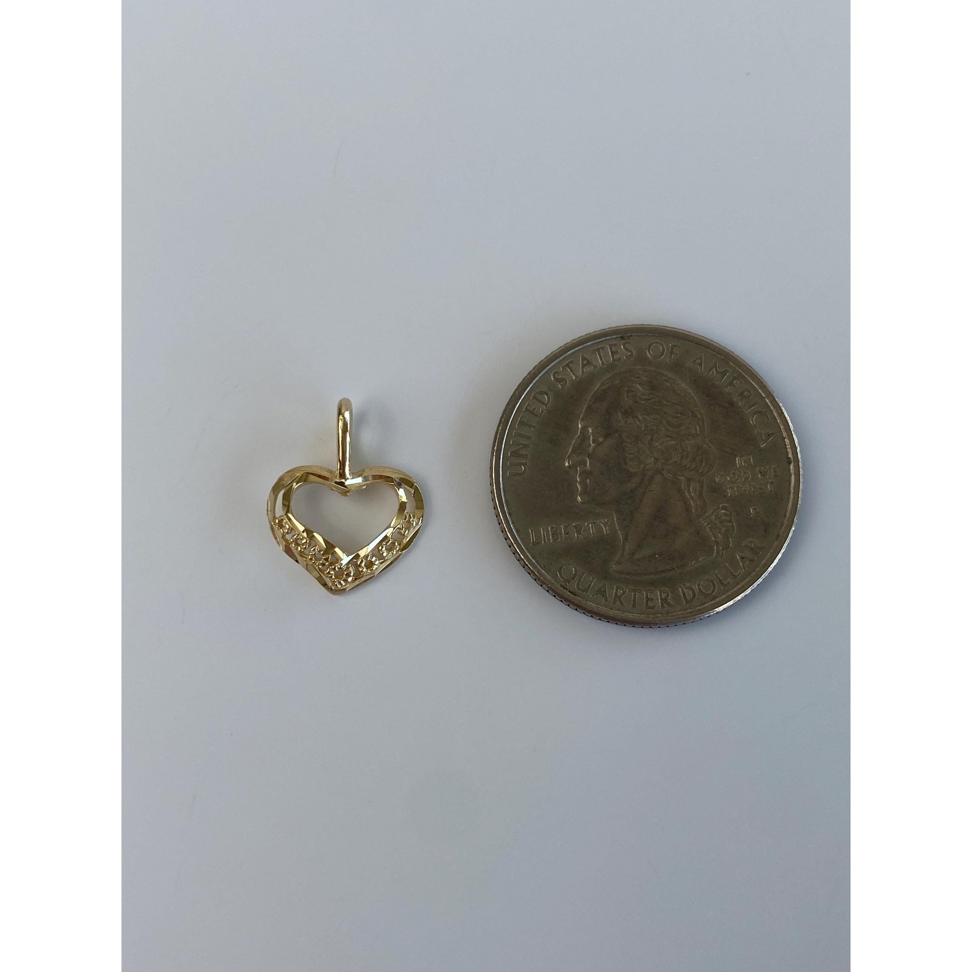 Solid 14k Yellow Gold Diamond Cut Open Heart Charm