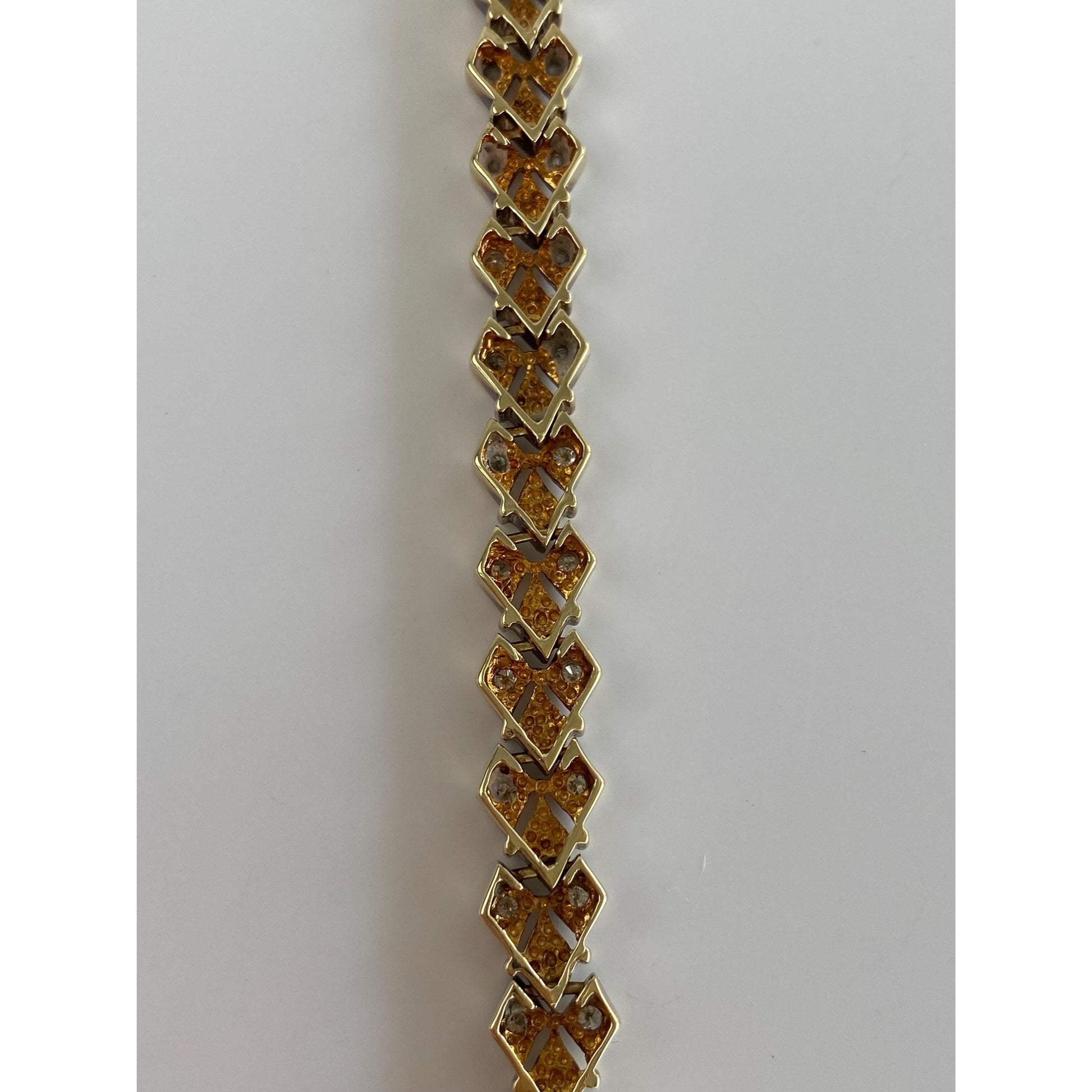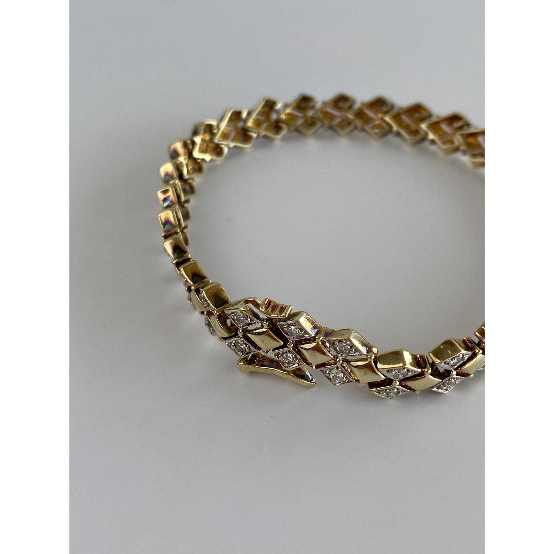 Solid 14k Yellow Gold Diamond Diamond Pattern Link Bracelet - 7 inches