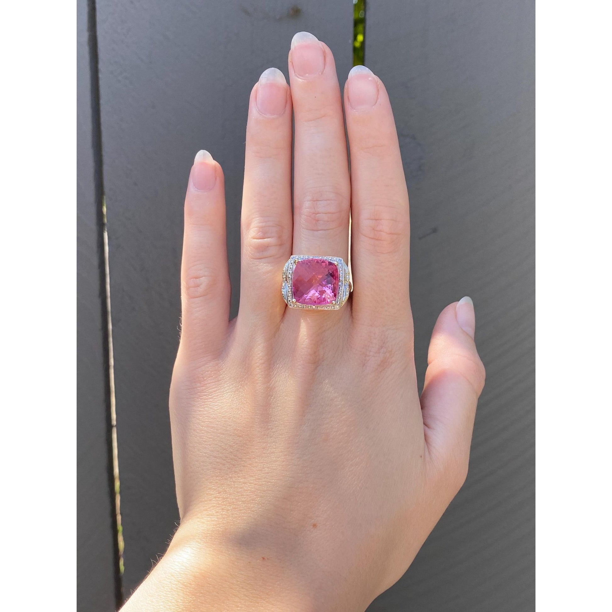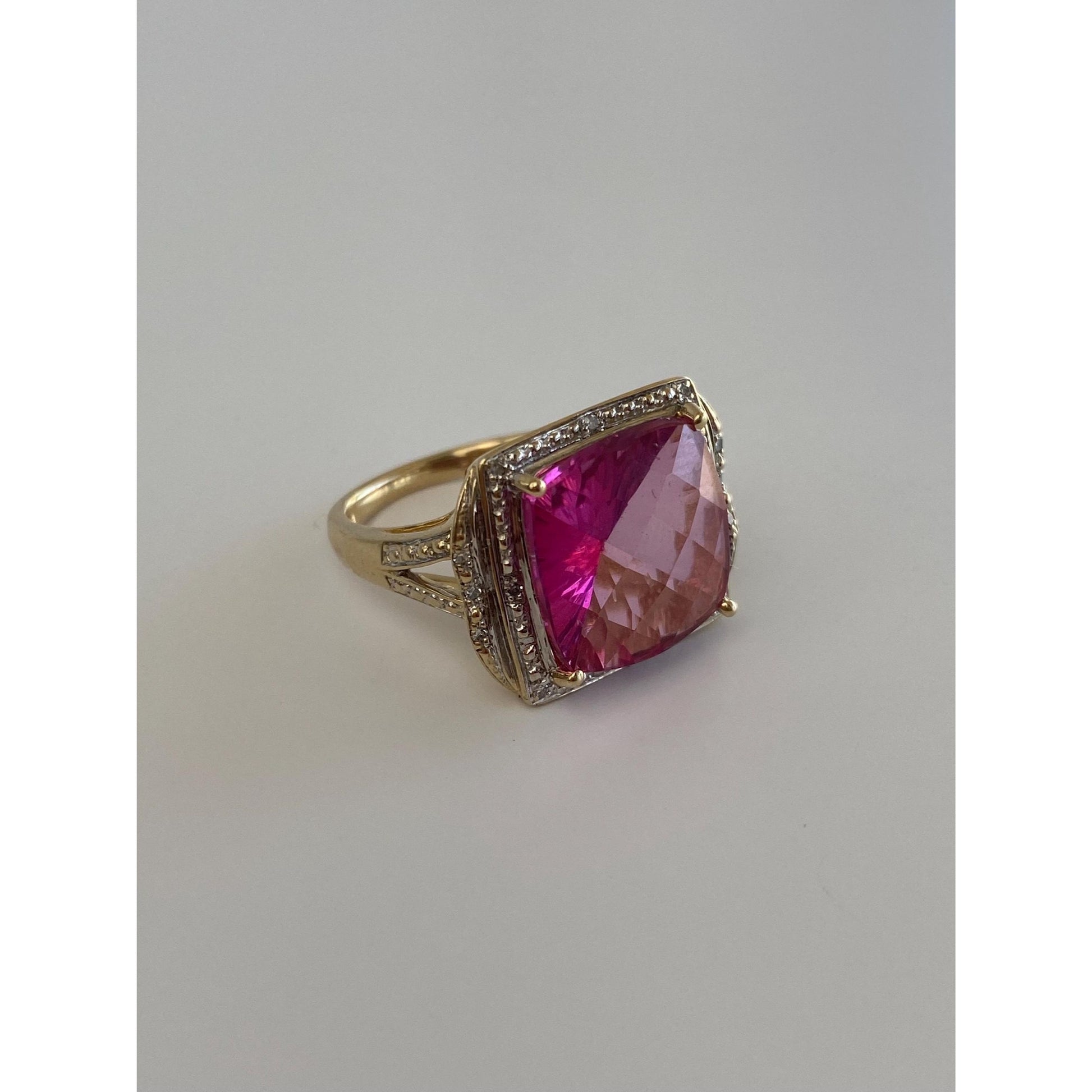 Solid 14k Yellow Gold Diamond Halo Pink Spinel Ring - Size 7