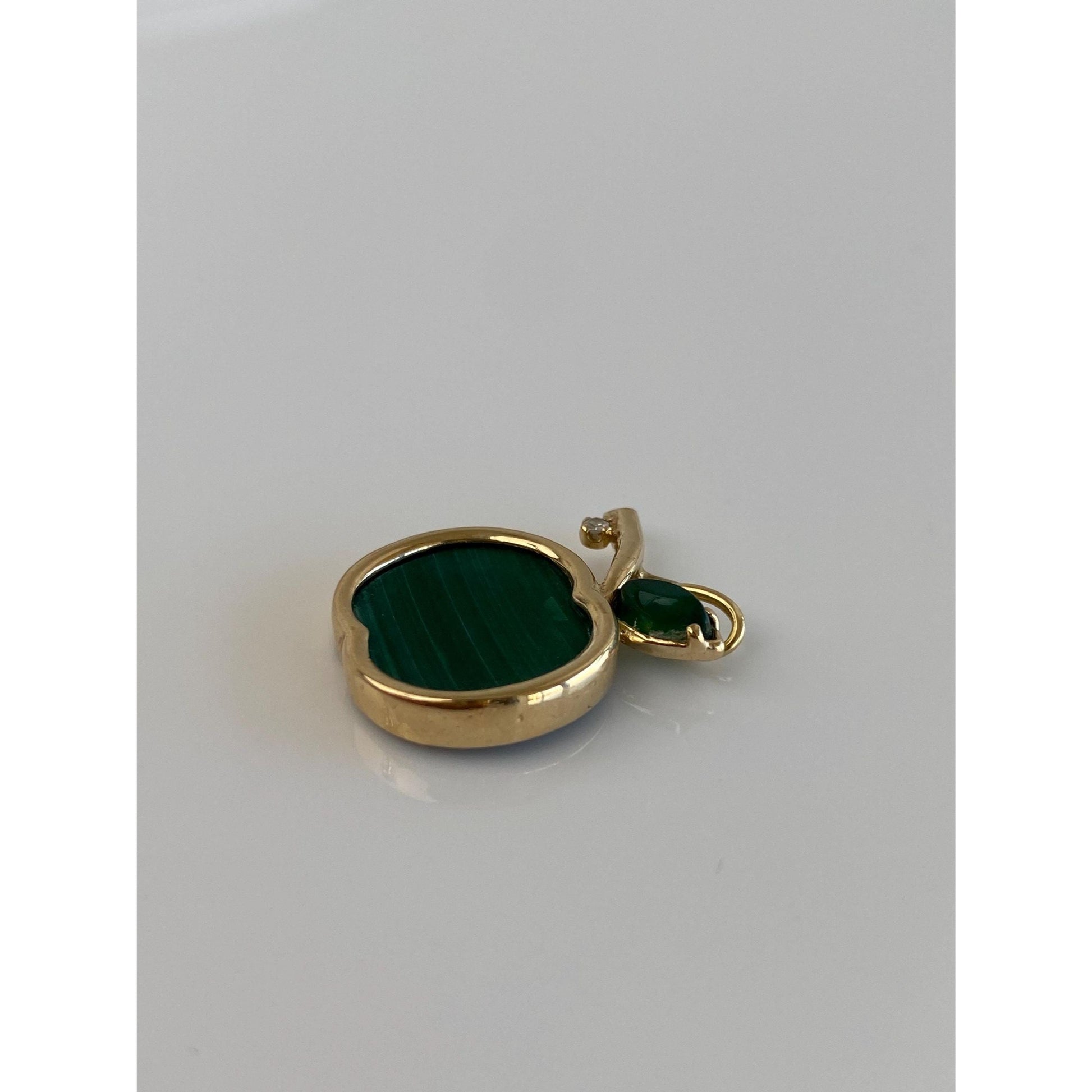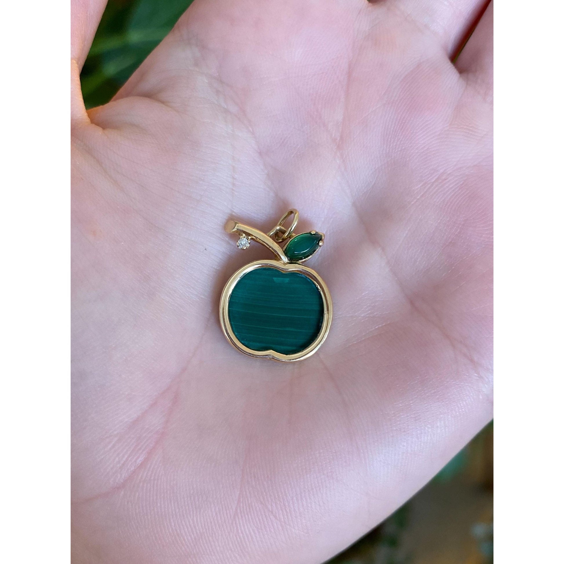 Solid 14k Yellow Gold Diamond Malachite Emerald Apple Charm